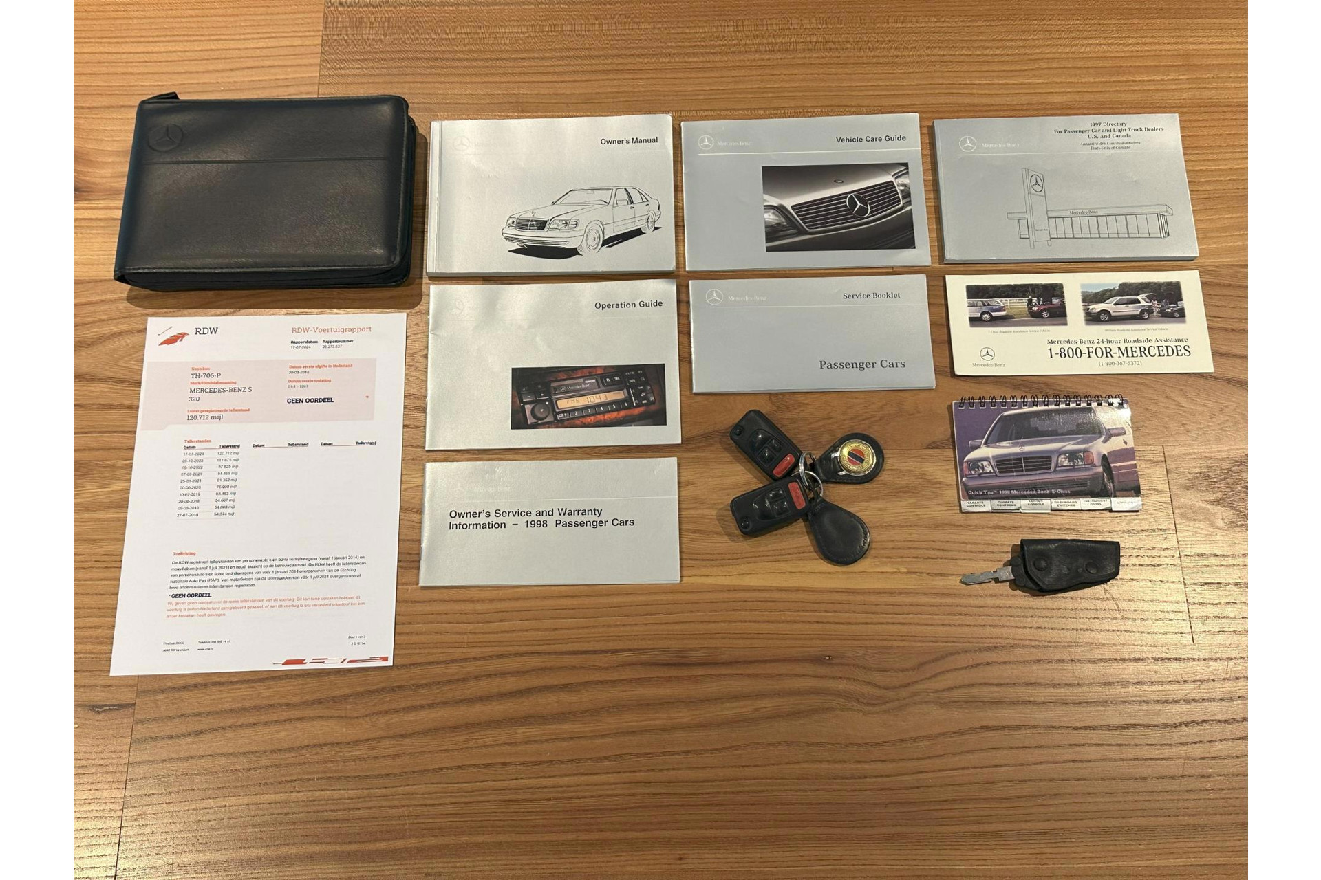 Alle documentatie en alle sleutels en afstandsbedieningen zijn aanwezig. Naast de documentatie is er een groot aantal facturen en verdere informatie aanwezig. De Bridgestone banden verkeren in uitstekende staat. Eventueel zijn er nog losse winterbanden beschikbaar voor de S-klasse.