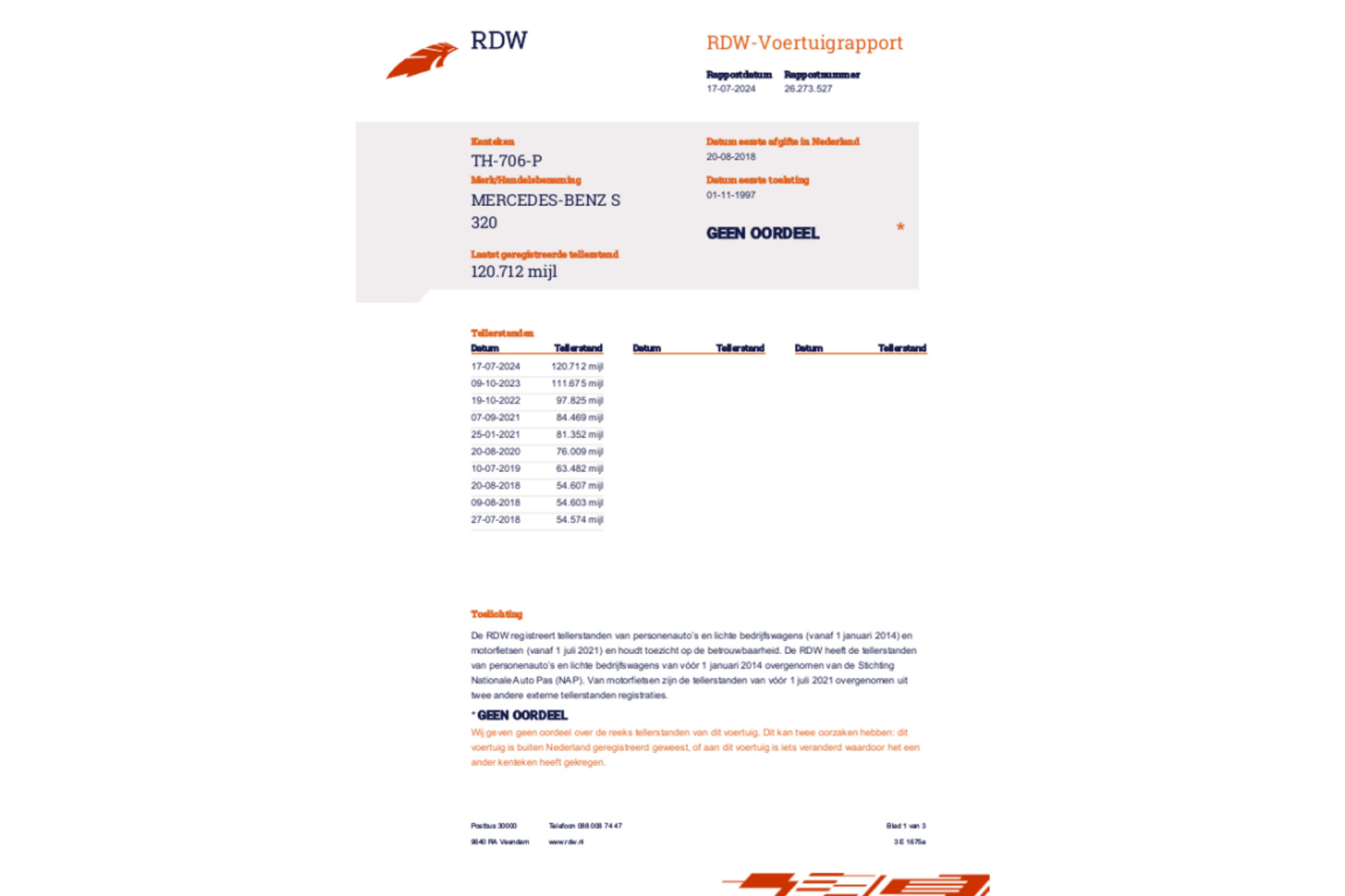 Specifiek dit exemplaar is een van de laatste geleverde modellen. De staat van deze S320 is waanzinnig te noemen. De ongekend fraaie staat is terug te leiden naar de slechts drie eigenaren die deze S-klasse bezaten. De auto werd nieuw gekocht door mevrouw Margot Trutschel Quin in 1998. Zij overleed in 2015. Tot die tijd werd de gehele historie gedocumenteerd. Alle onderhoudsfacturen met specifiek onderhoudsdata zijn aanwezig van alle jaren. Hieruit blijkt ook dat zij de enige eigenaresse is geweest. Naar haar overlijden werd auto verkocht in Duitsland. De auto kwam met een Clean Title naar Europa, wat wil zeggen dat de auto op dat moment geen schade had. Dit in tegenstelling tot de vele schade auto’s die uit de VS afkomstig zijn. In 2018 kwam de auto naar Nederland. Onlangs ruilden wij de auto op een eveneens bijzondere auto in. De laatste eigenaar had hem van 2018 tot recent in 2024 in bezit.
