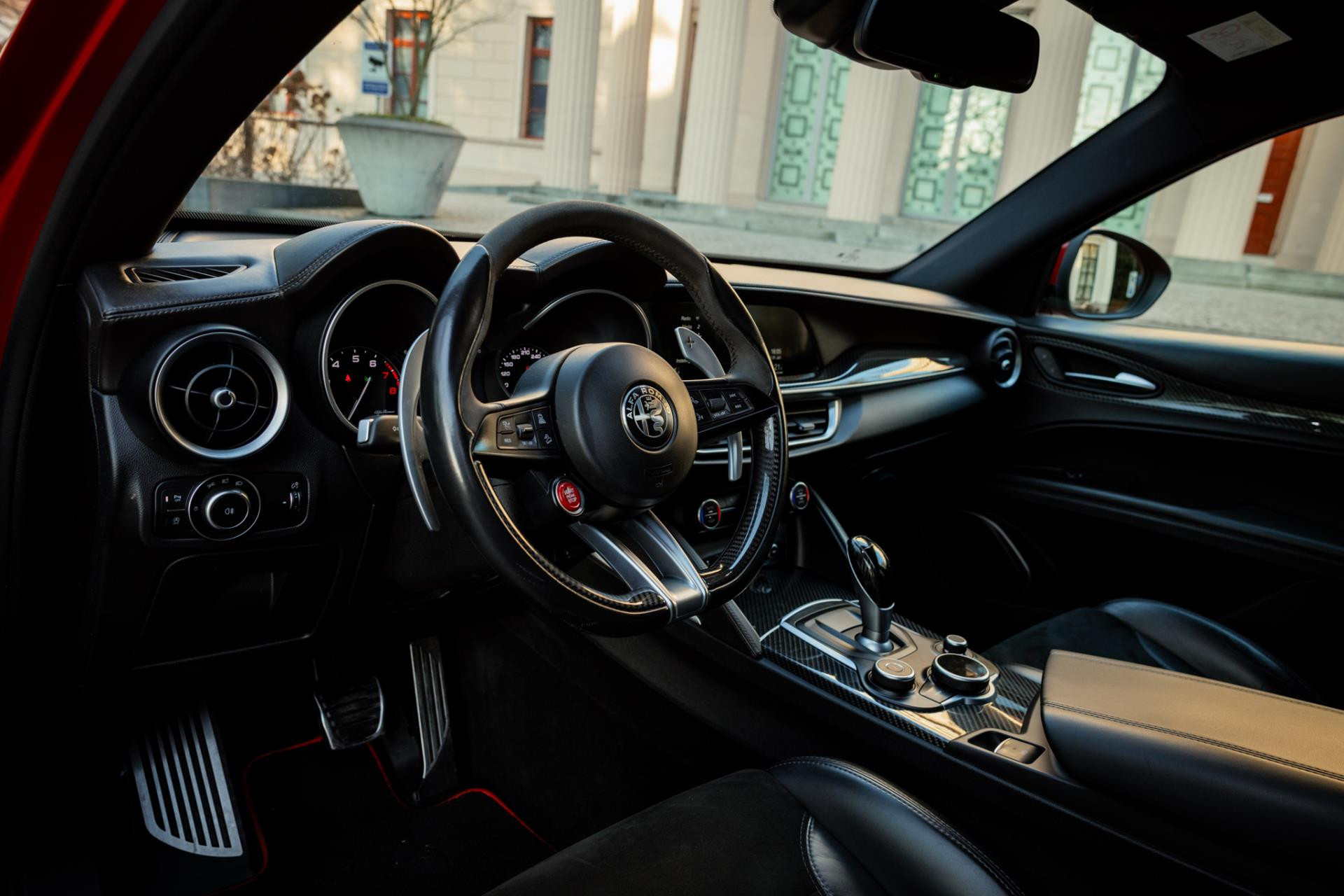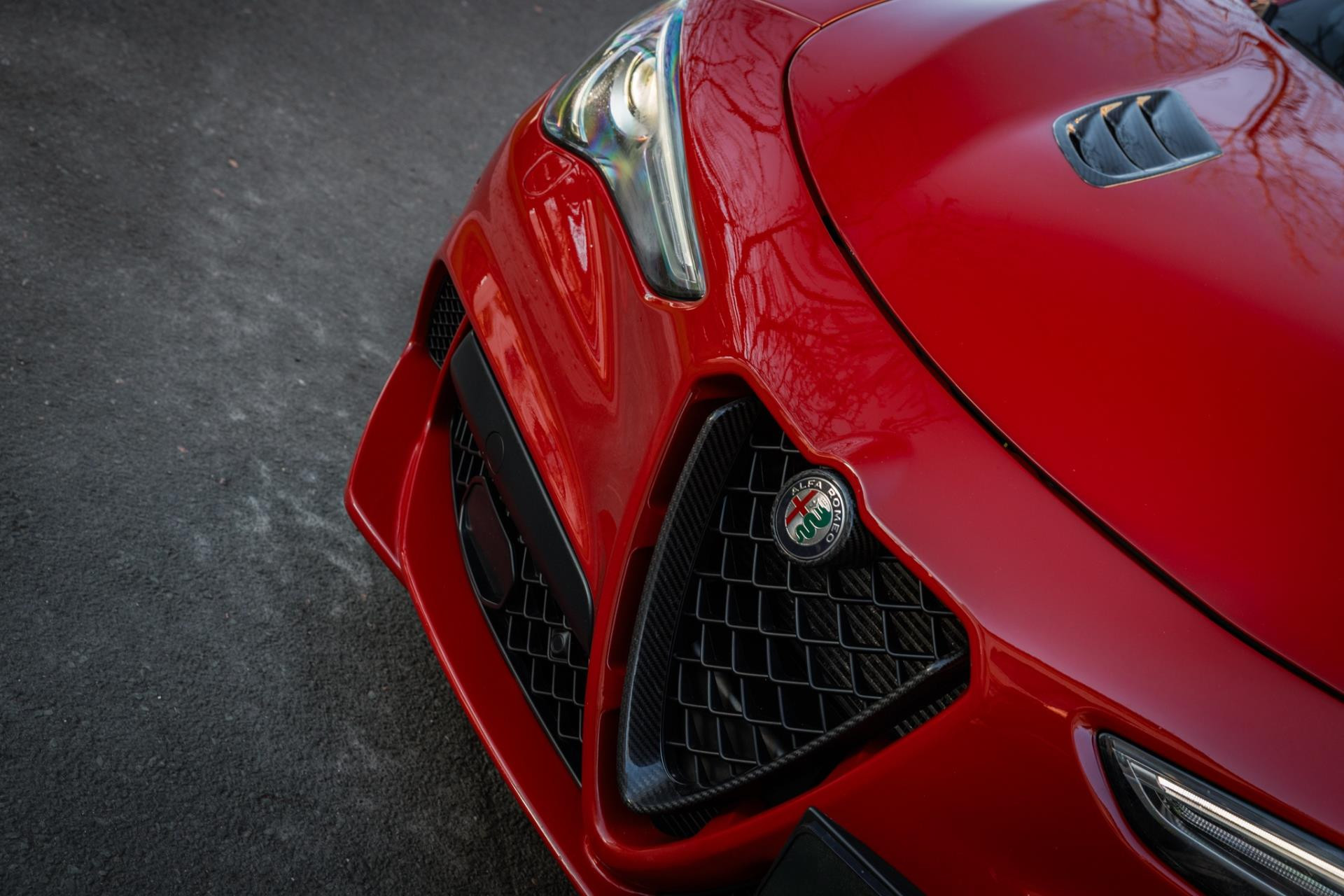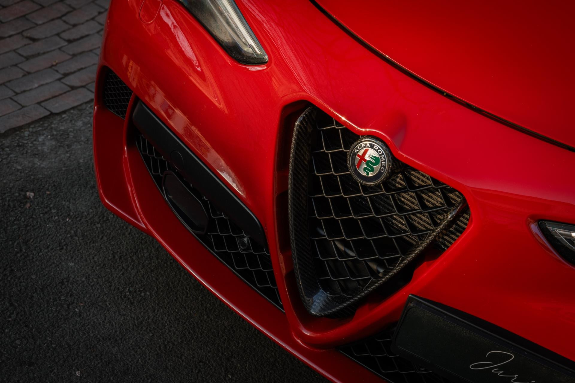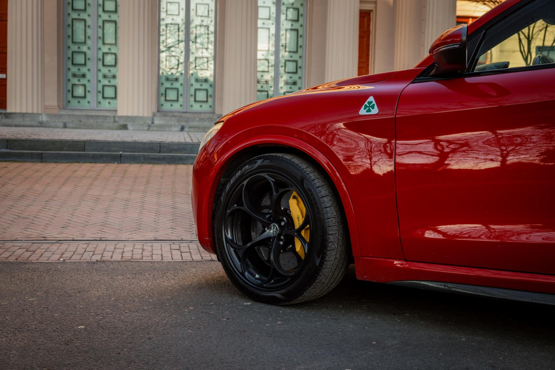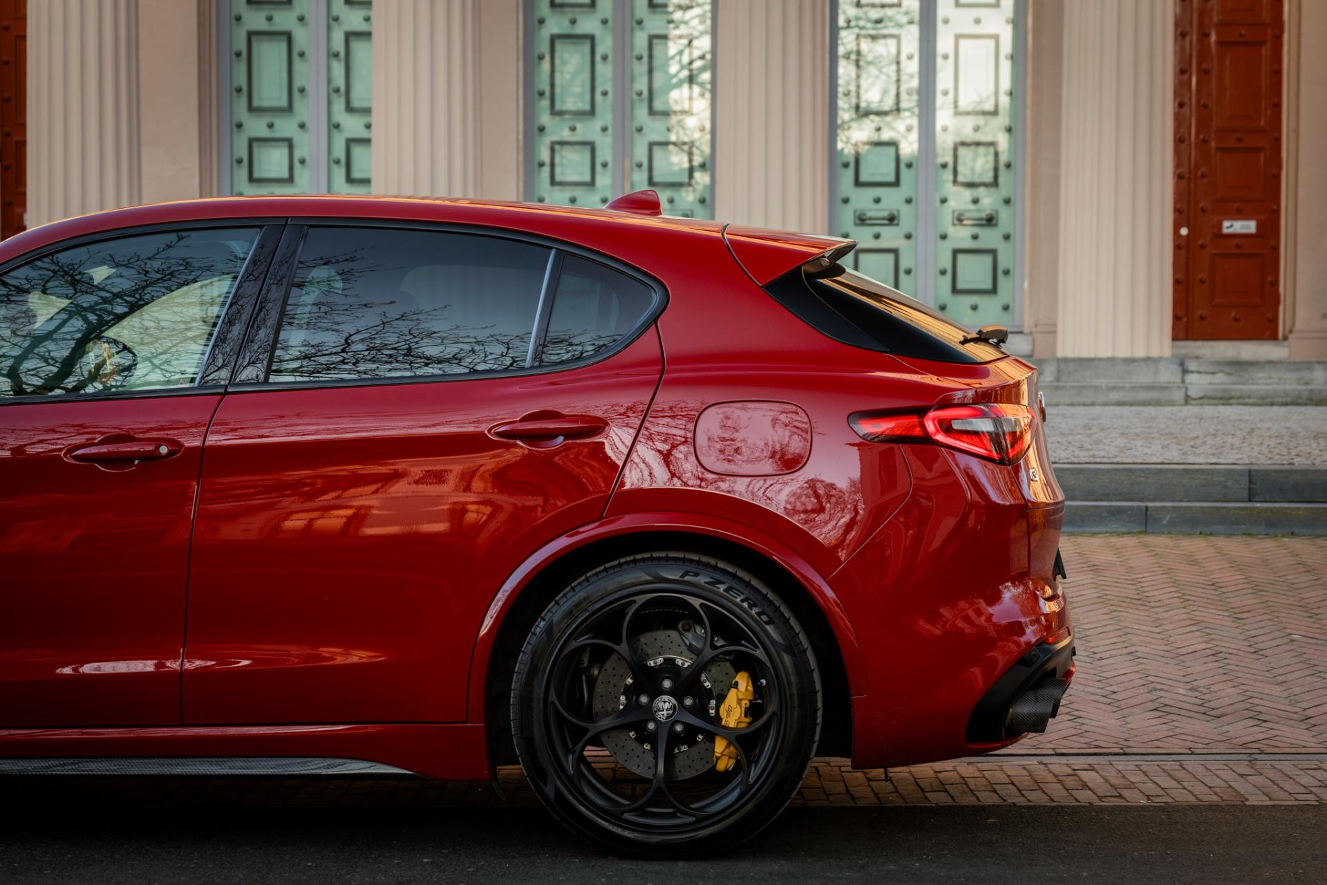 De Looks! De ronde vormen, het agressieve front, met de breede lichtunits en de zo kenmerkende grille. En dan die fantastische Quadrifoglio velgen met achter 285/40 Pirelli schoeisel, de vier indrukwekkende uitlaten, het is allemaal lust voor het oog.