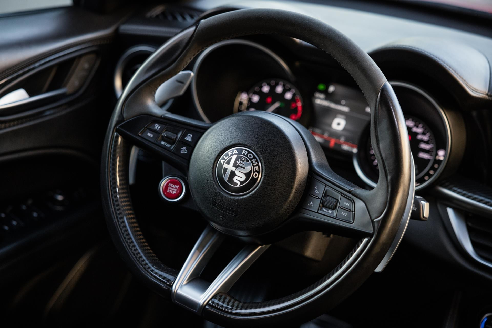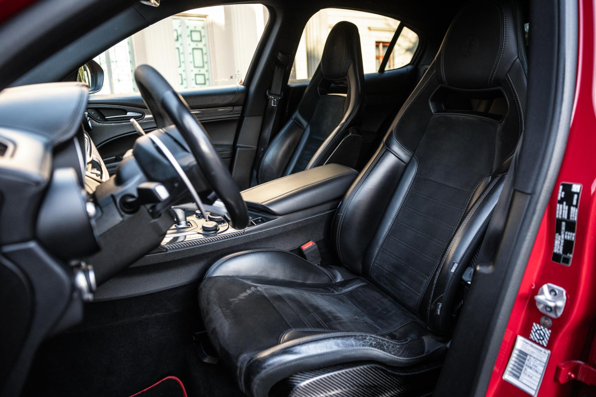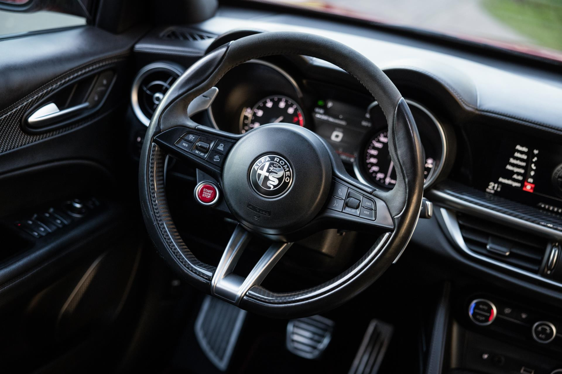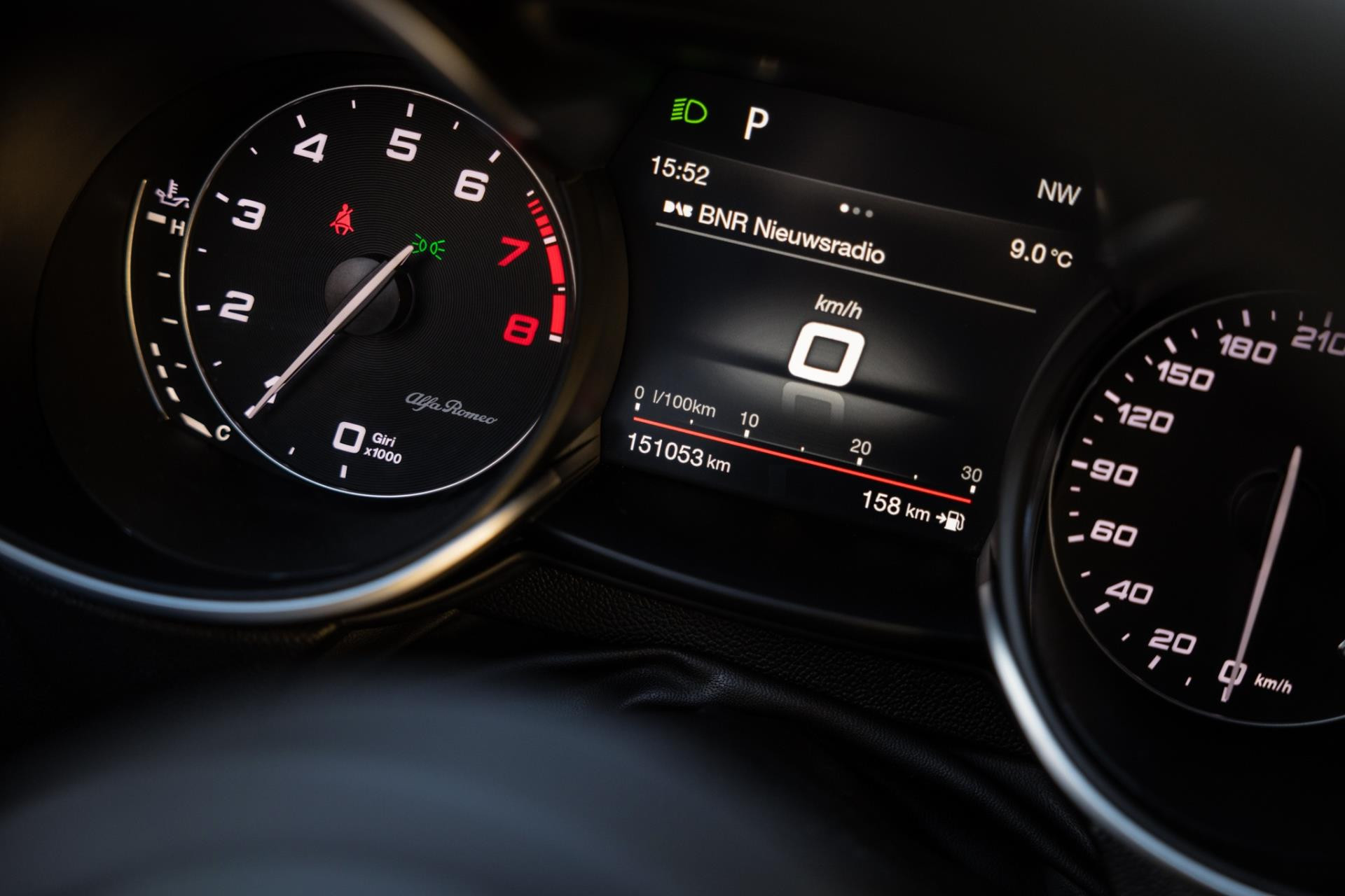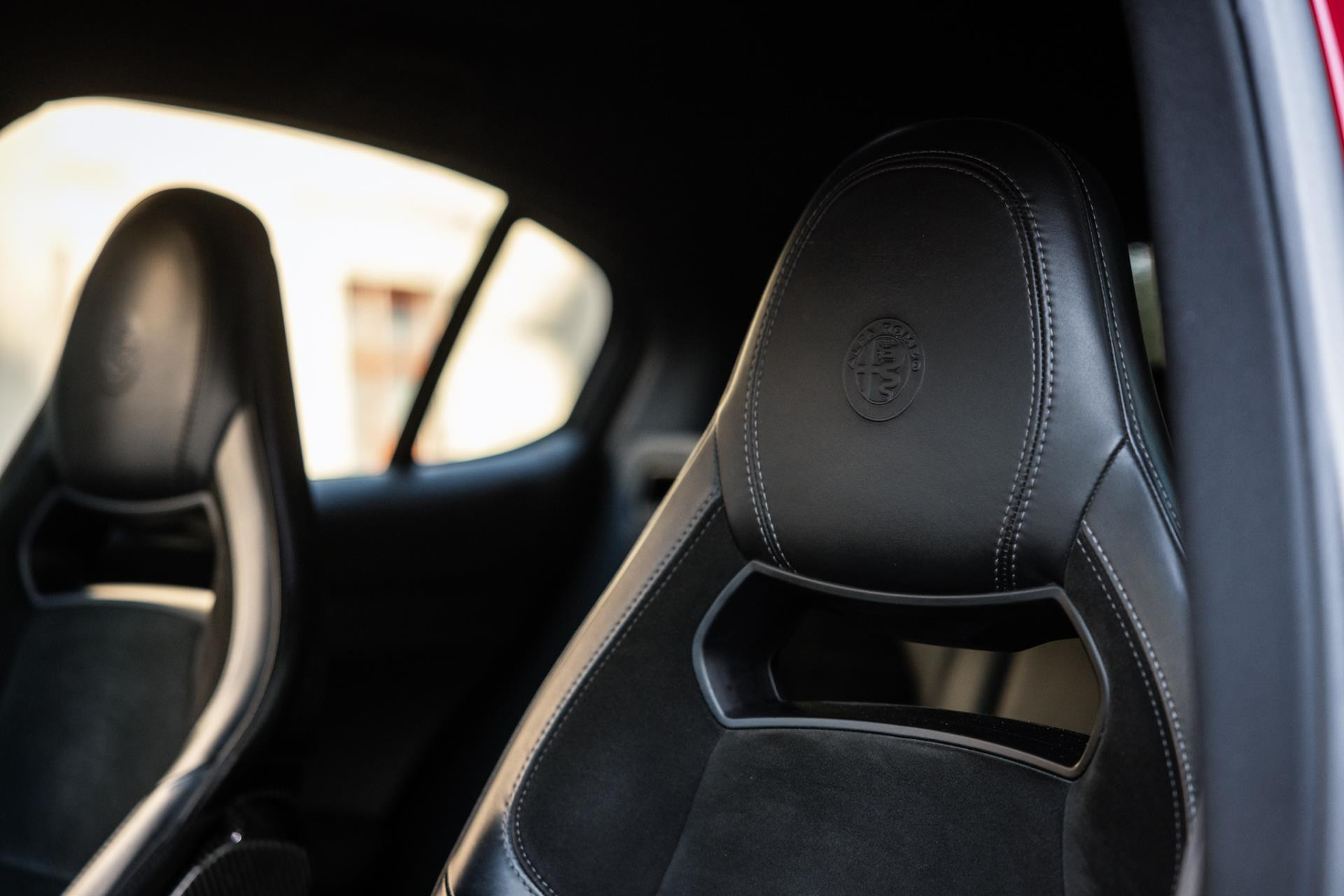 De Looks! De ronde vormen, het agressieve front, met de breede lichtunits en de zo kenmerkende grille. En dan die fantastische Quadrifoglio velgen met achter 285/40 Pirelli schoeisel, de vier indrukwekkende uitlaten, het is allemaal lust voor het oog.