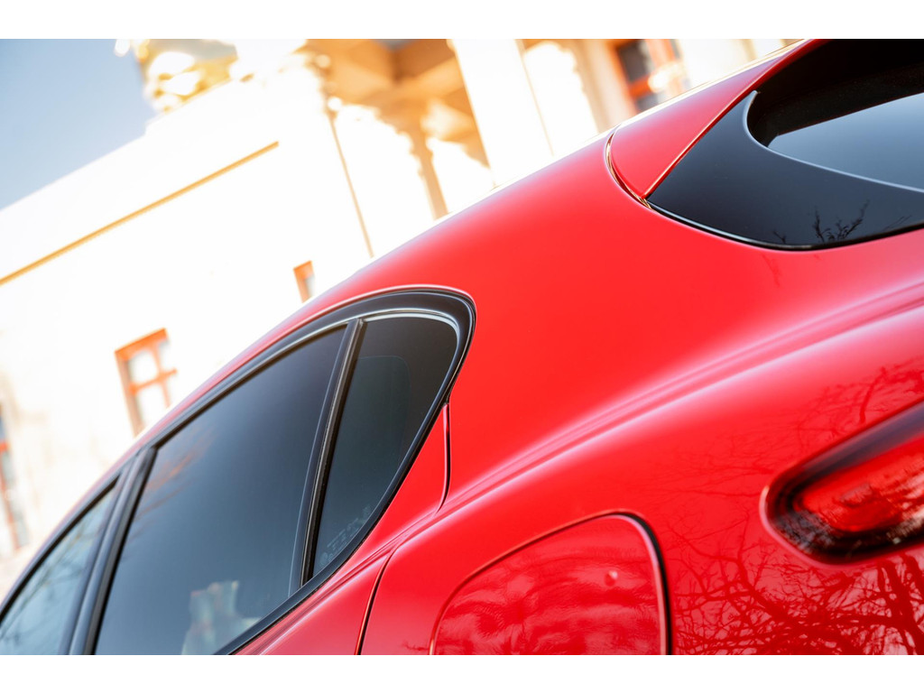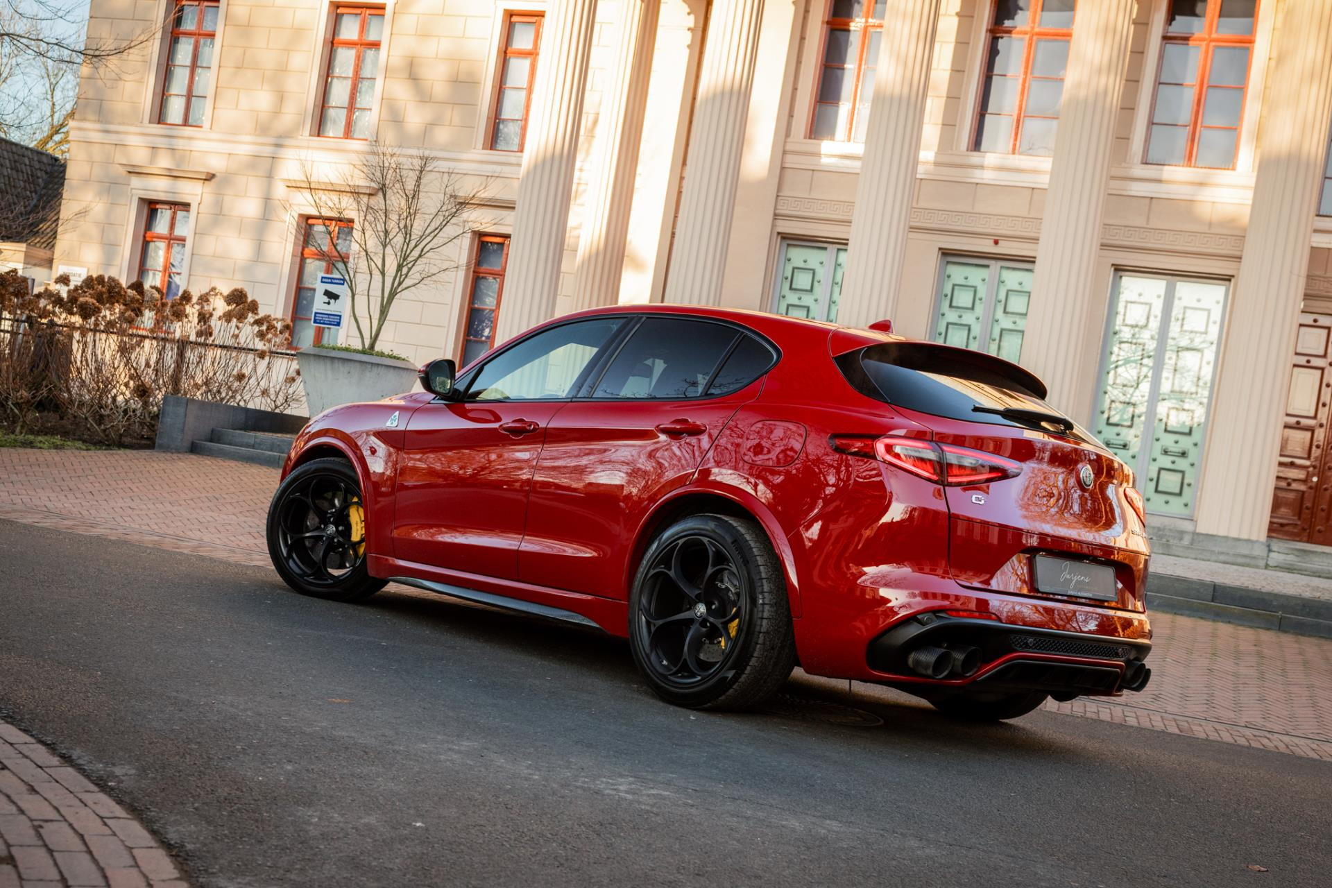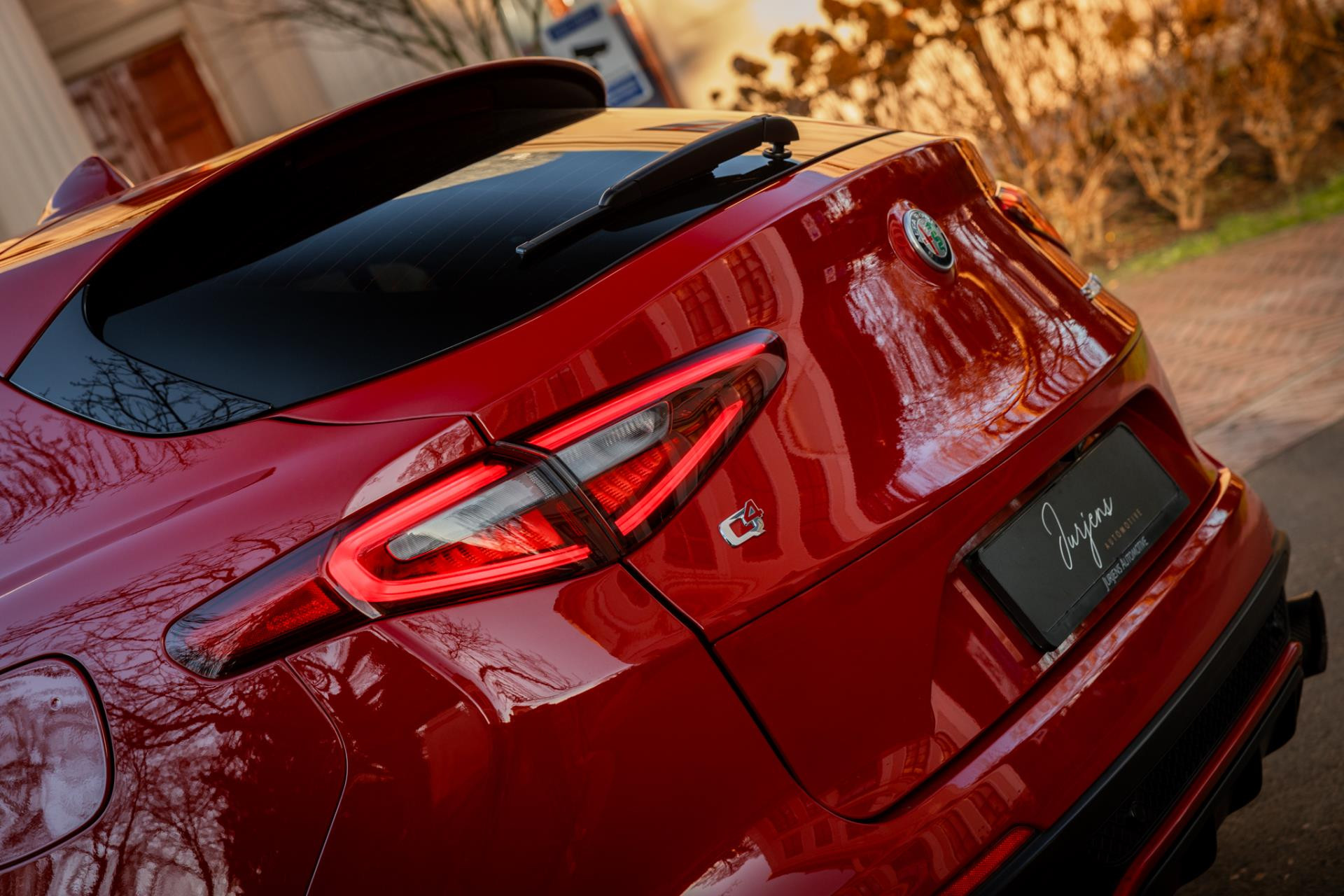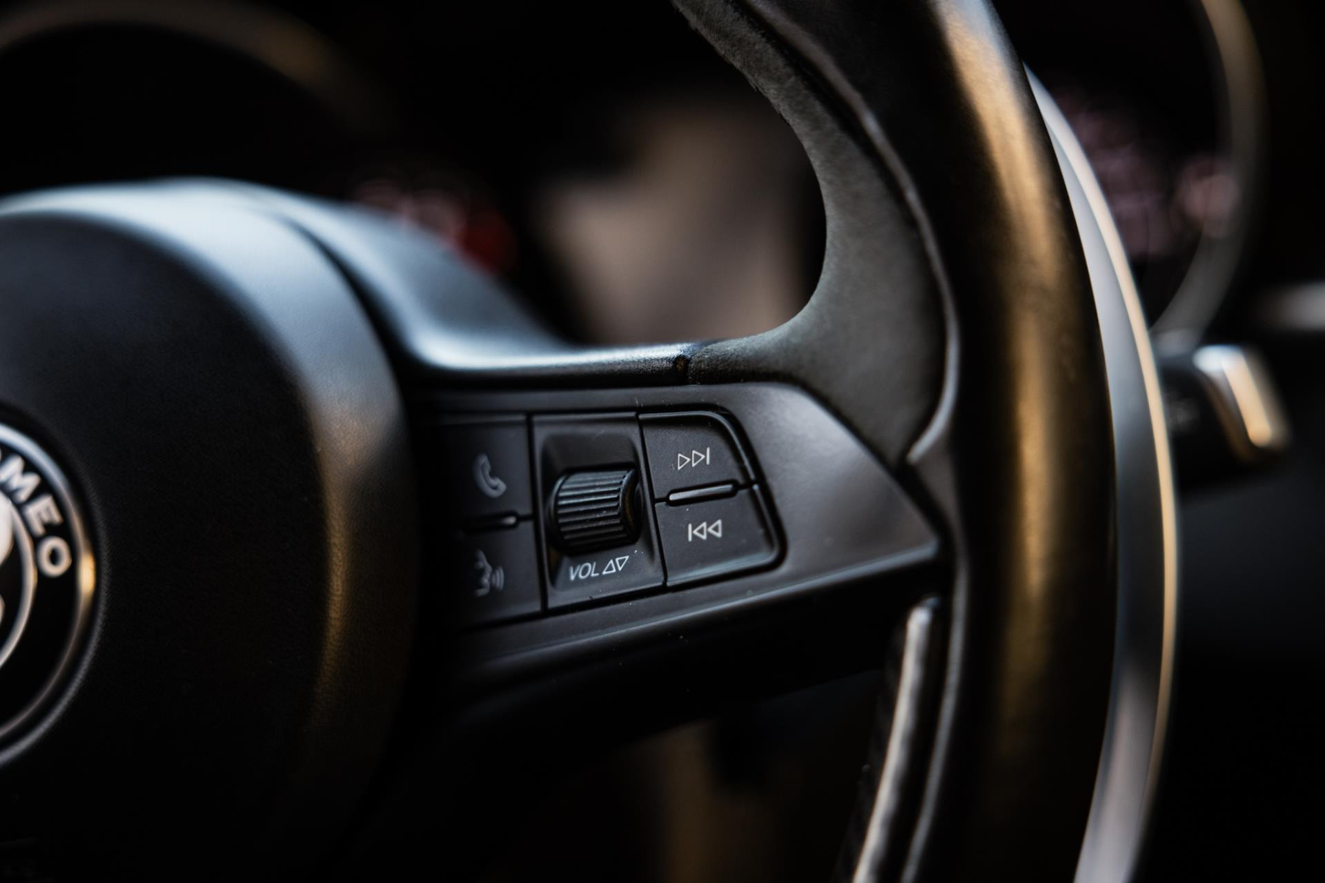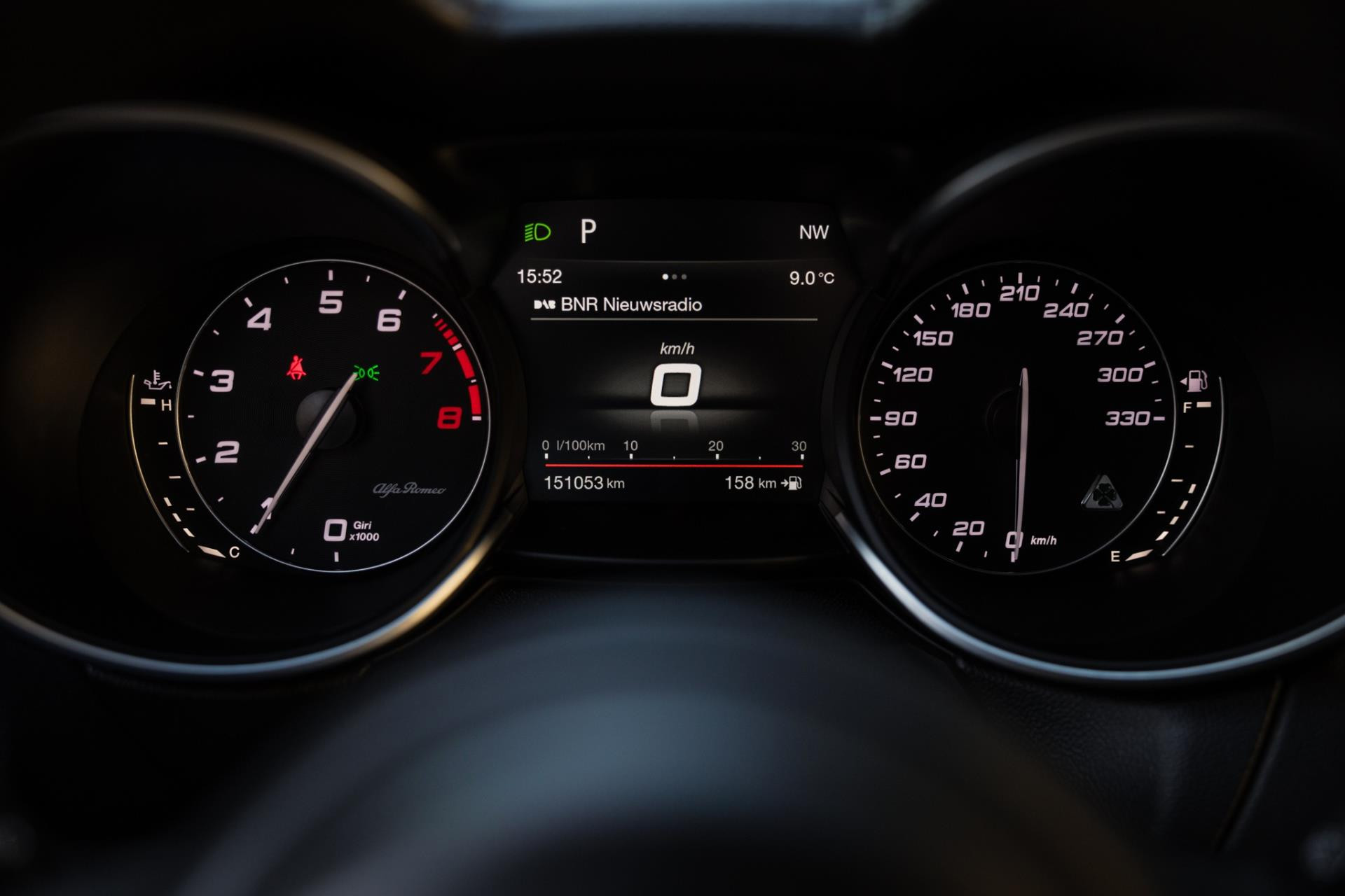 De Looks! De ronde vormen, het agressieve front, met de breede lichtunits en de zo kenmerkende grille. En dan die fantastische Quadrifoglio velgen met achter 285/40 Pirelli schoeisel, de vier indrukwekkende uitlaten, het is allemaal lust voor het oog.