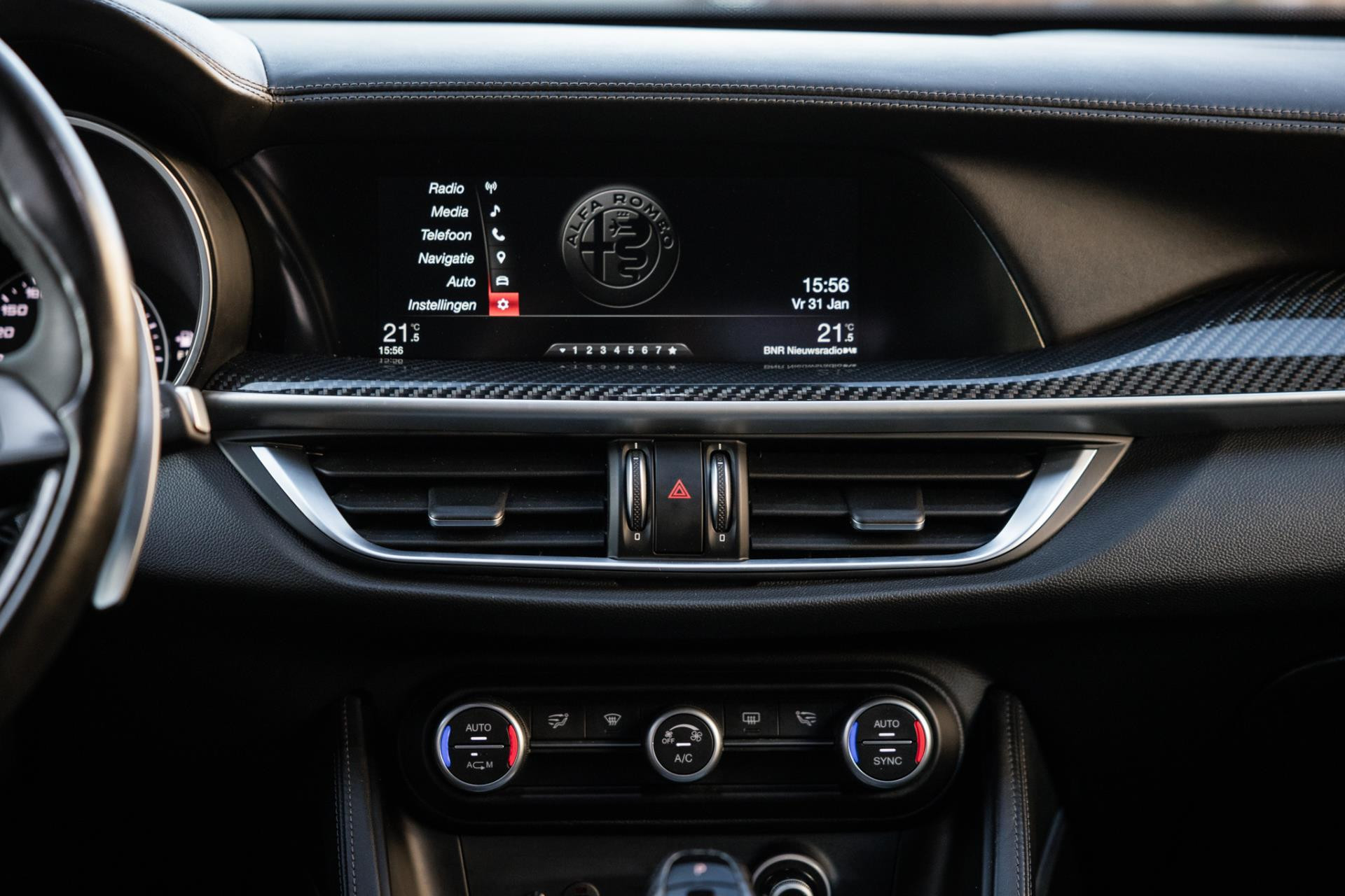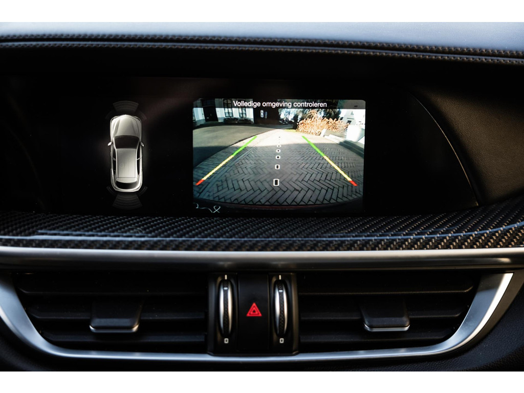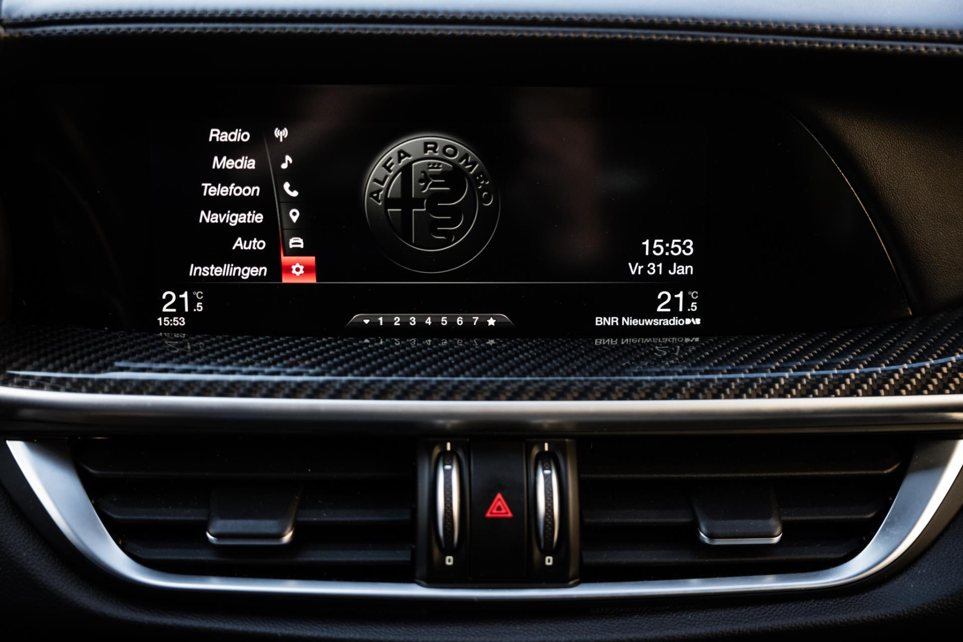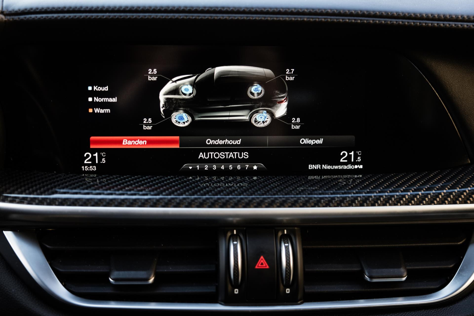 De Stelvio is rijkelijk voorzien van extra opties zoals het eerder genoemde keramisch remsysteem. Verder alle mogelijke rijassistenten waaronder adaptieve cruise control en Lane departure warning. Het multimediasysteem voorziet in navigatie, uitgebreide menu’s, telefonie, bluetooth audio, Apple CarPlay en Android Auto. Uiteraard ontbreekt het camerasysteem ook niet.