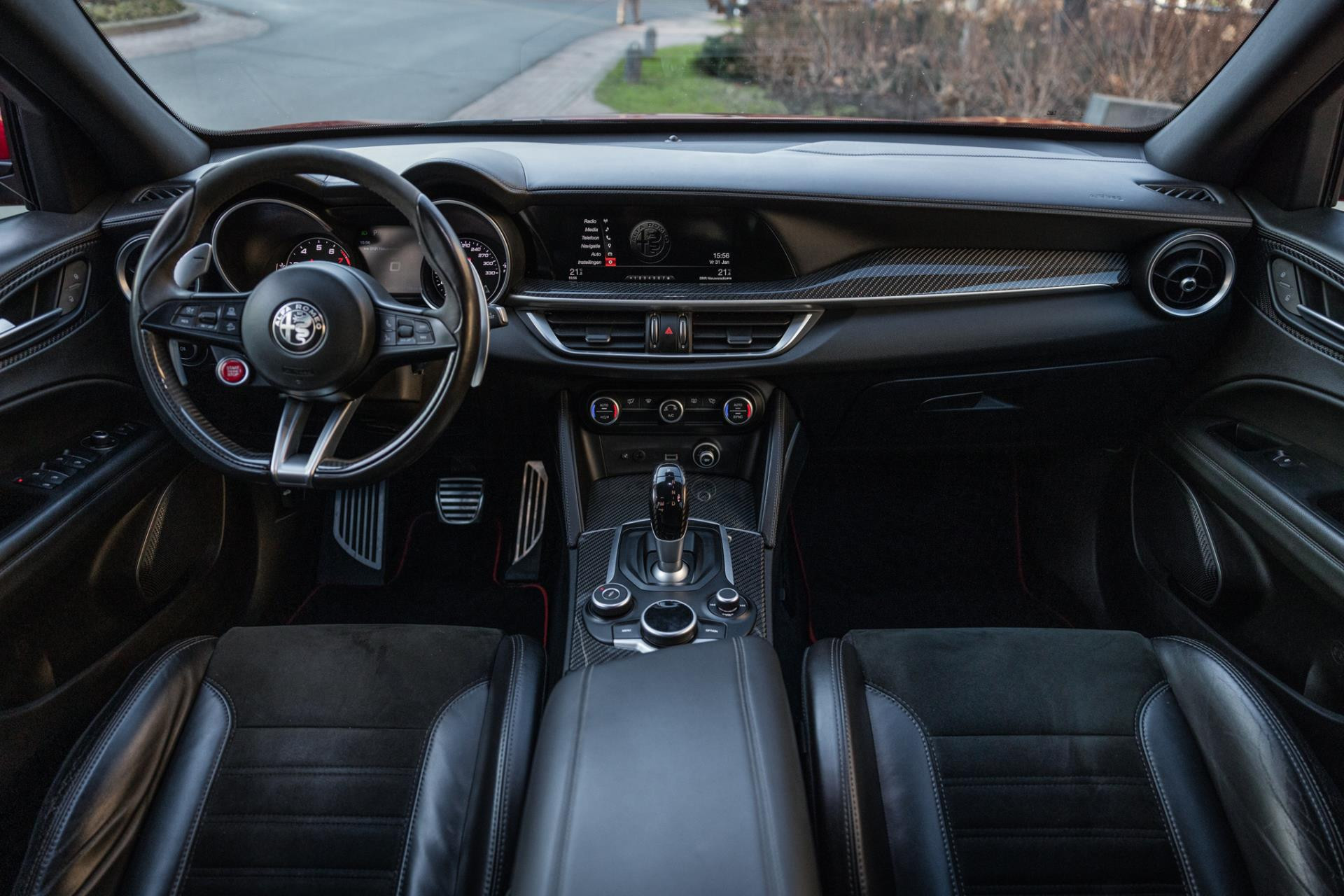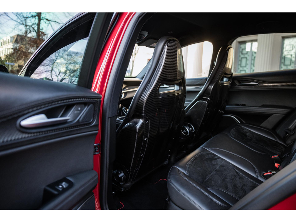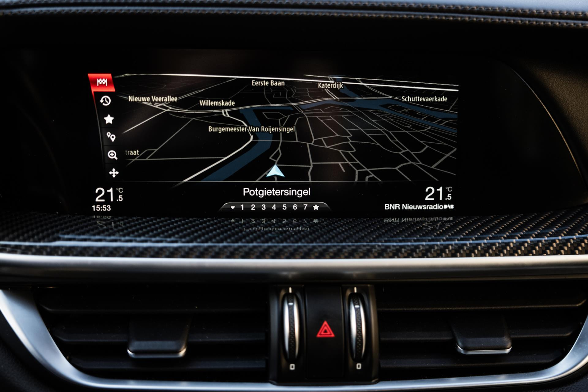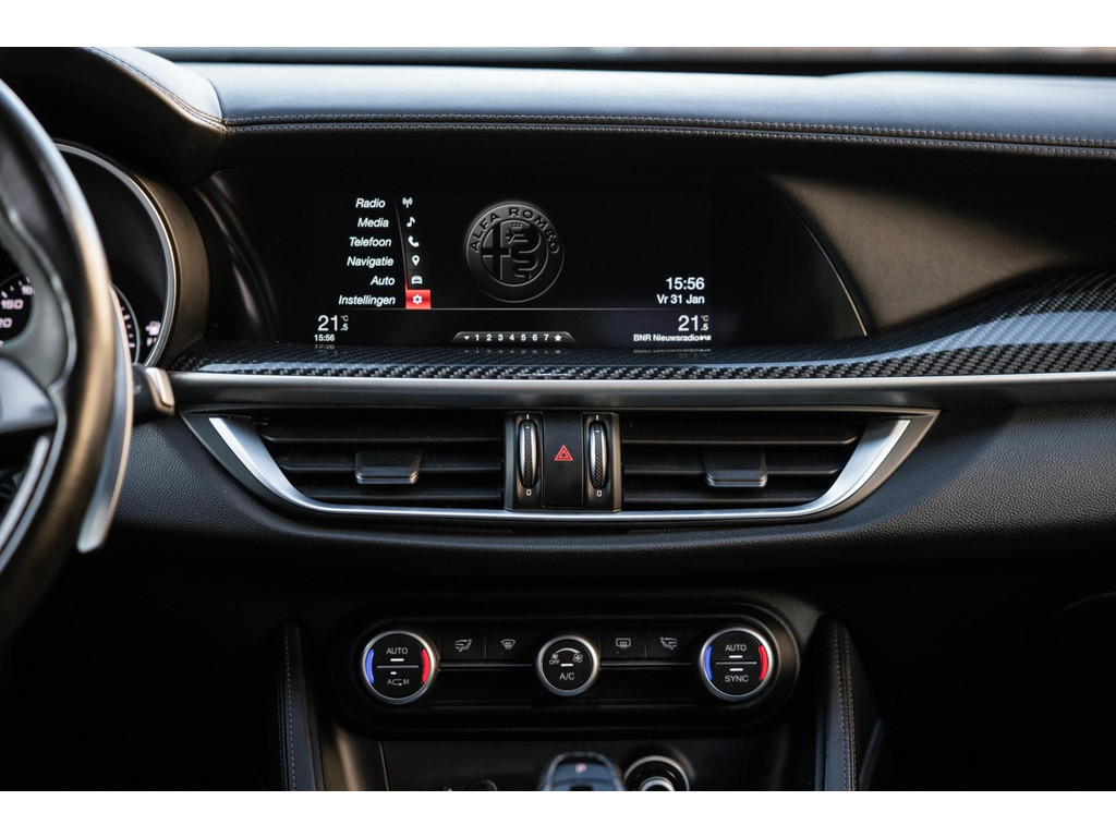De Stelvio is rijkelijk voorzien van extra opties zoals het eerder genoemde keramisch remsysteem. Verder alle mogelijke rijassistenten waaronder adaptieve cruise control en Lane departure warning. Het multimediasysteem voorziet in navigatie, uitgebreide menu’s, telefonie, bluetooth audio, Apple CarPlay en Android Auto. Uiteraard ontbreekt het camerasysteem ook niet.