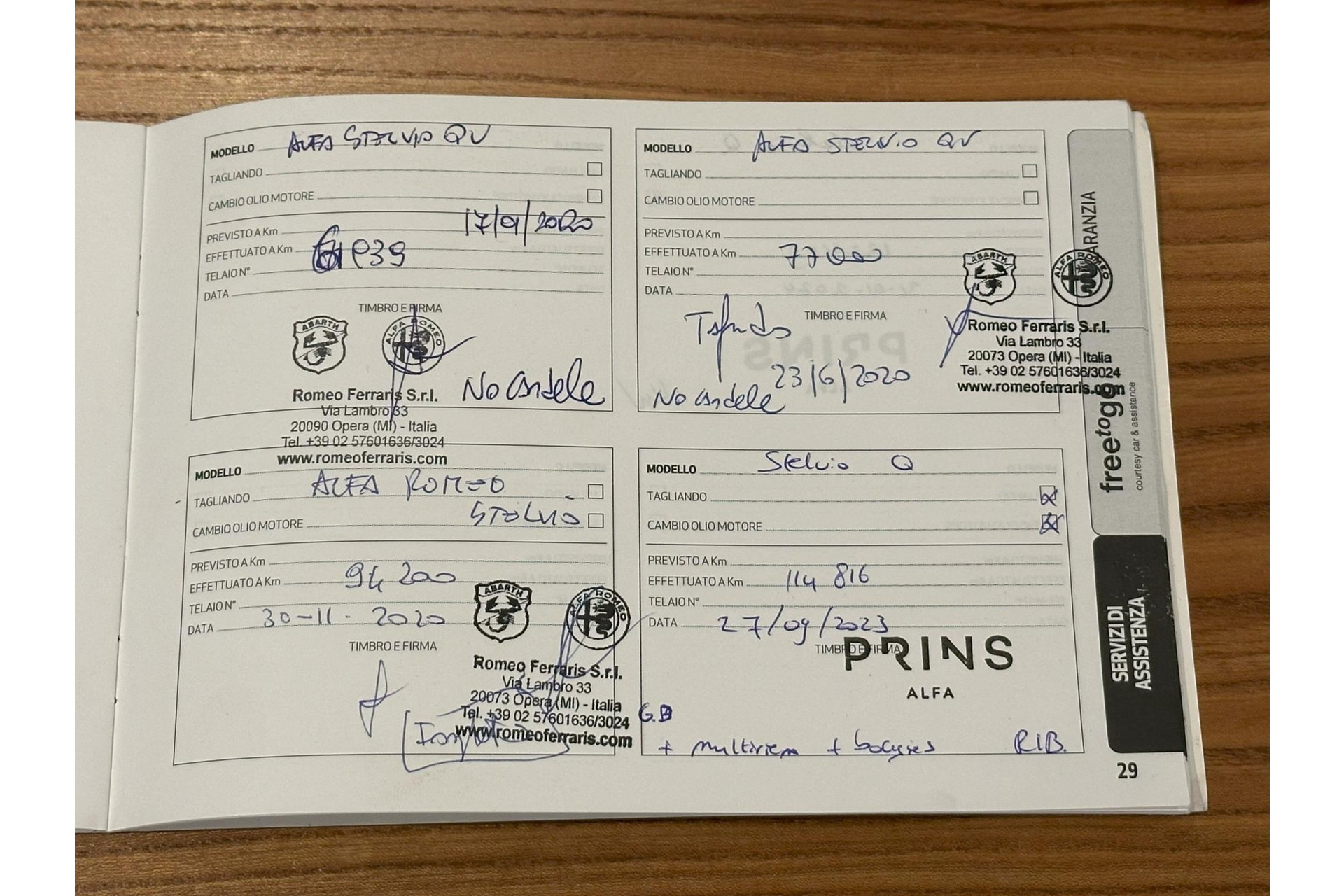 De Stelvio werd origineel in Italië geleverd aan de eerste eigenaar. De originele aankoopfactuur is aanwezig. De auto werd door deze eigenaar steeds door deze zelfde dealer onderhouden. In 2023 kwam de Stelvio naar Nederland. Hier werd de auto zakelijk gereden door de tweede eigenaar. Deze eigenaar liet de auto onderhouden door Alfa Romeo dealer Prins uit Nunspeet. De historie is volledige sluitend. Met recht een eerlijk en zuiver exemplaar. De staat is netjes en de Stelvio is duidelijk met zorg en liefde behandeld en bereden. Enig punt van kritiek zou de lichte steenslag op de voorzijde kunnen zijn.