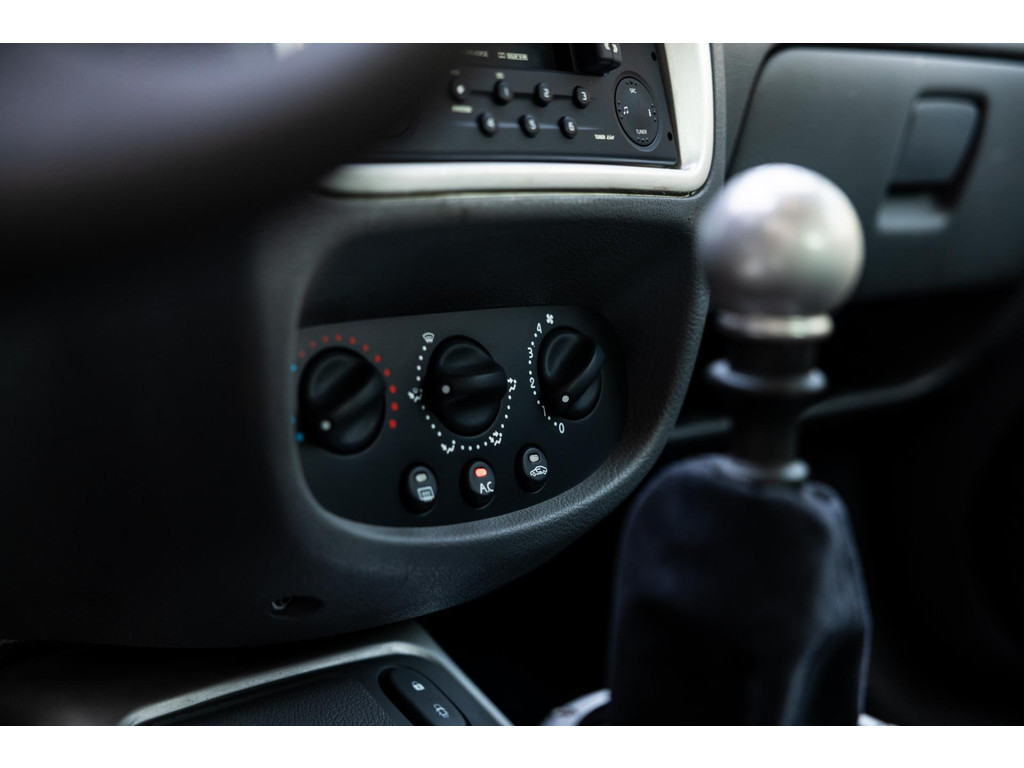 De Clio V6 van dit verhaal werd geleverd in april 2001. Het is één van de eerste exemplaren aangezien dit nummer #0040 betreft. De auto verkeert in volledig originele en zeer nette staat. Met slechts 21.444 km is dit een absolute collectable exemplaar. De velgen kennen geen enkele beschadiging en de V6 is geschoeid op Michelin rubber. Voor de echte purist is het goed om te weten dat ook de originele Michelin Pilot SuperSport banden van de eerste montering nog aanwezig zijn bij deze auto. Deze banden hebben een DOT code uit 2000 en verkeren qua profiel nog in goede staat, maar zijn dus inmiddels wel 25 jaar oud. Deze banden werden speciaal door Michelin ontwikkeld voor de Clio V6. Wij kochten de Clio in 2021 als verzamelobject. De auto heeft immer binnen gestaan. Er is een hoge kwaliteit afdekhoes bij de auto aanwezig.