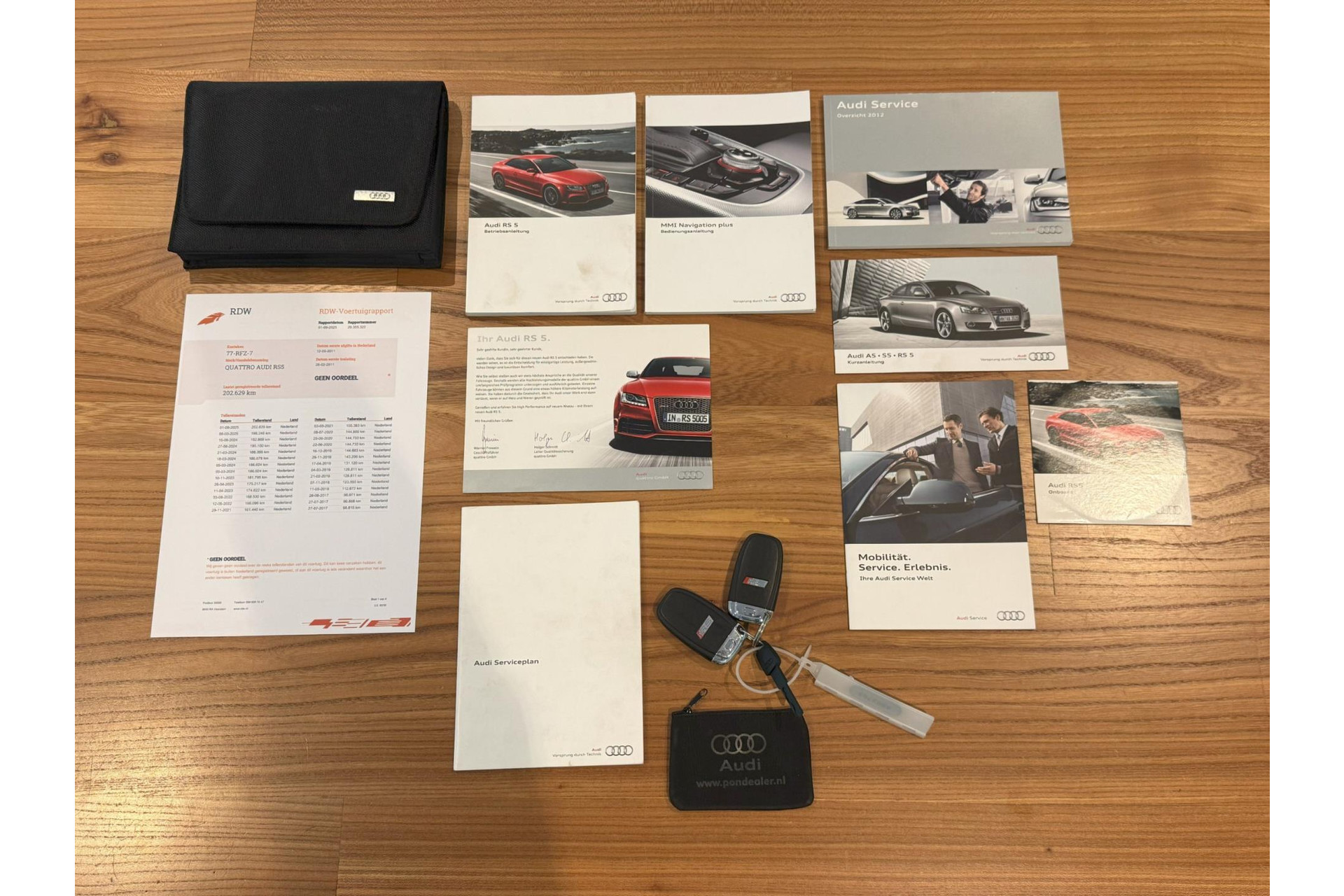 De Audi RS5 die we hier aanbieden werd als fabrieksdemo geleverd in zijn geboortestad Ingolstadt. Na slechts drie maanden kwam de RS via Audi dealer Zenna naar Nederland. Hier werd de RS5 uitstekend onderhouden. Zijn gehele leven is keurig gedocumenteerd. De staat is bijzonder netjes gezien leeftijd en kilometrage. Wij kochten de auto van een liefhebbende eigenaar die zeer recent veel kostbaar onderhoud heeft laten uitvoeren. Naast het afgestempelde onderhoudsboekje – het Serviceplan – zijn er tal van facturen aanwezig. Alleen al in 2024 en 2025 is er voor bijna EUR 10.000 onderhoud uitgevoerd door een Audi specialist. Hierbij zijn onder meer de S-Tronic nagekenen, de gasklephuizen schoongemaakt, groot onderhoud geweest op technisch gebied, maar ook aanhet onderstel en de remmen. Met recht een piekfijn onderhouden exemplaar.