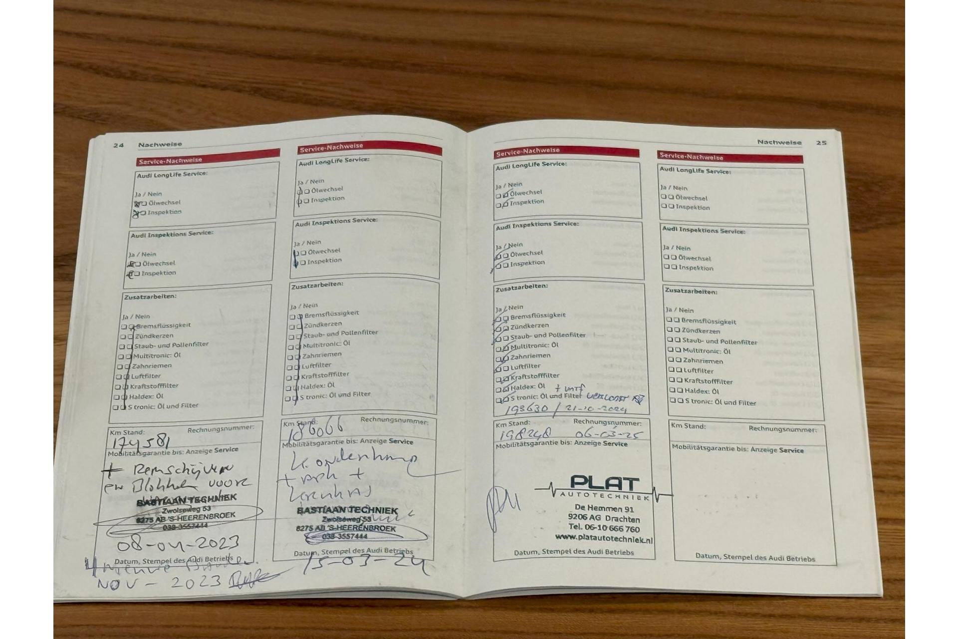 De volgende servicebeurten zijn bekend: