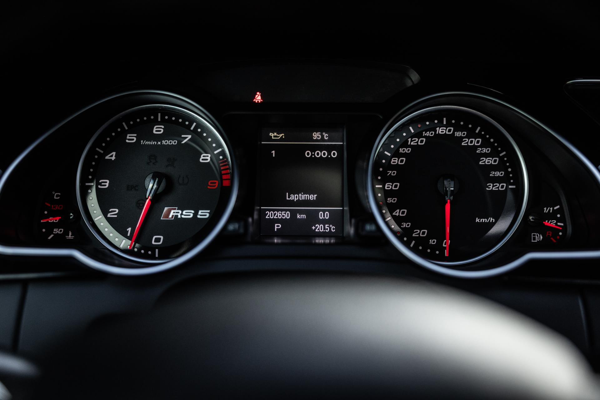 Tijd om de RS5 aan de tand te voelen. We zetten het onderstel in Dynamic, de S-Tronic is S sportmodus en nemen de flippers achter het stuurwiel ter hand. Diep drukken we het gaspedaal richting bodem. De V8 schraapt zijn keel en accelereert als een bezeten. In slechts 4,6s katapulteren we vanuit stilstand naar 100km/h en het feest is nog lang niet over. De machtige 4.2 FSI lijkt oneindig kracht te hebben en dendert maar door. Wat een power en wat een indrukwekkend geluid. Iets wat nooit meer gemaakt gaat worden. Uniek.