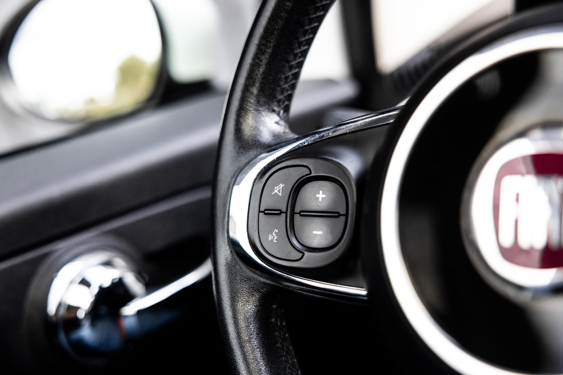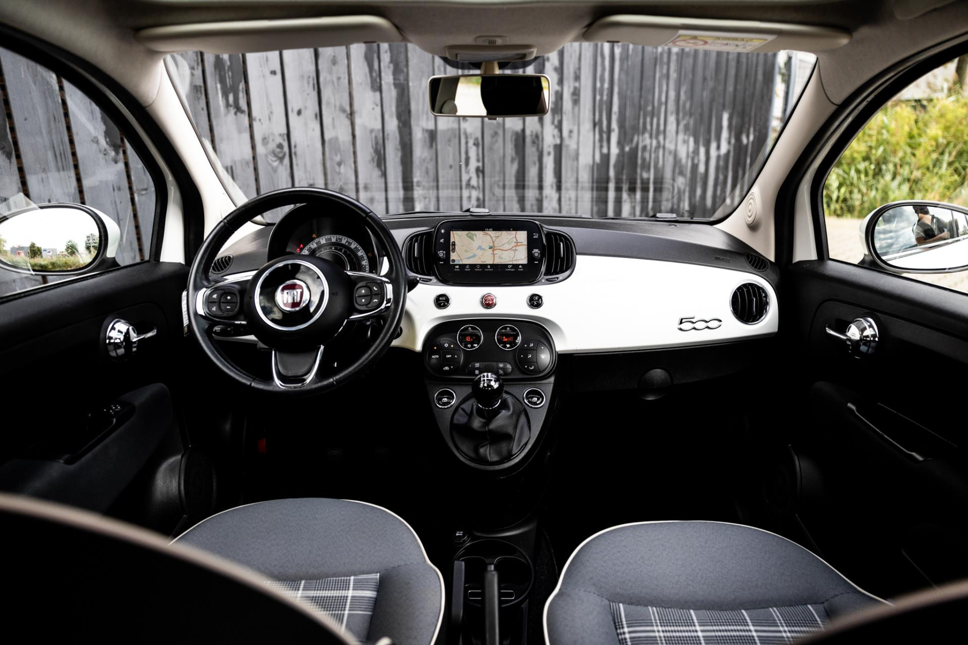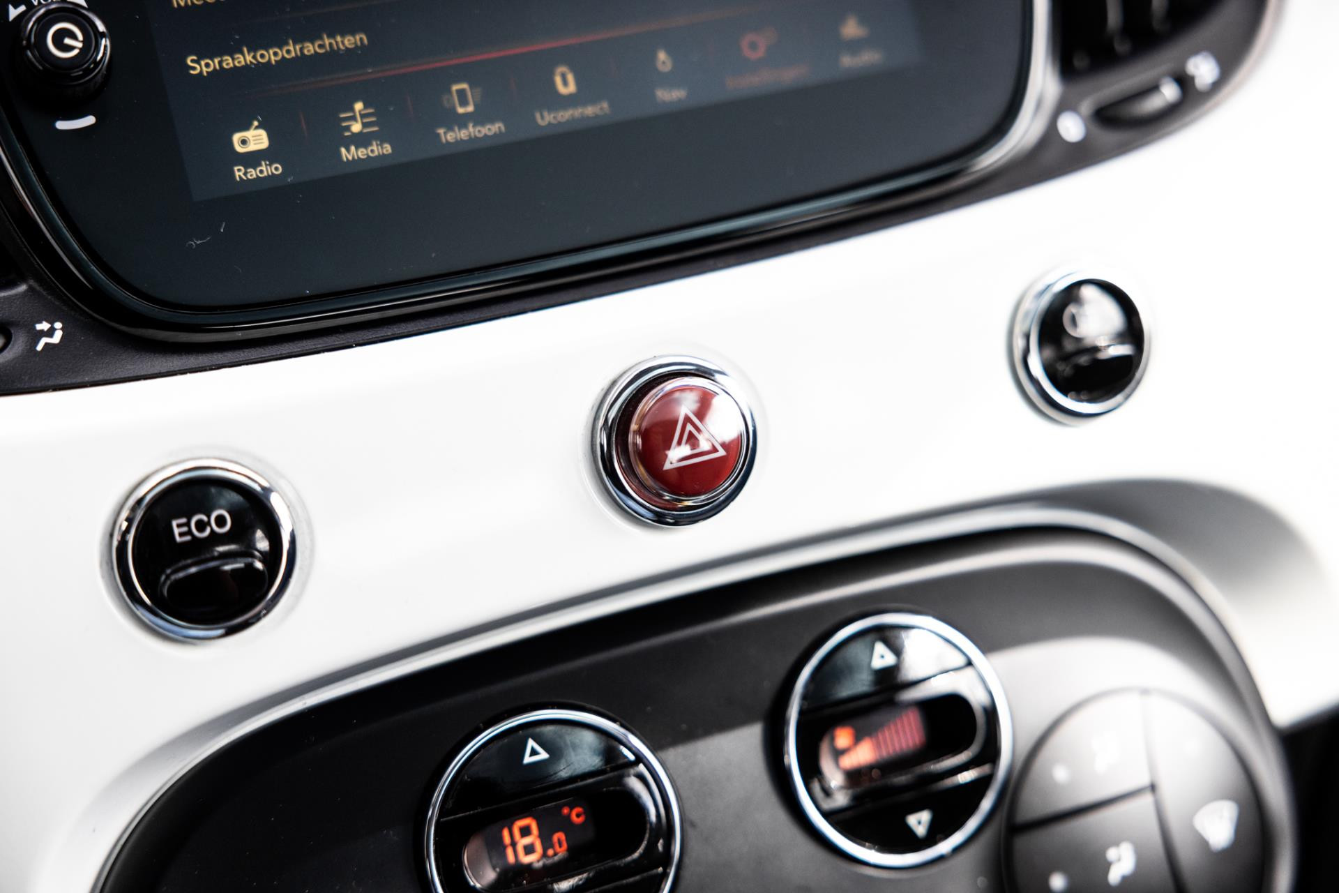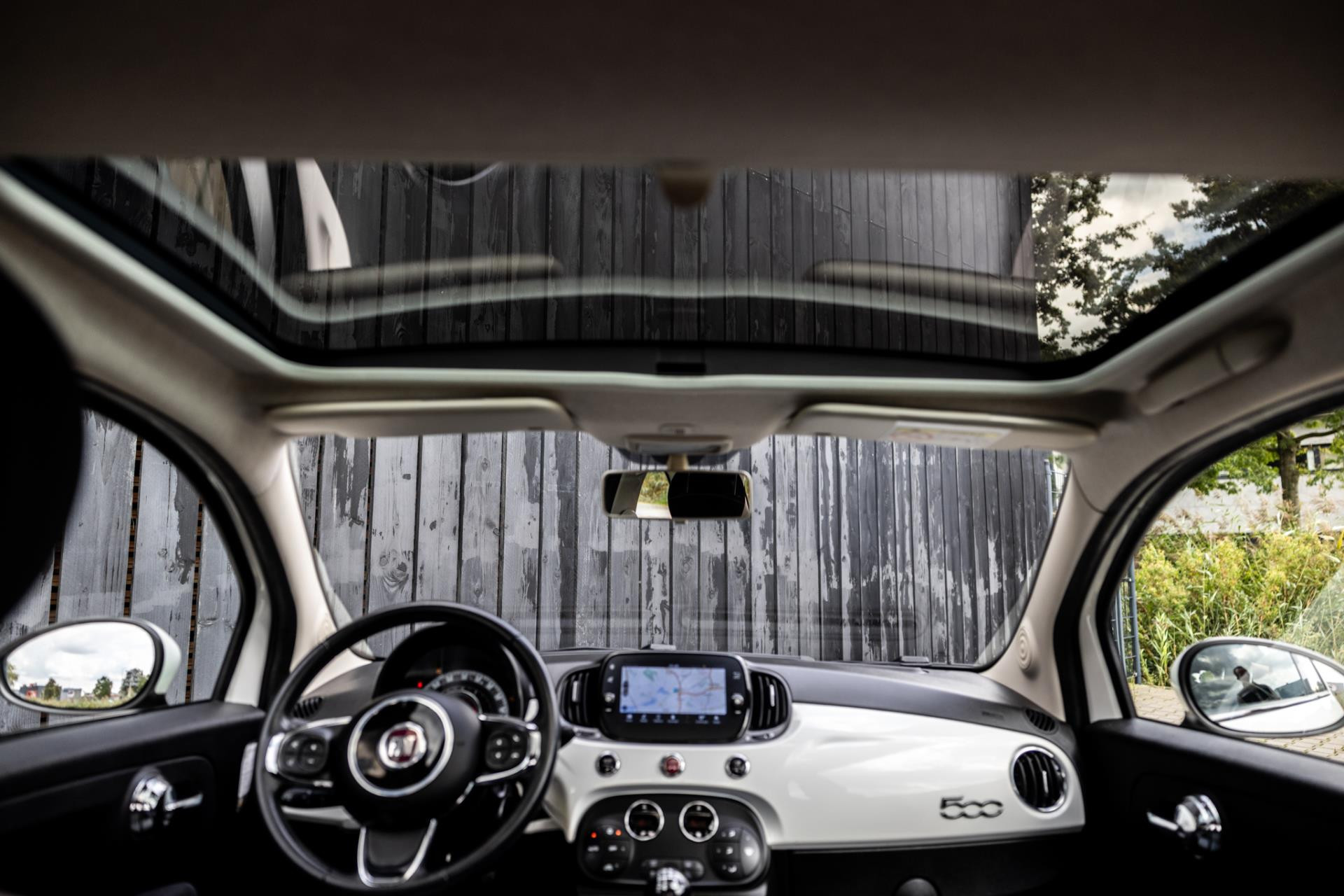 Ook van binnen is de Fiat 500 helemaal zoals je wilt. De bijzondere kleur is ook doorgetrokken in het interieur zoals de vroegere 500’s dat ook hadden. Deze Fiat 500 beschikt over automatische geregelde airconditioning, cruise control, panorama dak, elektrische ramen en spiegels en een origineel audiosysteem met stuurwielbediening. Het moderne multimediasysteem voorziet in Navigatiesysteem, DAB+ digitale radio en bluetooth. Ook is deze Fiat 500 voorzien van parkeersensoren. Handig is overigens de neerklapbare achterbank. De kofferruimte is reeds groot, maar met de bank in delen naar beneden geklapt heb je zeeën van ruimte.