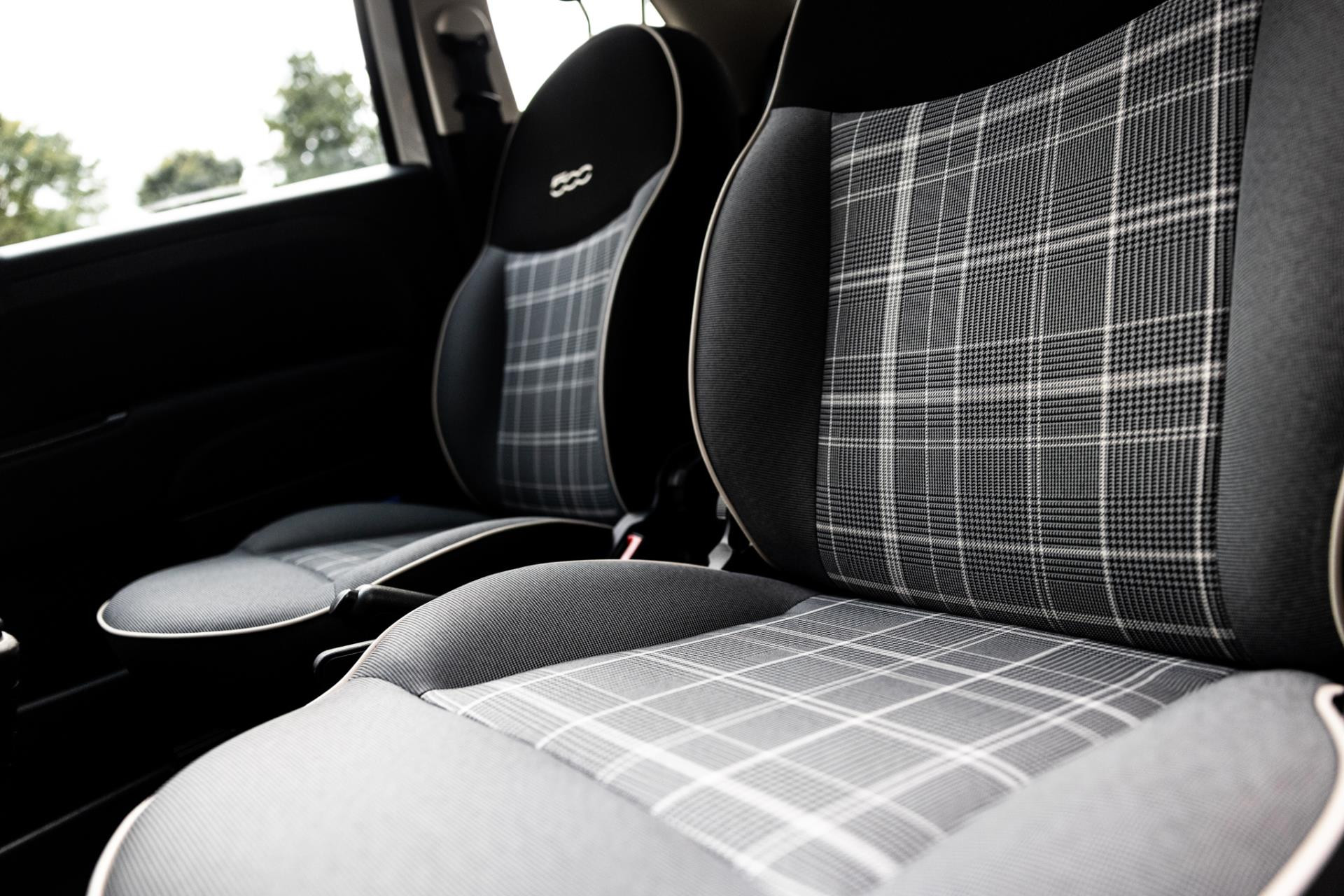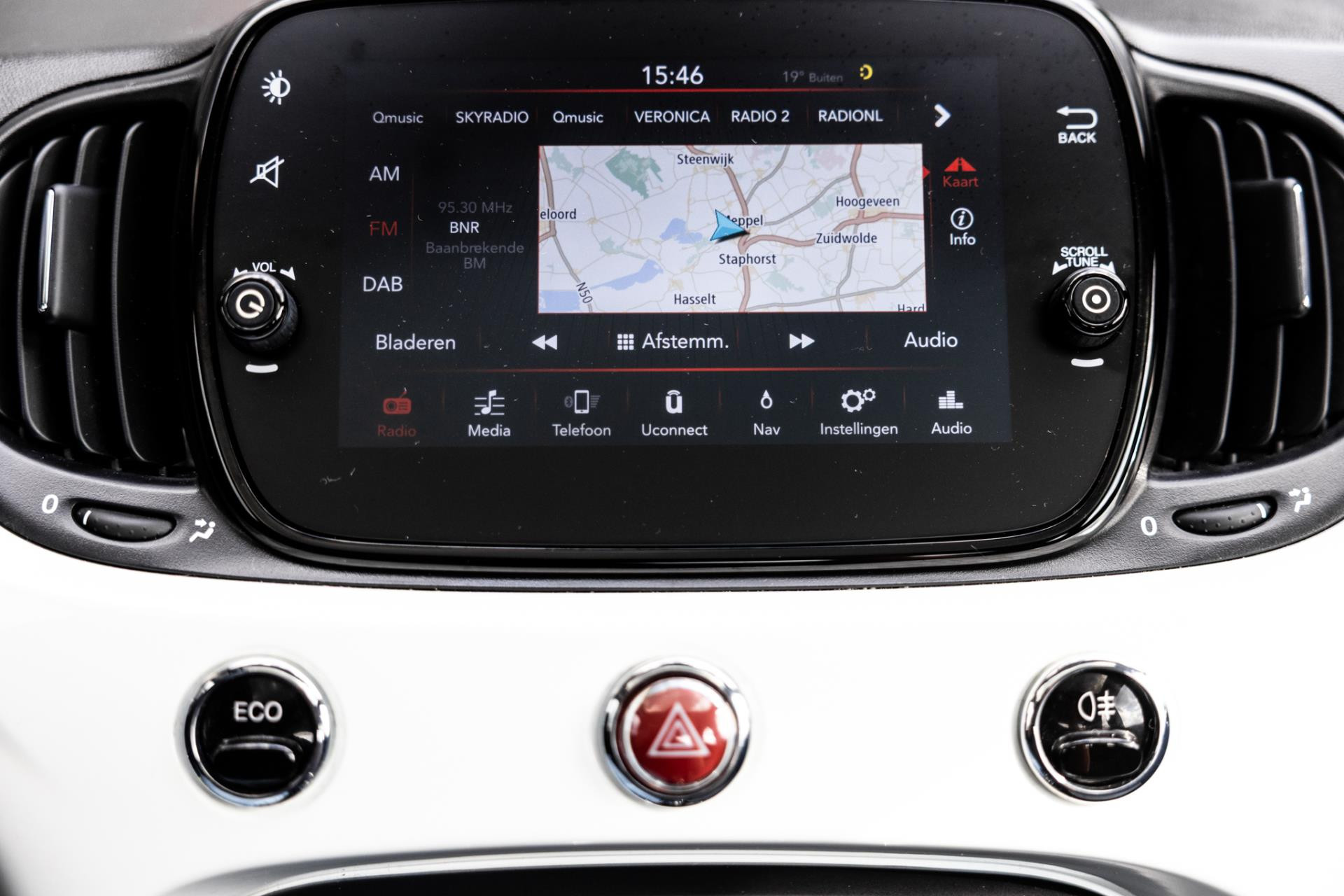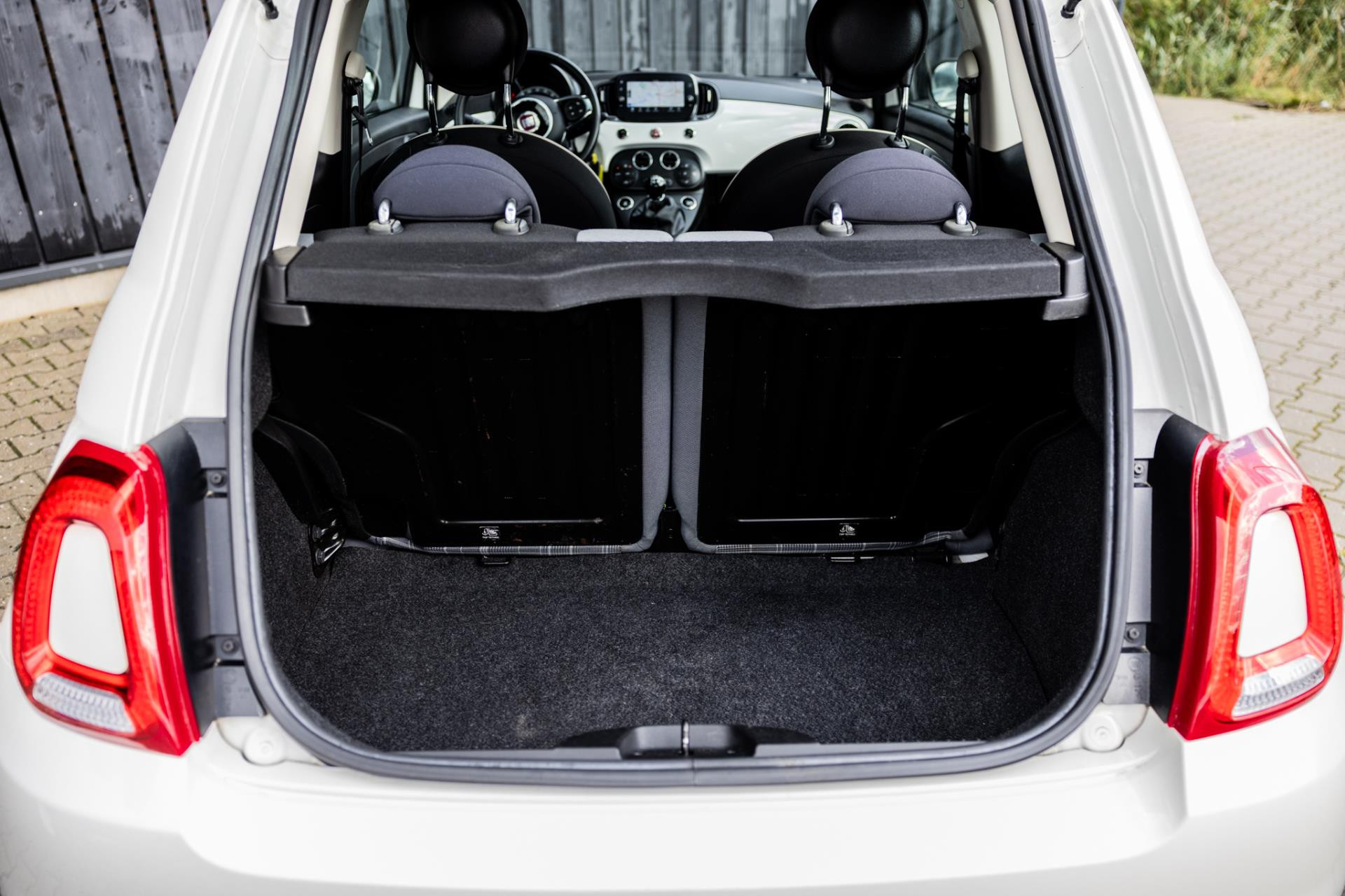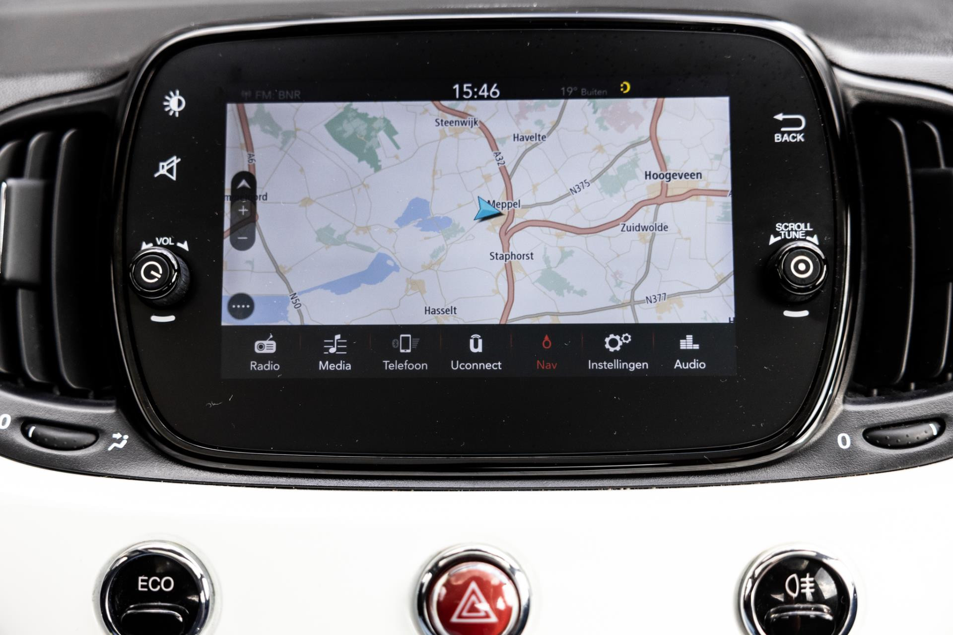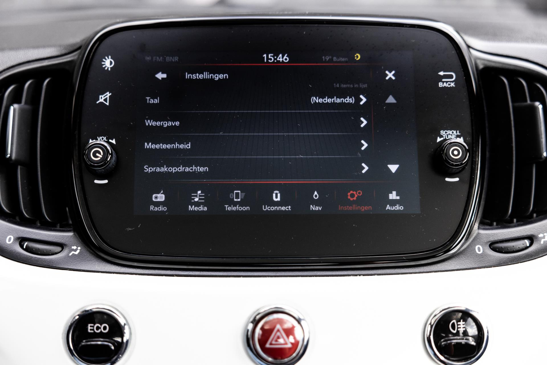 Ook van binnen is de Fiat 500 helemaal zoals je wilt. De bijzondere kleur is ook doorgetrokken in het interieur zoals de vroegere 500’s dat ook hadden. Deze Fiat 500 beschikt over automatische geregelde airconditioning, cruise control, panorama dak, elektrische ramen en spiegels en een origineel audiosysteem met stuurwielbediening. Het moderne multimediasysteem voorziet in Navigatiesysteem, DAB+ digitale radio en bluetooth. Ook is deze Fiat 500 voorzien van parkeersensoren. Handig is overigens de neerklapbare achterbank. De kofferruimte is reeds groot, maar met de bank in delen naar beneden geklapt heb je zeeën van ruimte.
