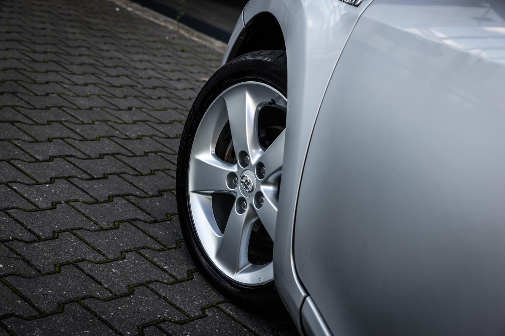 De uitstraling is erg fraai. De zilver metallic lak staat hem prachtig, vooral in combinatie met de grote originele lichtmetalen velgen.