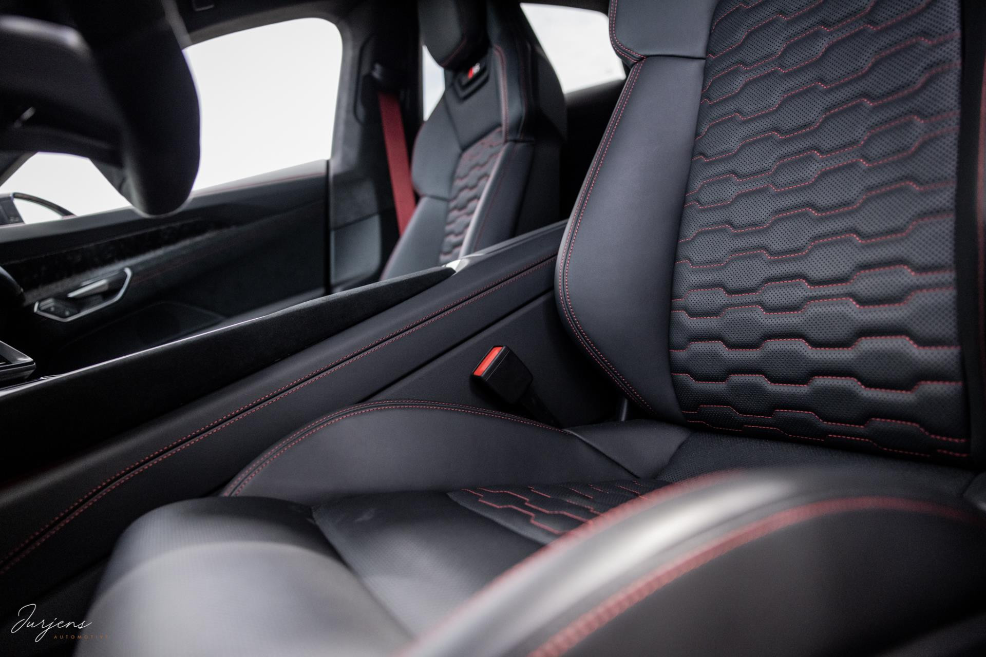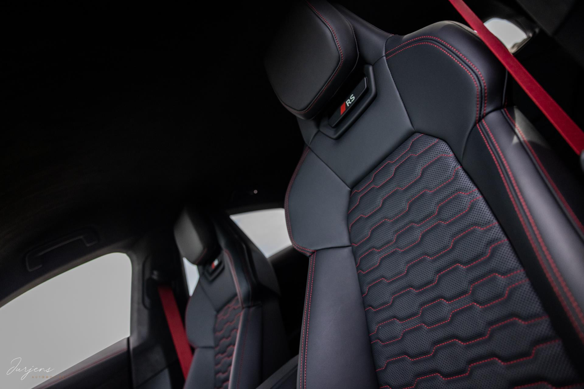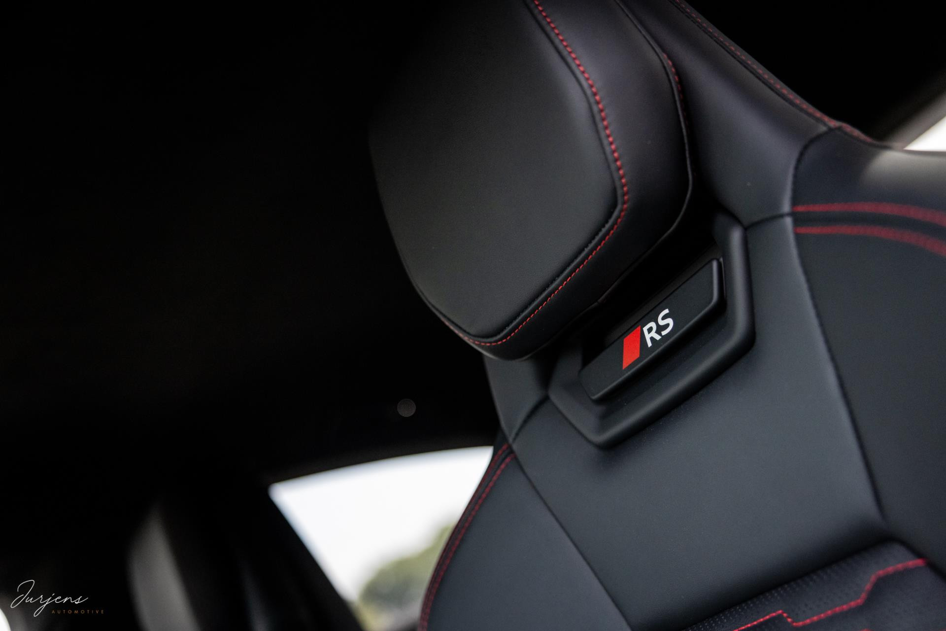 Het interieur kenmerkt zicht door high-end materialen en de uitstraling is toegespitst om de sportieve eigenschappen. De sierlijsten zijn ook hier uitgevoerd in forged carbon en de luxe sportzetels uitgevoerd in Fijn Nappa lederen bekleding met honingraat stiksels. Gekozen is voor het RS Design pakket Rood met bijzondere rode kenmerken in het interieur zoals de stiksels, gordels en de 12-uur indicatie op het Audi Exclusive stuurwiel.
