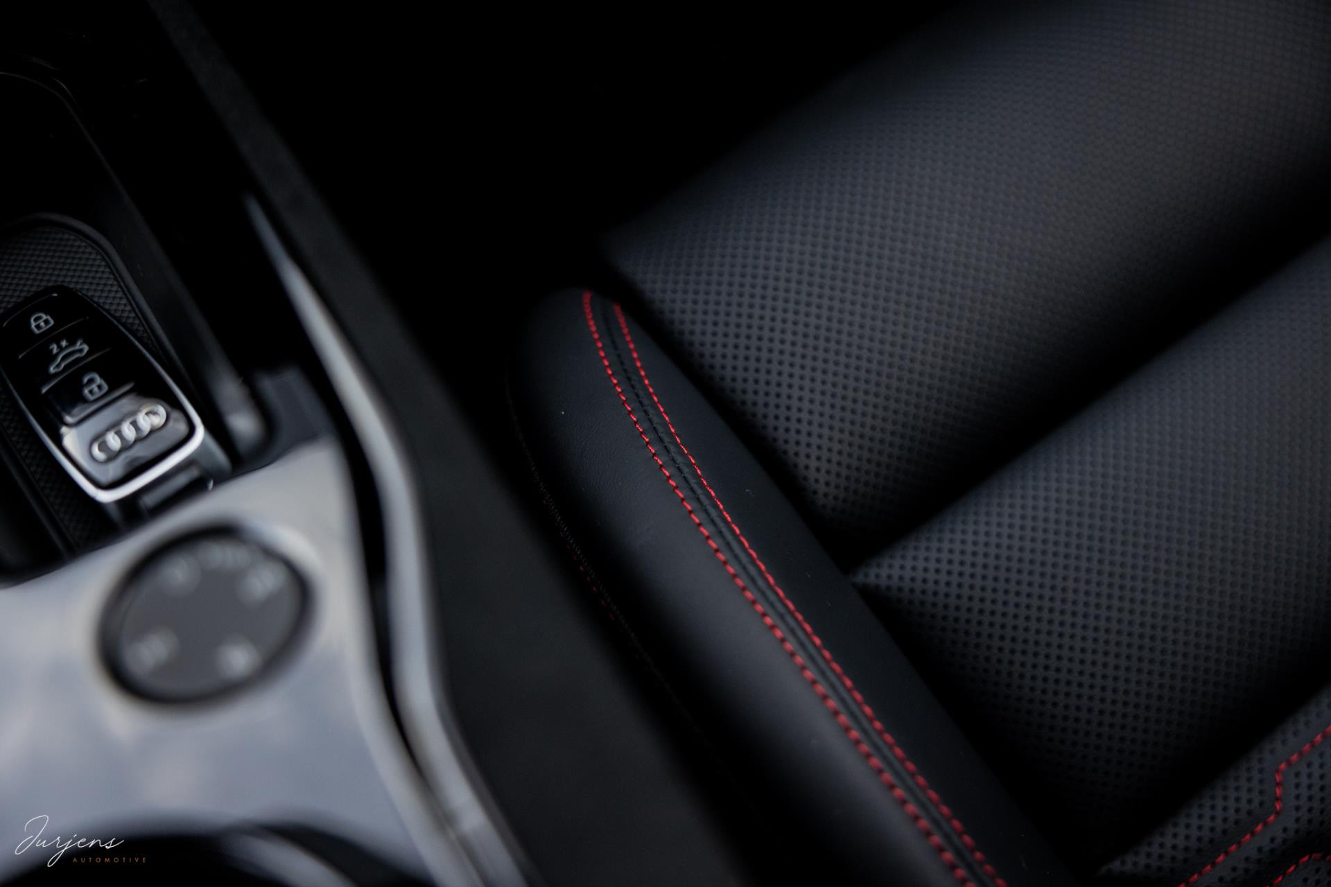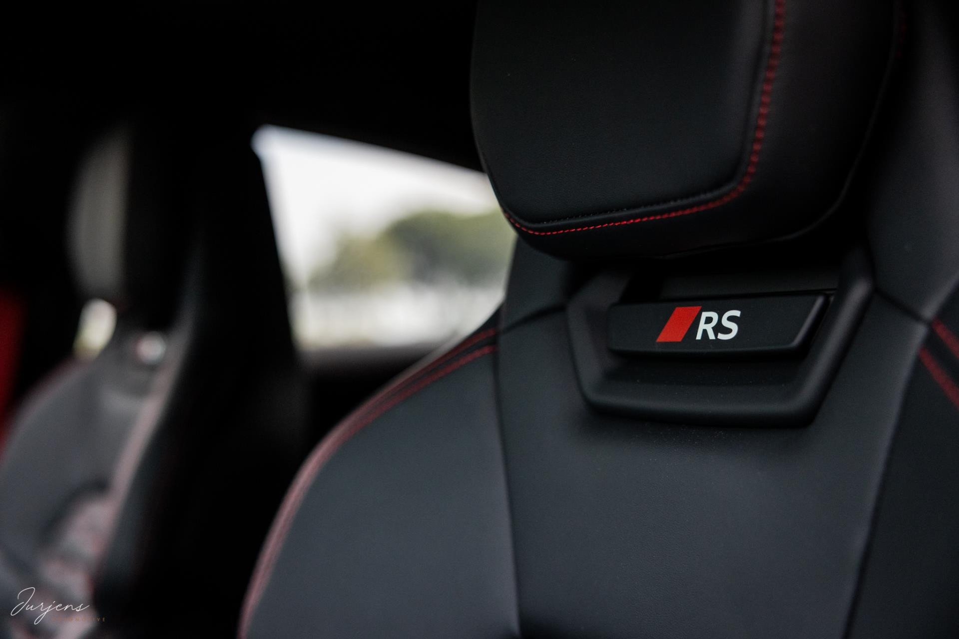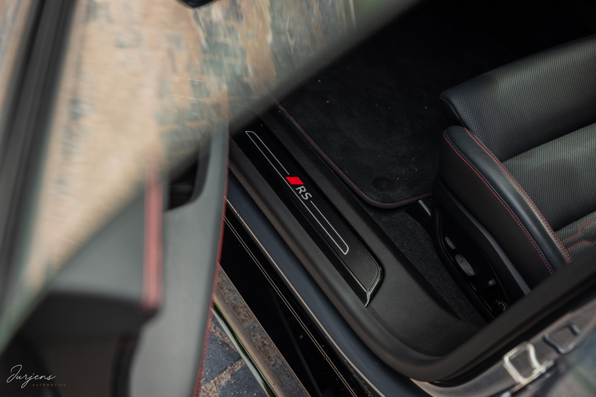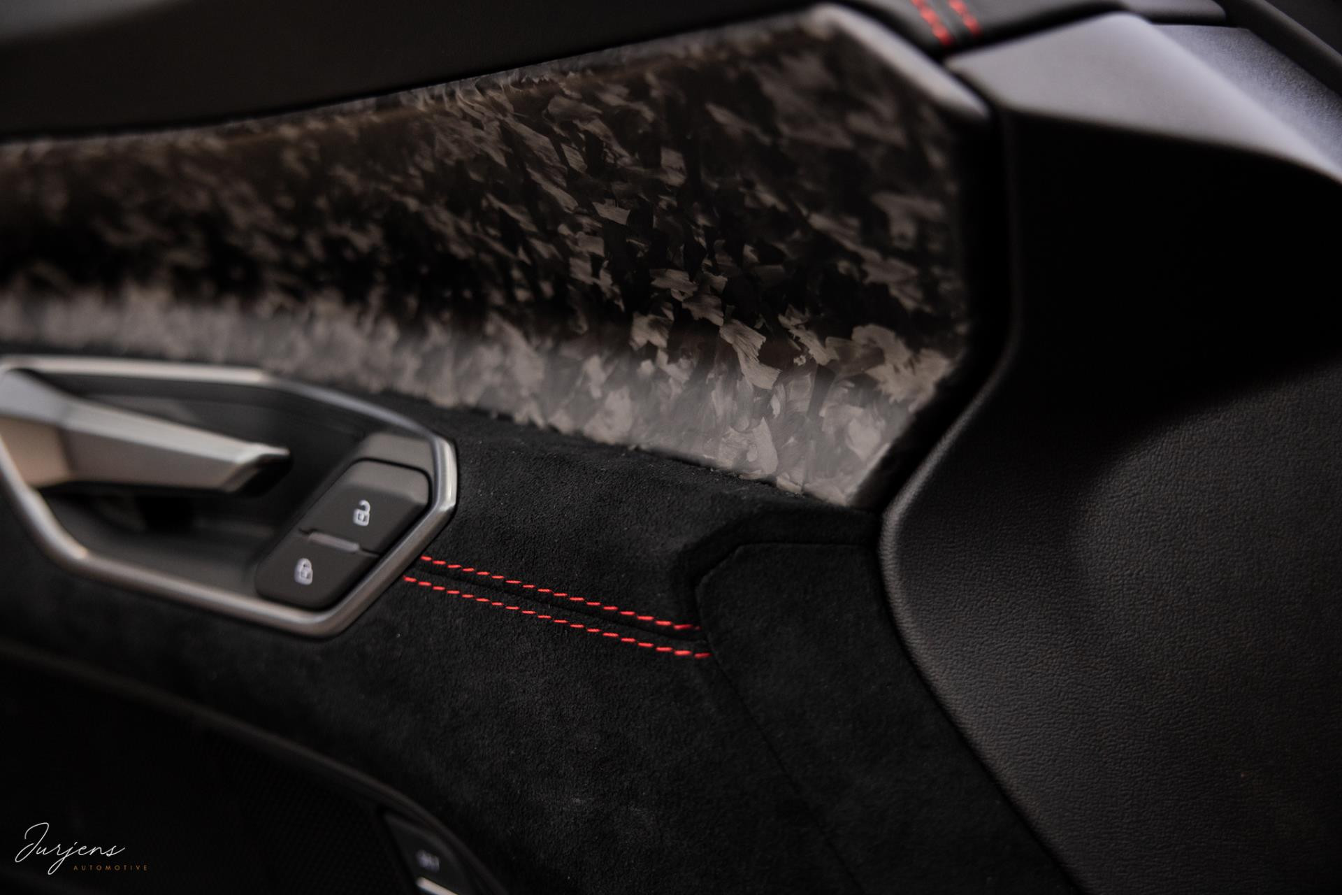 Het interieur kenmerkt zicht door high-end materialen en de uitstraling is toegespitst om de sportieve eigenschappen. De sierlijsten zijn ook hier uitgevoerd in forged carbon en de luxe sportzetels uitgevoerd in Fijn Nappa lederen bekleding met honingraat stiksels. Gekozen is voor het RS Design pakket Rood met bijzondere rode kenmerken in het interieur zoals de stiksels, gordels en de 12-uur indicatie op het Audi Exclusive stuurwiel.