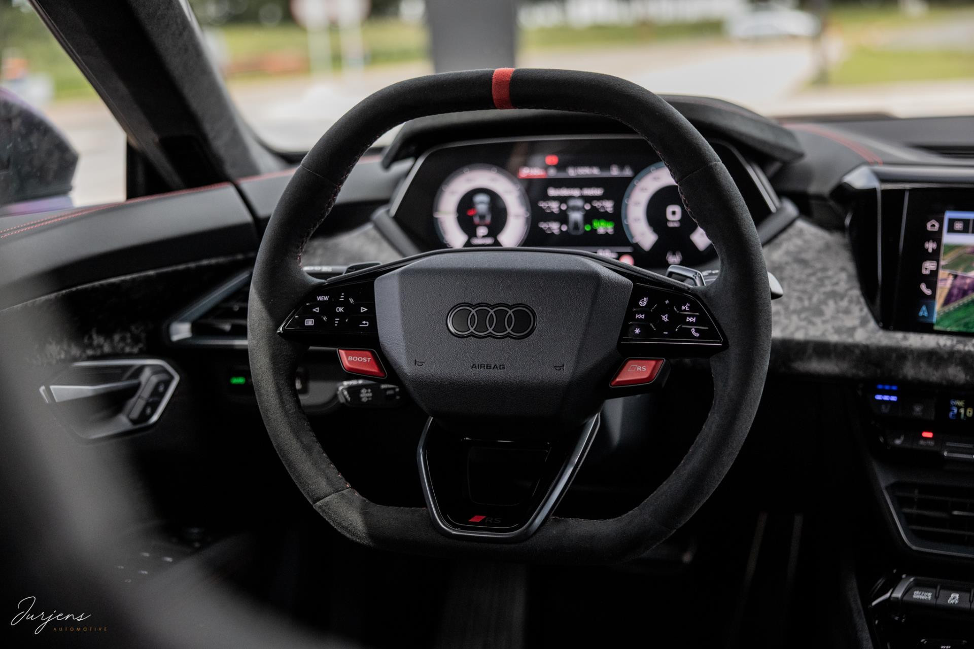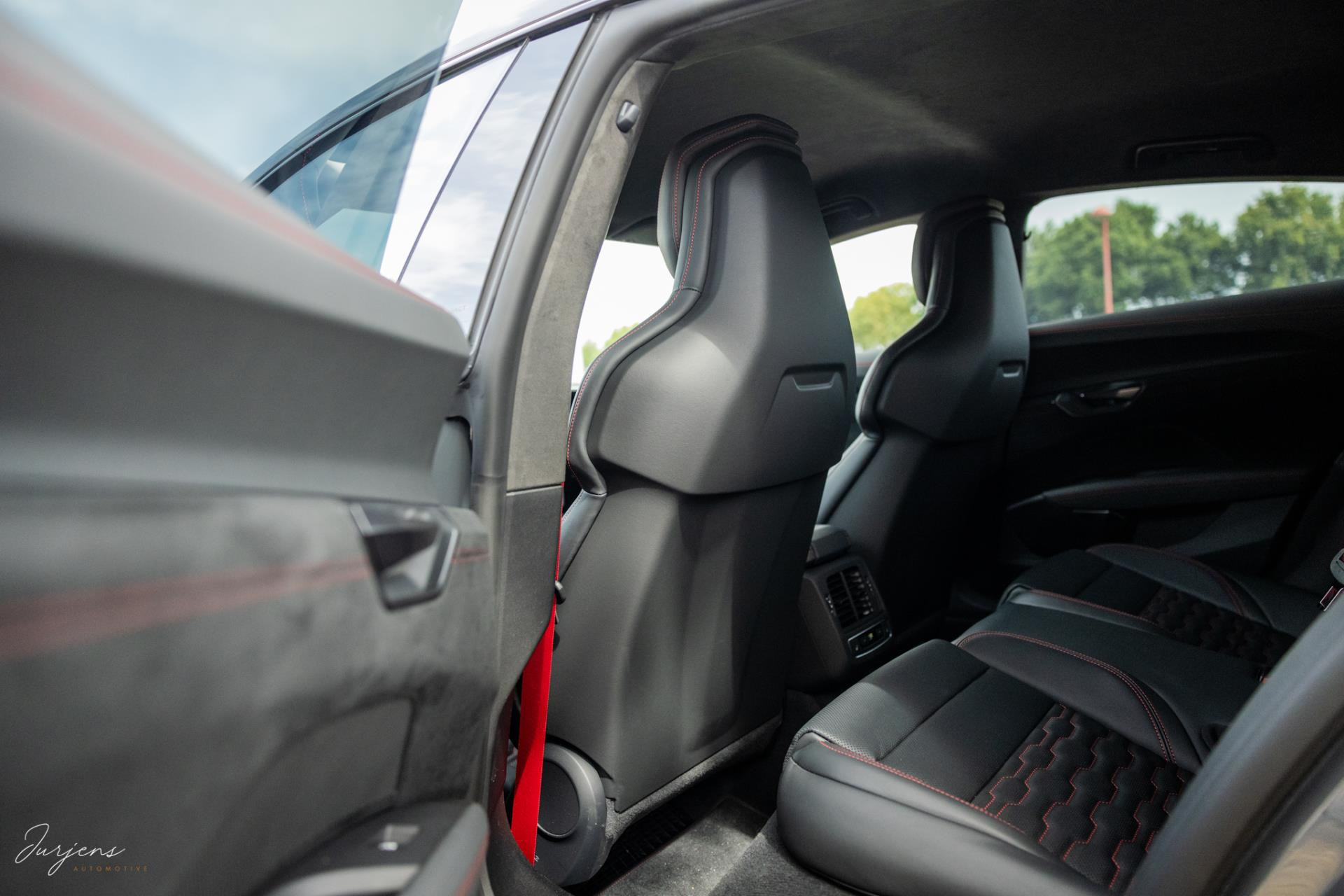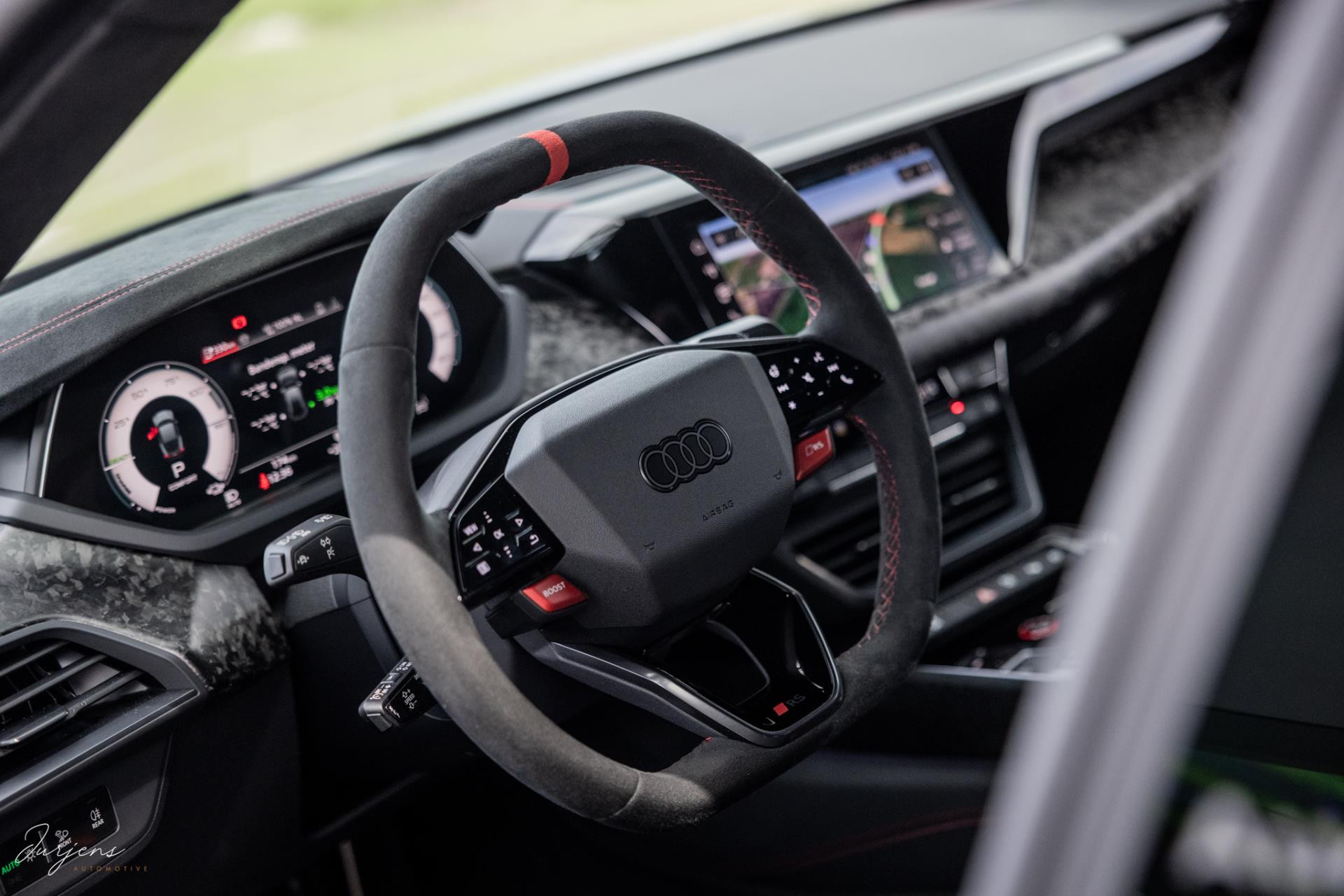 Zoals gezegd is de e-tron uitgerust met praktisch gezien al hetgeen er mogelijk was. Zo zijn de sportstoelen voorzien van massagestanden en zijn alle zitplaatsen voorzien van stoelverwarming en stoelventilatie. Het fenomenale Bang & Olufsen Premium audiosysteem mag niet ontbreken. Het camerasysteem geeft beeld rondom de auto en alle rijassistenten zijn present. Uiteraard voorziet de e-tron in LED Matrix verlichting inclusief laserlicht. Bijzonder is de luchtvering. Bij het instappen verhoogt het de carrosserie met 8 cm in een oogwenk zodat de instap vergemakkelijk wordt. Daarnaast houd deze luchtvering bij extreme rijomstandigheden de koets kaarsrecht. Overigens is de GT RS Performance ook voorzien van vierwielsturing ter verbetering van de balans.
