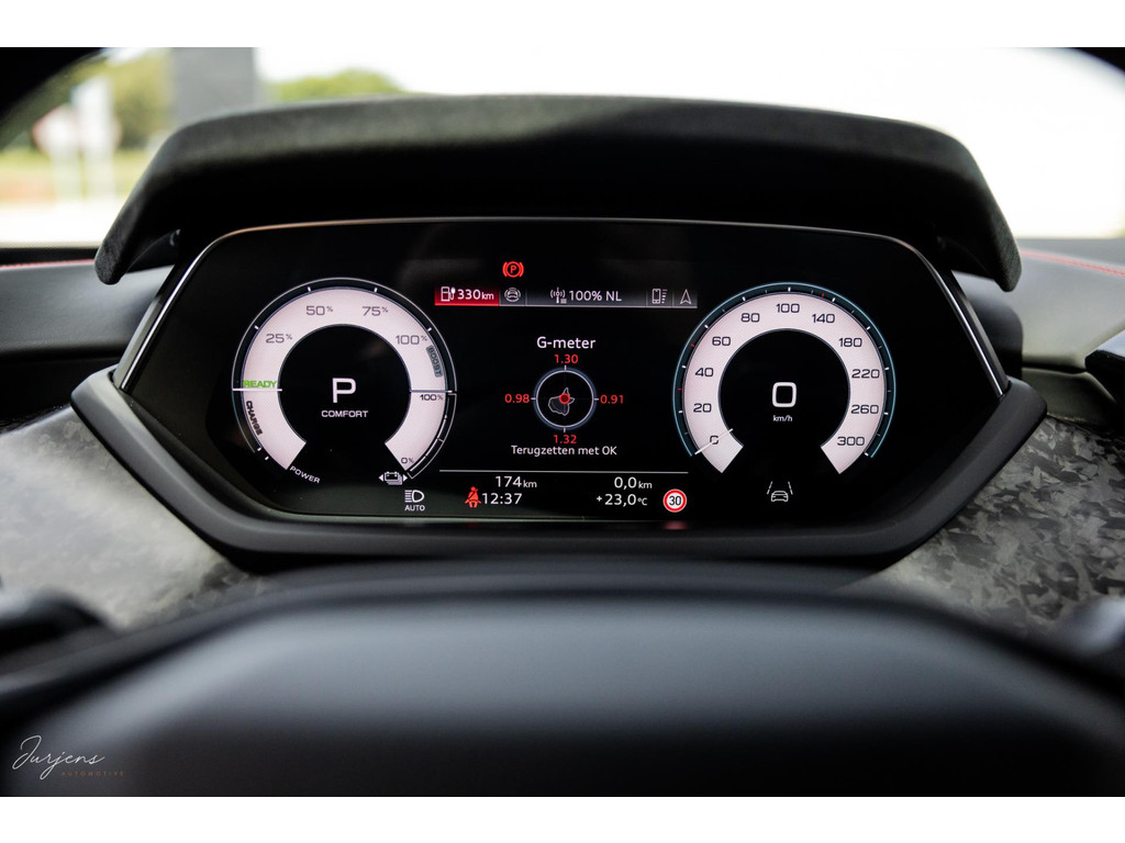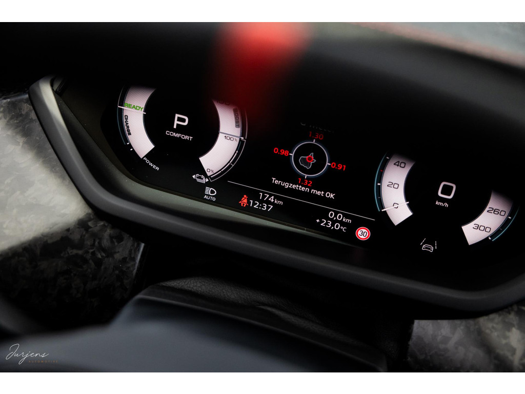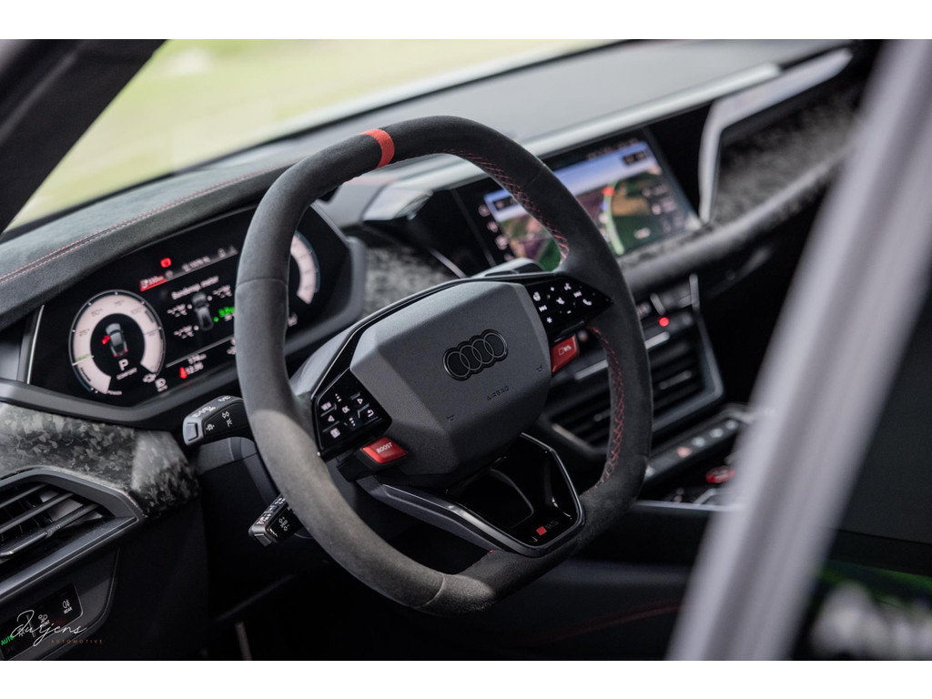 | Forged Carbon | Audi Exclusive | Keramisch remsysteem | Bang & Olufsen Premium | Fijn Nappa leder | RS Design Rood | Vierwielbesturing | Carbon dak | Head-up display | Massage | 4x Steolverwarming + stoelventilatie | Motorsound Sport Sound | Actief onderstel / luchtvering | LED Matrix | Camerasysteem Area View | Remote Parkeerassistent | Interieurvoorverwarming | Contour / Ambientverlichting Plus | Virtual Cockpit Plus | Akoestisch glas | 21” RS Design | Nimbusgrau Perleffekt | Origineel Nederlands | Nieuwstaat | Zeer zeldzaam | BTW auto | 2025 | 174 km | EUR 159.900 incl. BTW |