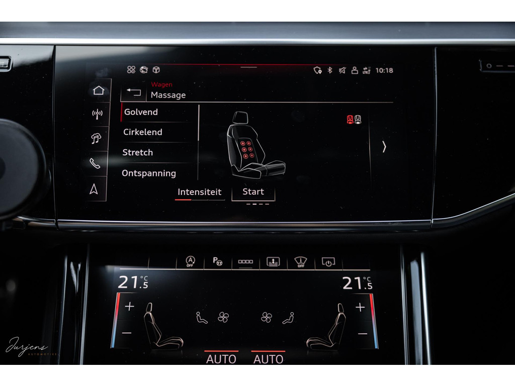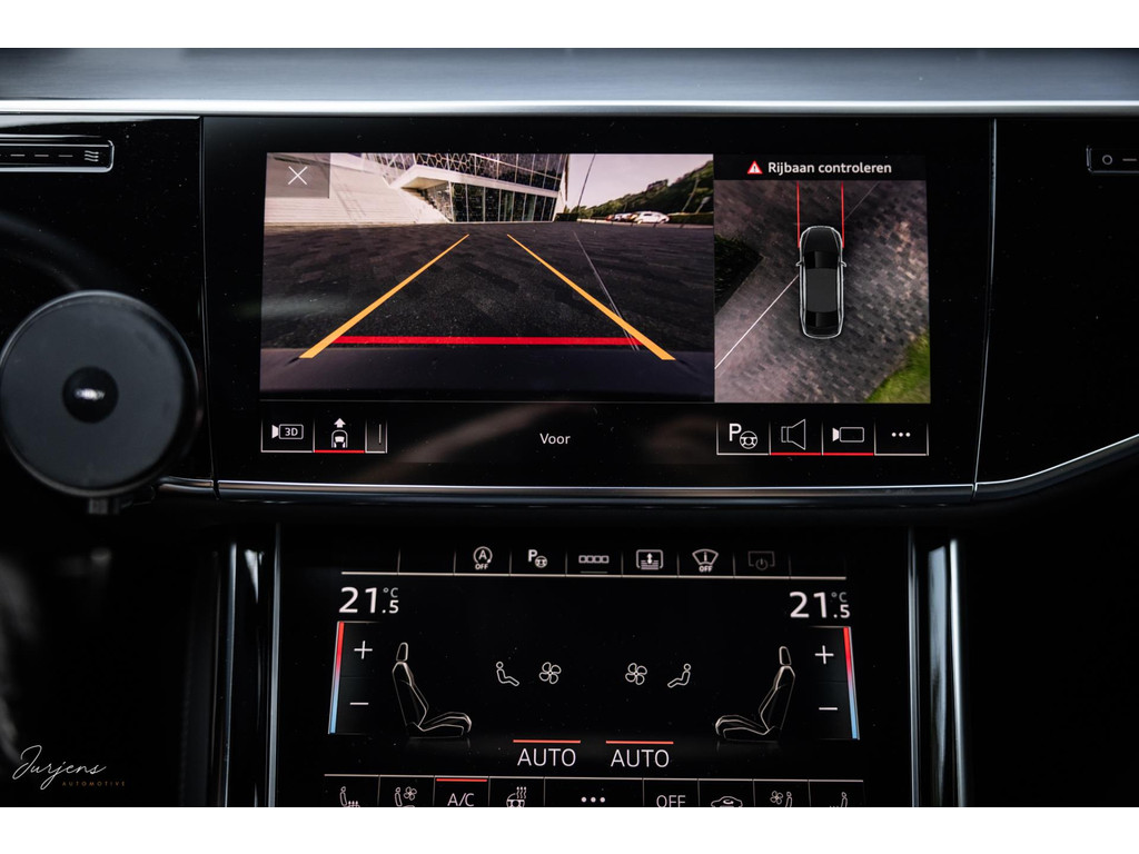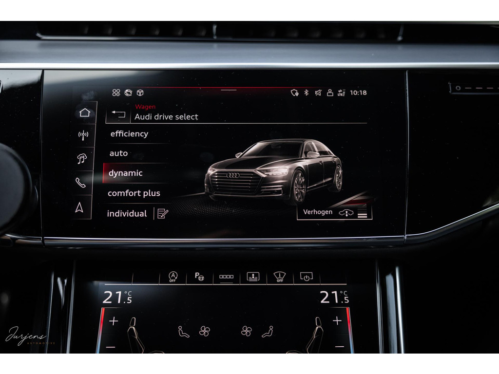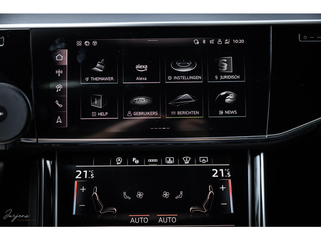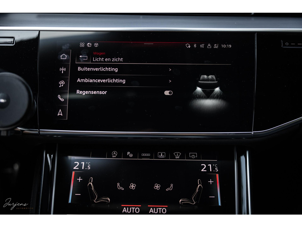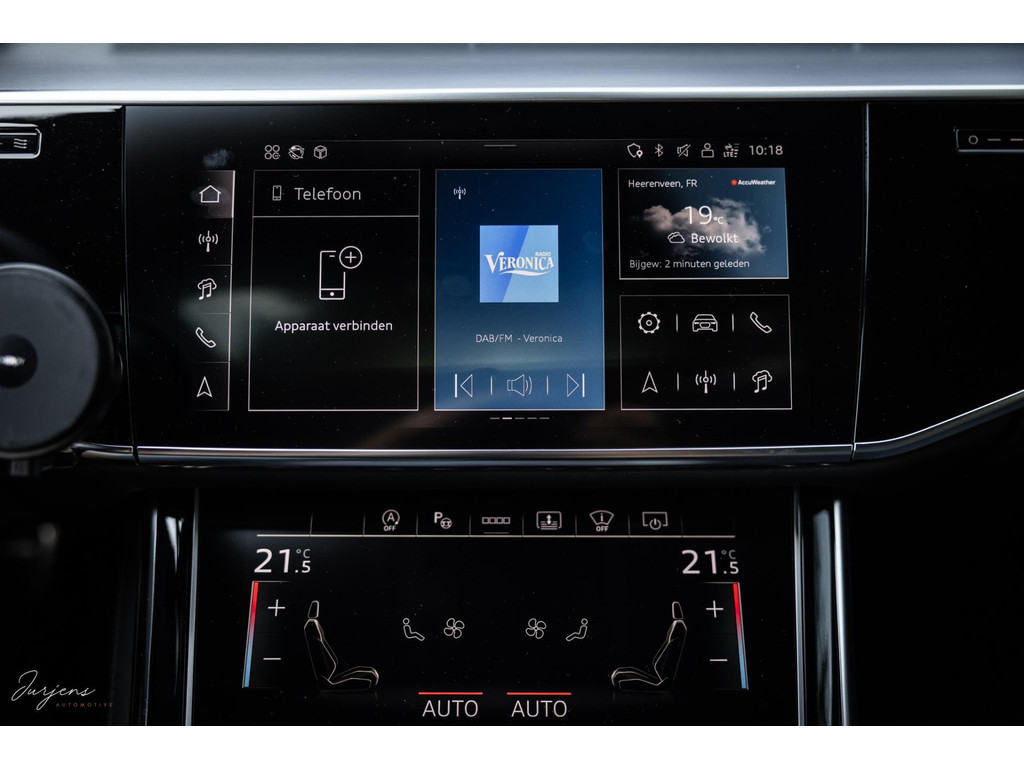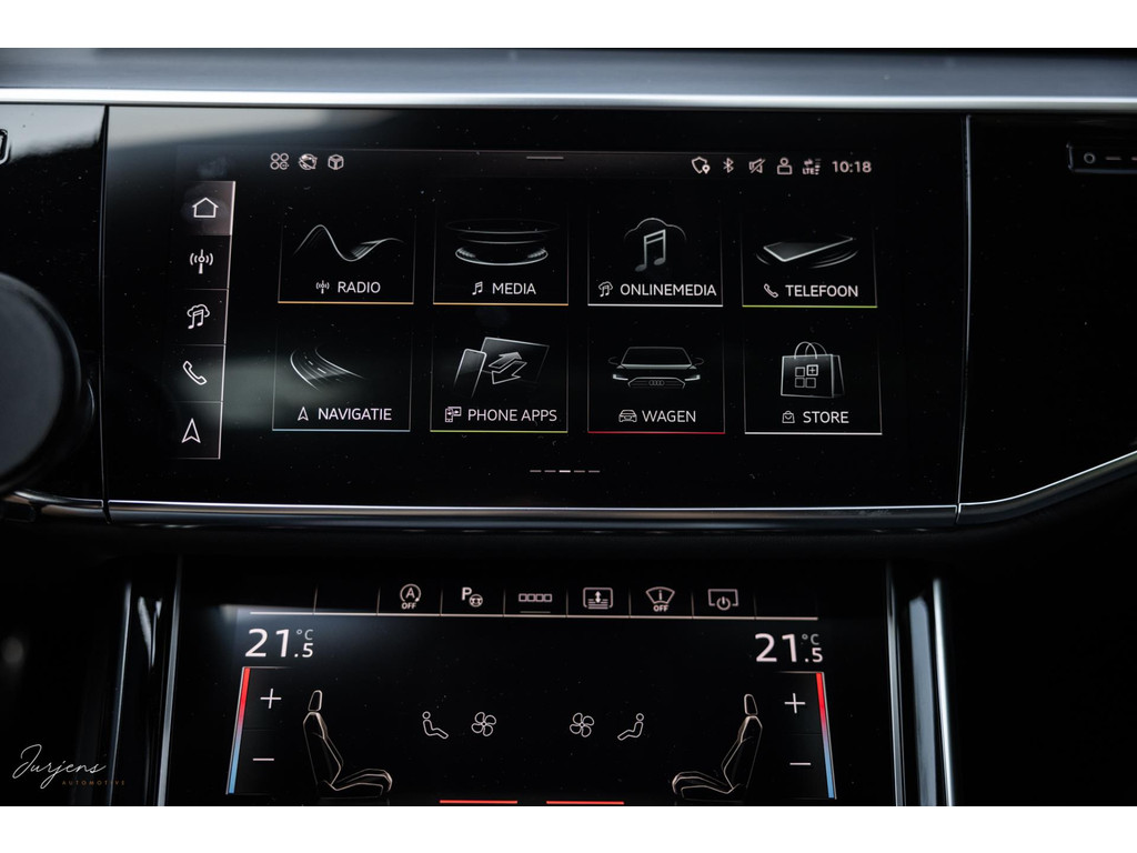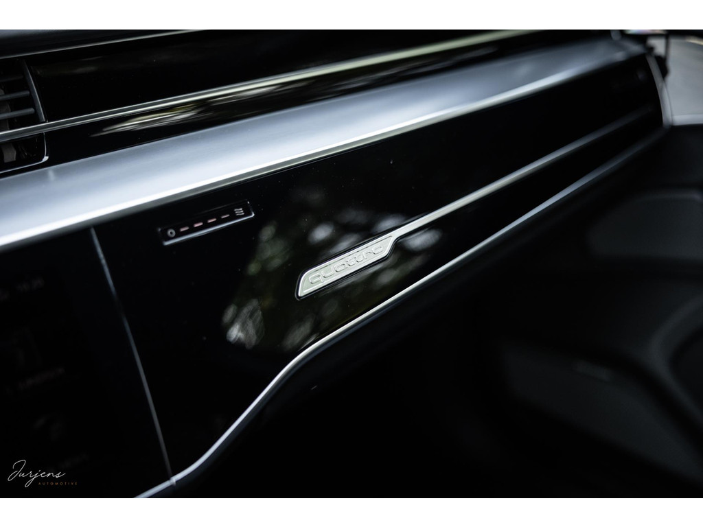 Voorin beschik je over de inmiddels bekende displays met haptische feedback. Werkelijk alle mogelijkheden die er af fabriek zijn werden gekozen. Van fraaie Area View camerabeelden tot de bediening van het Bang & Olufsen audiosysteem. Uniek zijn de digitale Matrix LED koplampen met ongeveer 1,3 miljoen spiegeltjes is de lichtopbrengst bizar en met de techniek die er achter schuil gaat rijd je vrijwel altijd met de maximale verlichting zonder dat overige weggebruikers er hinder van ondervinden. Deze koplampen gaan samen met de prachtige Matrix achterlichten met OLED techniek en Audi Signature. Het gaat te ver om iedere optie te benoemen, maar verdiep je in de talloze foto’s en de optielijst die we op wens kunnen aanleveren.