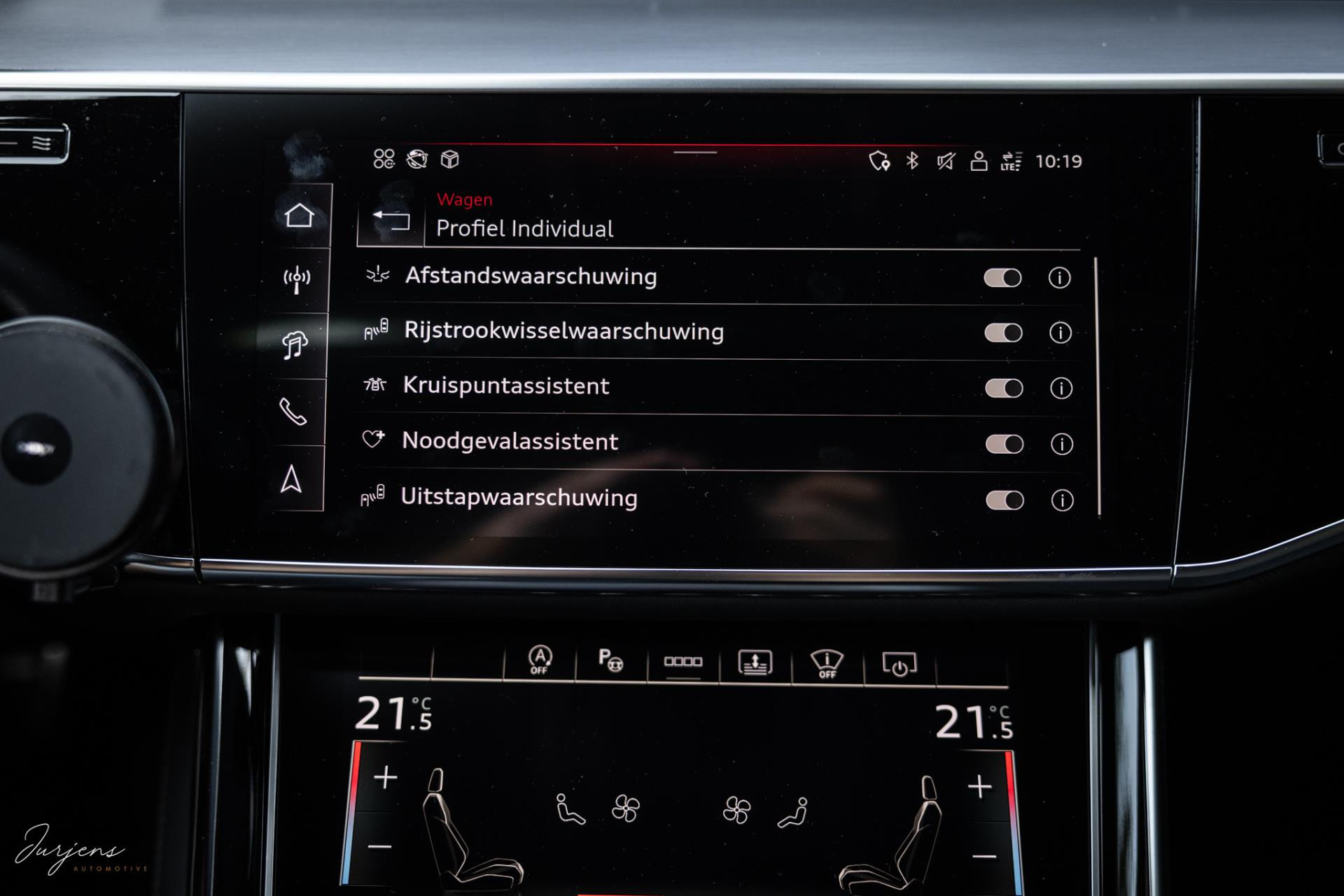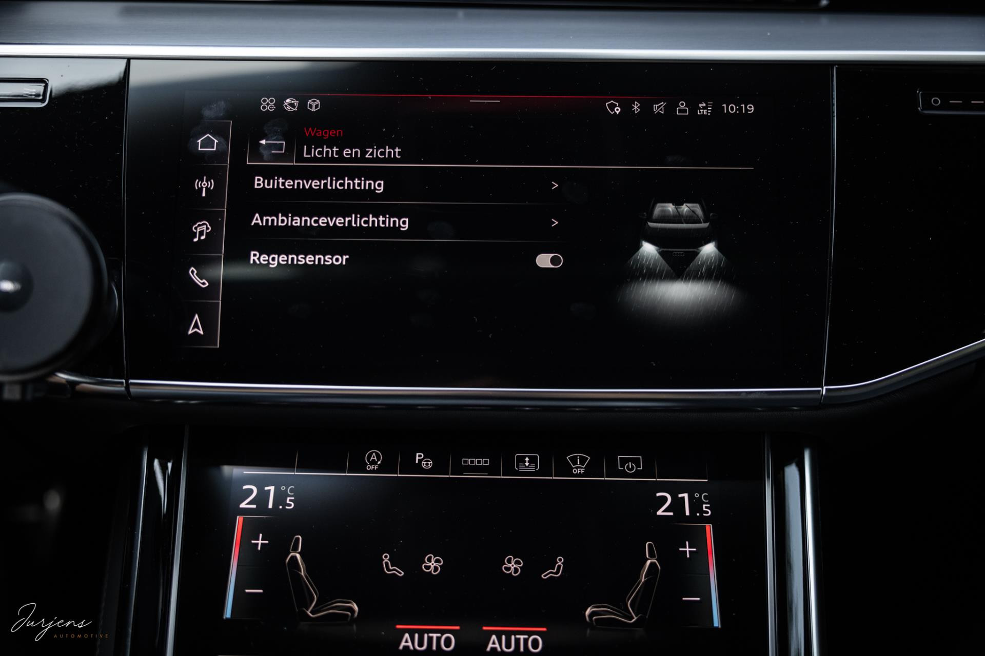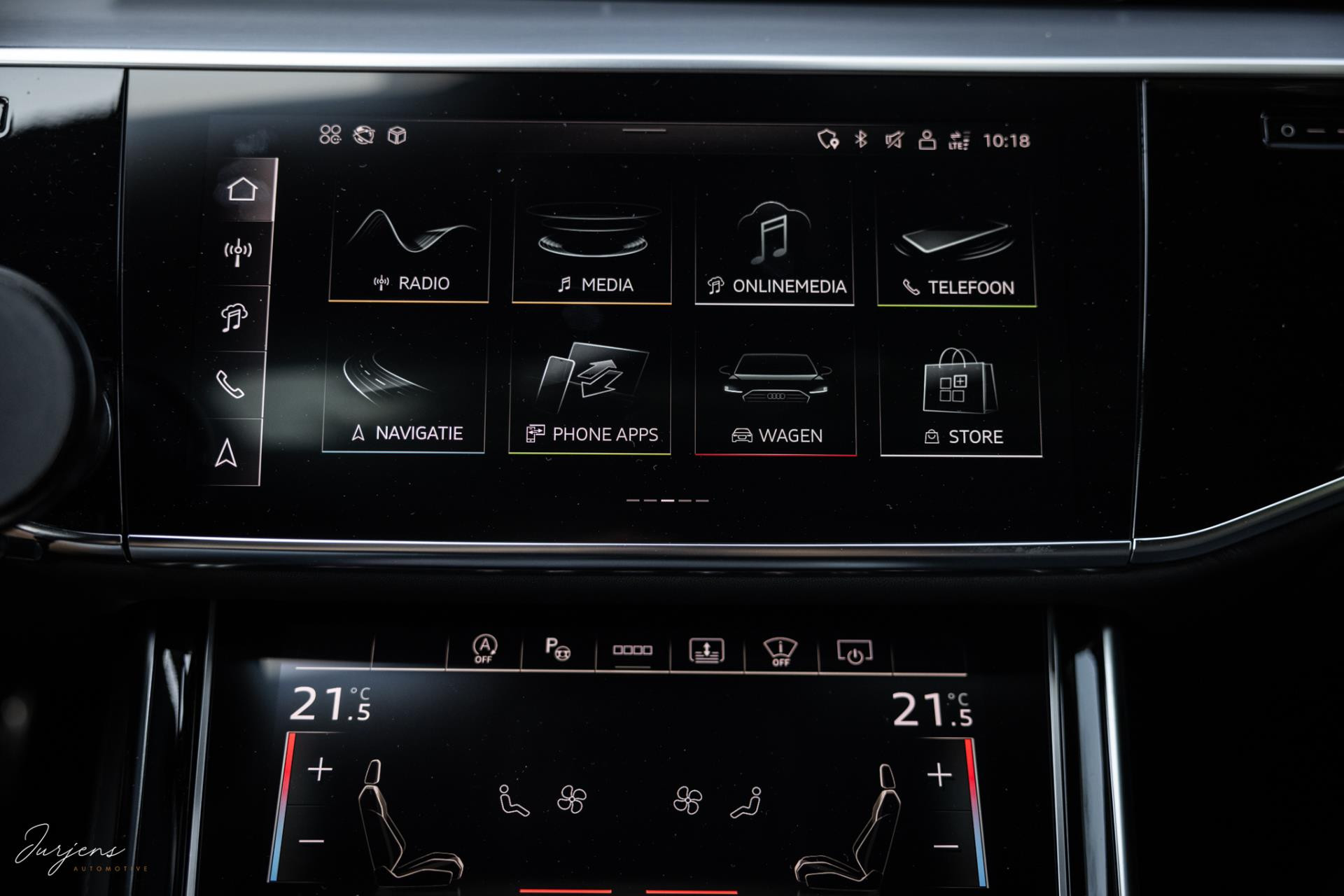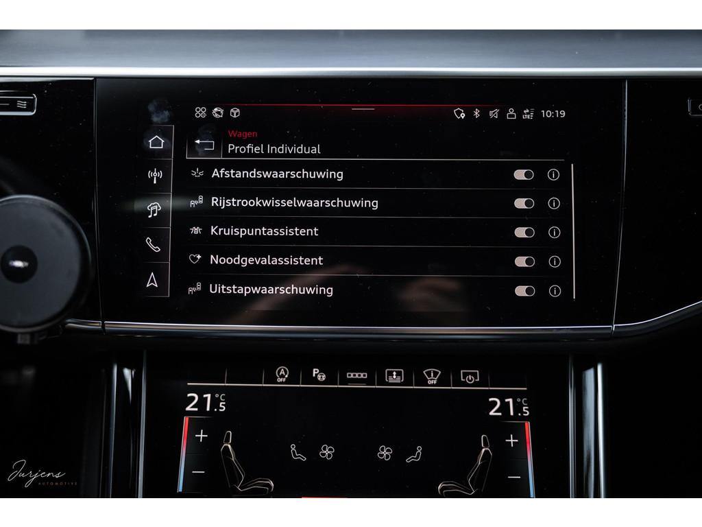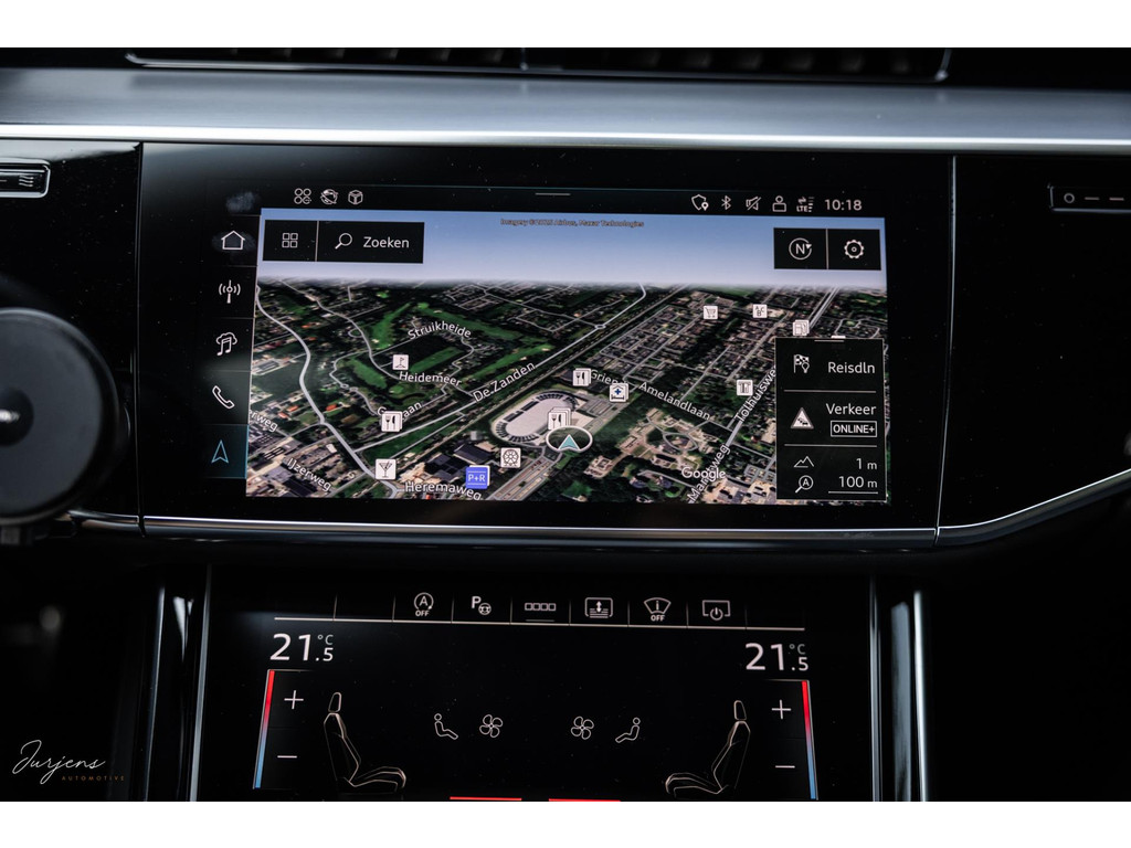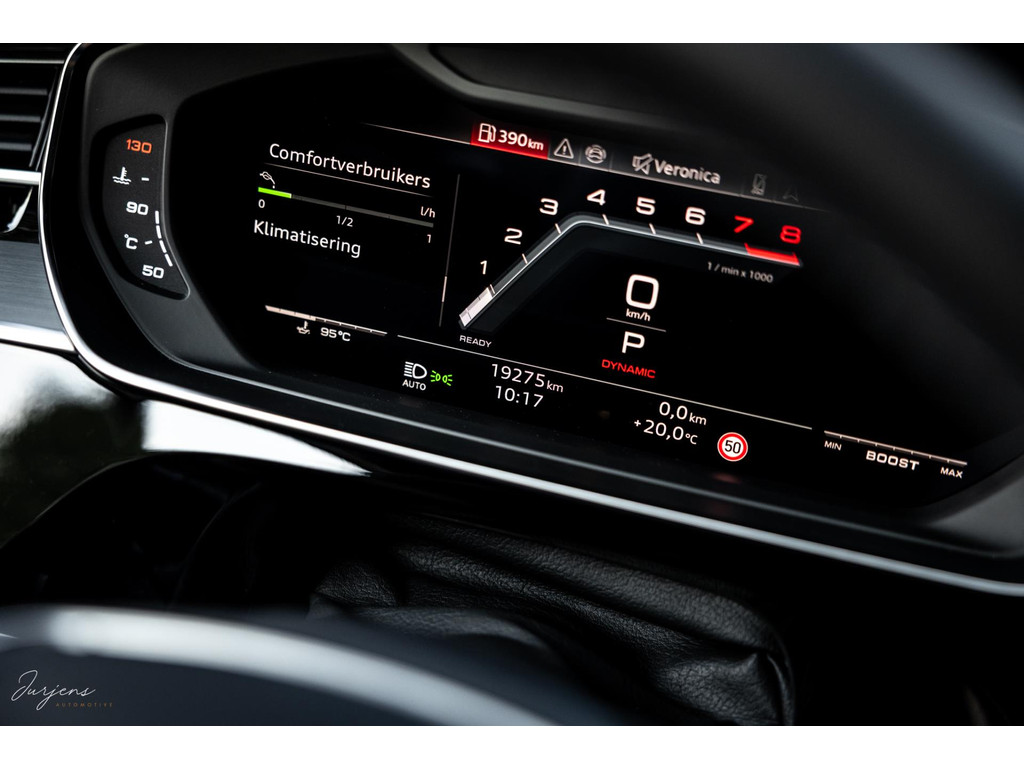 Voorin beschik je over de inmiddels bekende displays met haptische feedback. Werkelijk alle mogelijkheden die er af fabriek zijn werden gekozen. Van fraaie Area View camerabeelden tot de bediening van het Bang & Olufsen audiosysteem. Uniek zijn de digitale Matrix LED koplampen met ongeveer 1,3 miljoen spiegeltjes is de lichtopbrengst bizar en met de techniek die er achter schuil gaat rijd je vrijwel altijd met de maximale verlichting zonder dat overige weggebruikers er hinder van ondervinden. Deze koplampen gaan samen met de prachtige Matrix achterlichten met OLED techniek en Audi Signature. Het gaat te ver om iedere optie te benoemen, maar verdiep je in de talloze foto’s en de optielijst die we op wens kunnen aanleveren.