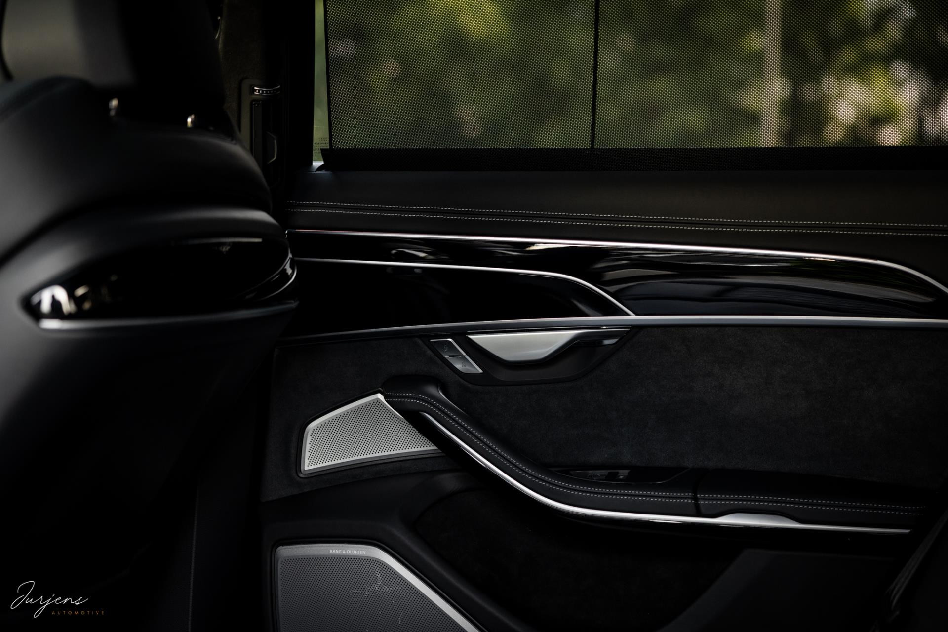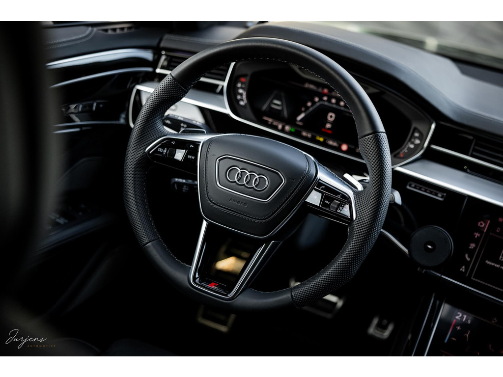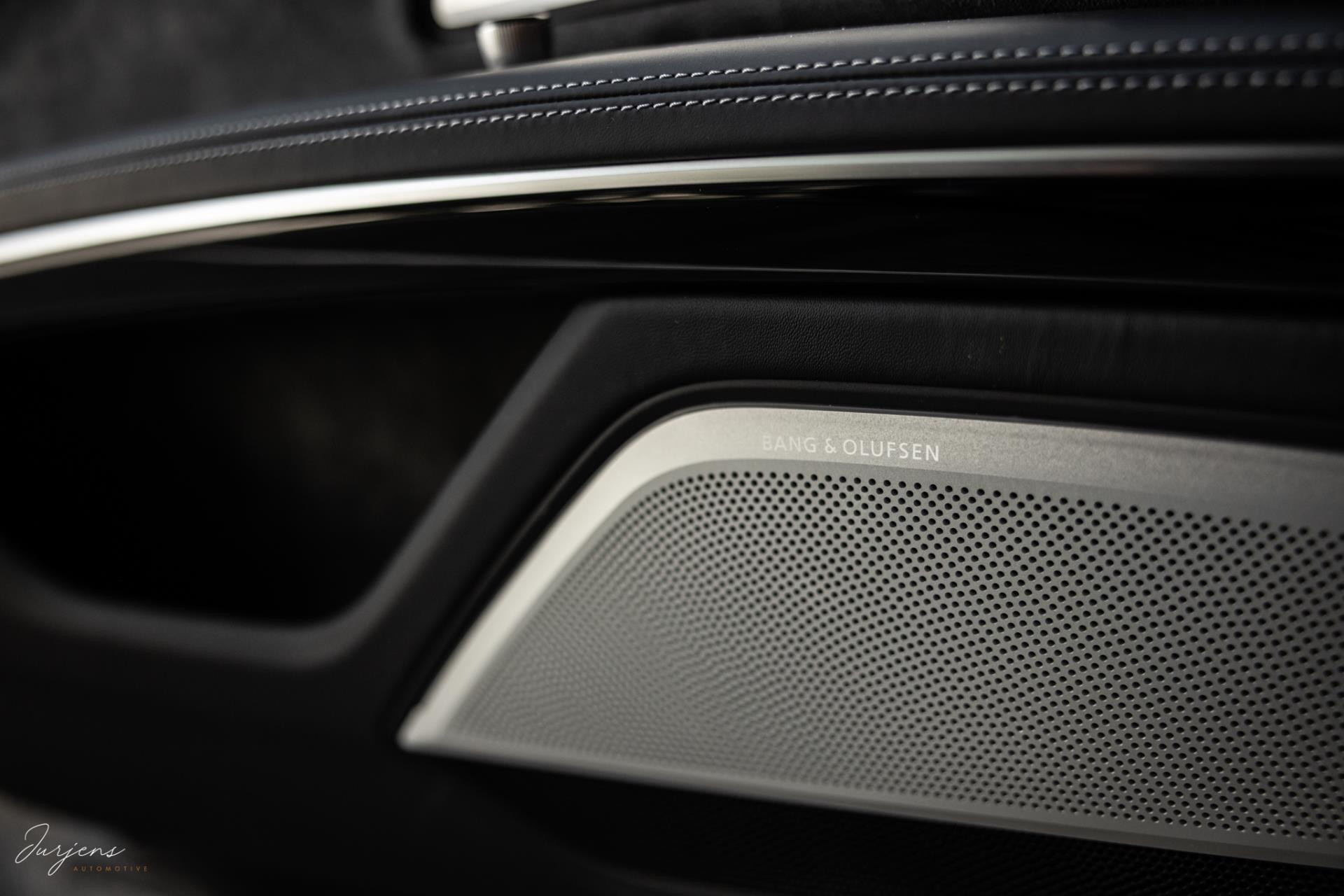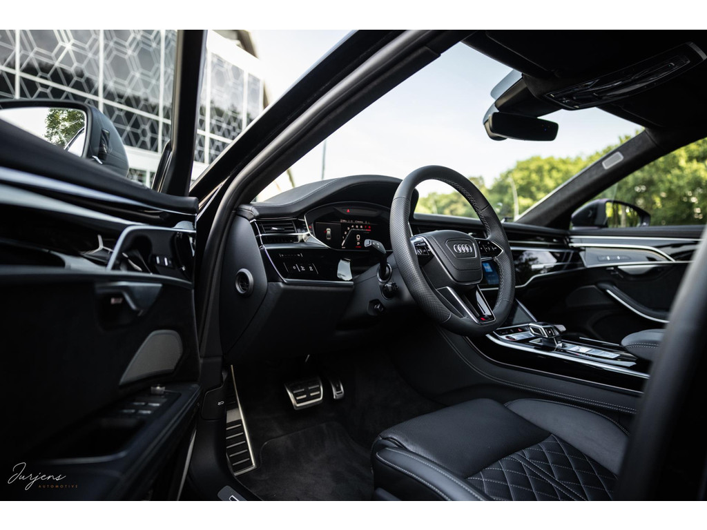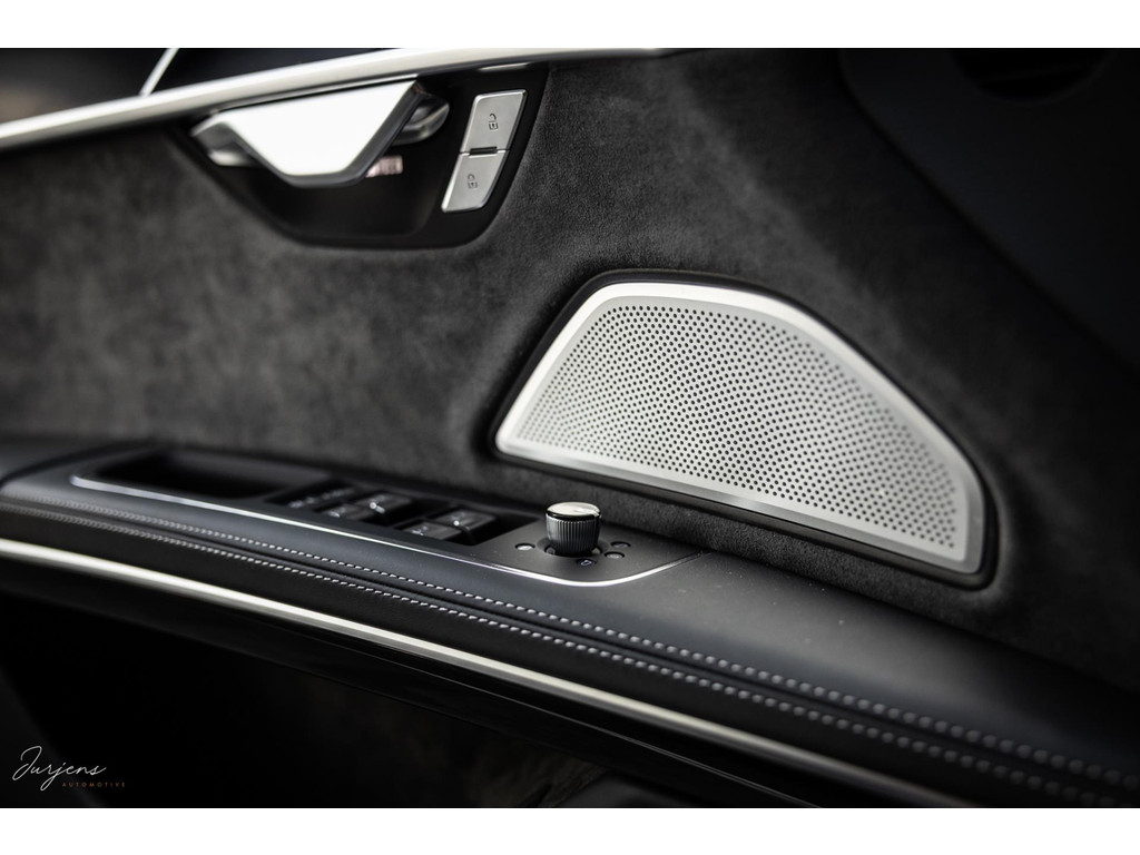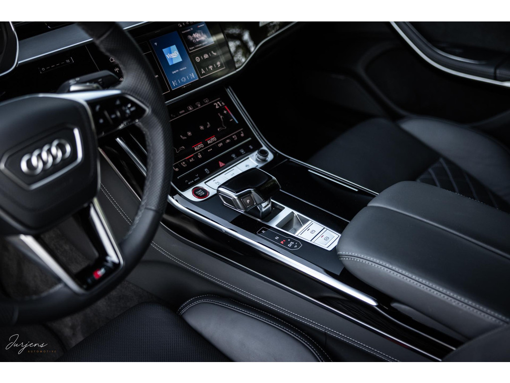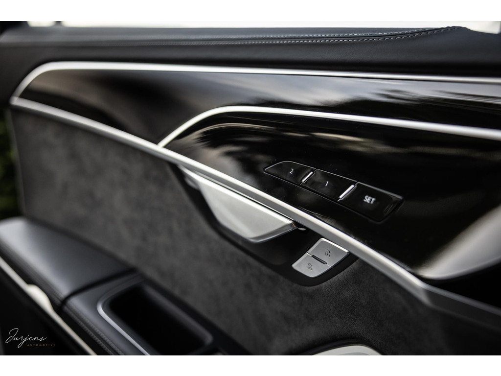 De S8 is af-fabriek reeds prachtig samengesteld met de exterieurkleur – Mythosschwarz metallic – in combinatie met de zwarte accenten van de sierlijsten, spiegels, grill en natuurlijk de gigantische custom made forged 22” velgen. Erachter het broodnodige keramisch remsysteem. Het interieur werd voorzien van zwart Nappa leder met dimanond stitching. De hemelbekleding is uiteraard uitgevoerd in Individual alcantara in antraciet. Qua uitrusting is deze S8 voorzien van vrijwel alles dat mogelijk is. Enkele high lights zijn het keramisch remsysteem dat je zelden ziet op een S8, de vierwielbesturing, alle mogelijke rijassistenten, volledige Nappa leder, stoelmassage en noise cancelling. Niet te vergeten het fenomenale Bang & Olufsen Advanced audiosysteem. Check ook de catalogusprijs van specifiek dit exemplaar. De catalogusprijs is maar liefst EUR 301.877.