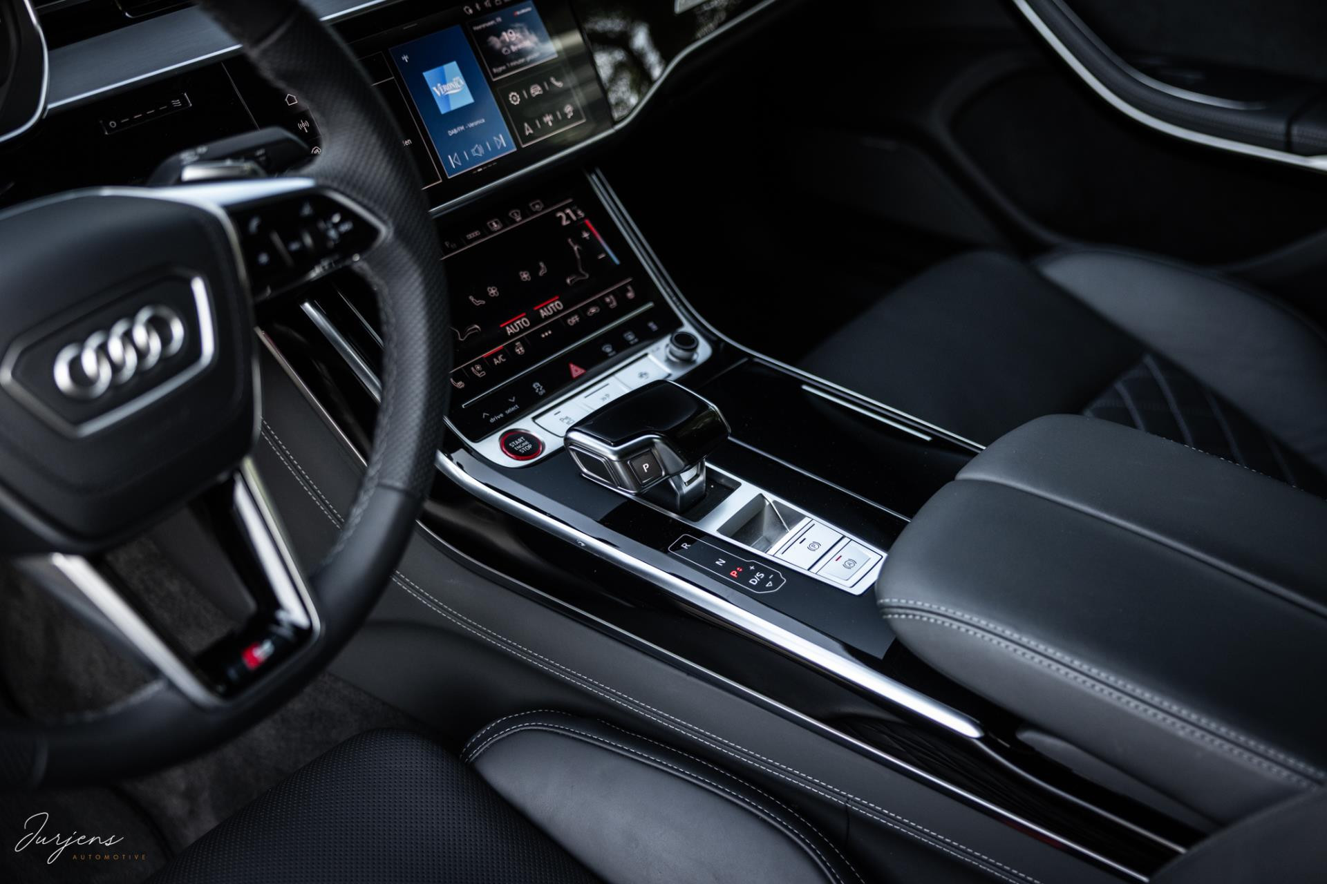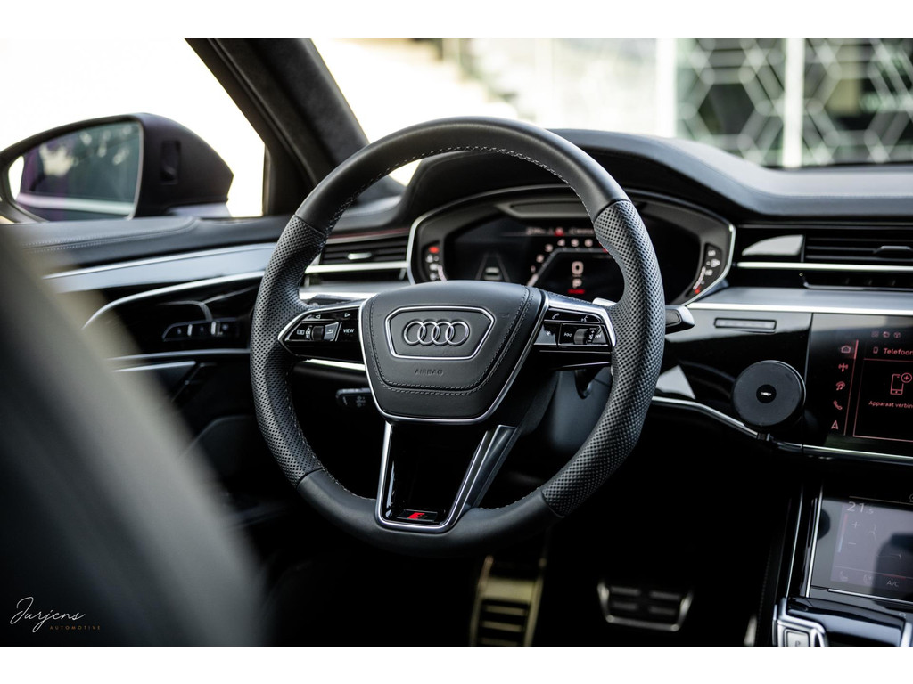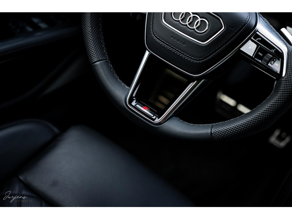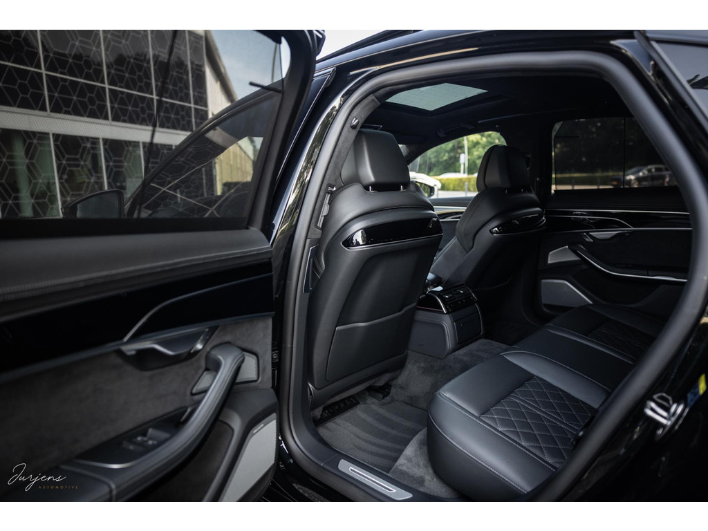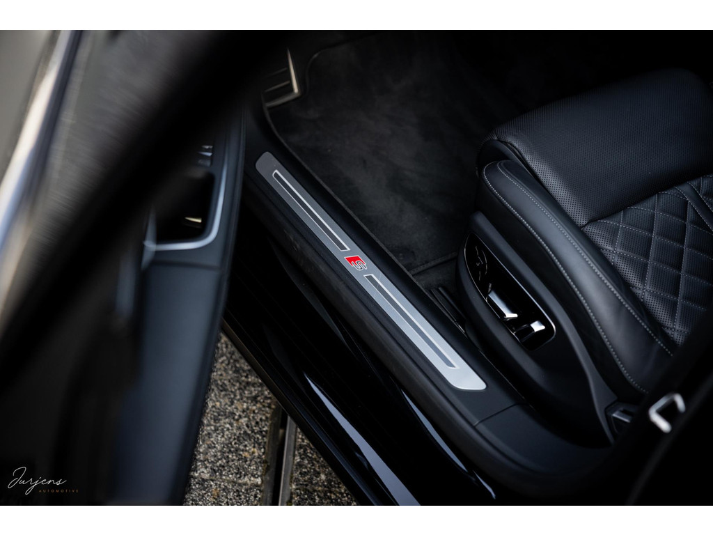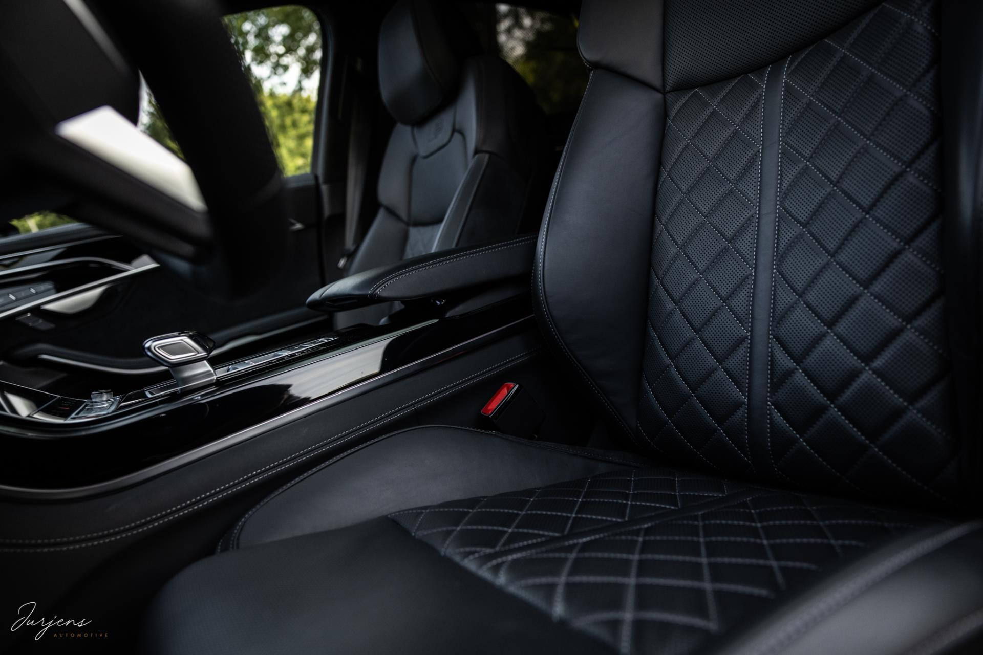 De S8 is af-fabriek reeds prachtig samengesteld met de exterieurkleur – Mythosschwarz metallic – in combinatie met de zwarte accenten van de sierlijsten, spiegels, grill en natuurlijk de gigantische custom made forged 22” velgen. Erachter het broodnodige keramisch remsysteem. Het interieur werd voorzien van zwart Nappa leder met dimanond stitching. De hemelbekleding is uiteraard uitgevoerd in Individual alcantara in antraciet. Qua uitrusting is deze S8 voorzien van vrijwel alles dat mogelijk is. Enkele high lights zijn het keramisch remsysteem dat je zelden ziet op een S8, de vierwielbesturing, alle mogelijke rijassistenten, volledige Nappa leder, stoelmassage en noise cancelling. Niet te vergeten het fenomenale Bang & Olufsen Advanced audiosysteem. Check ook de catalogusprijs van specifiek dit exemplaar. De catalogusprijs is maar liefst EUR 301.877.