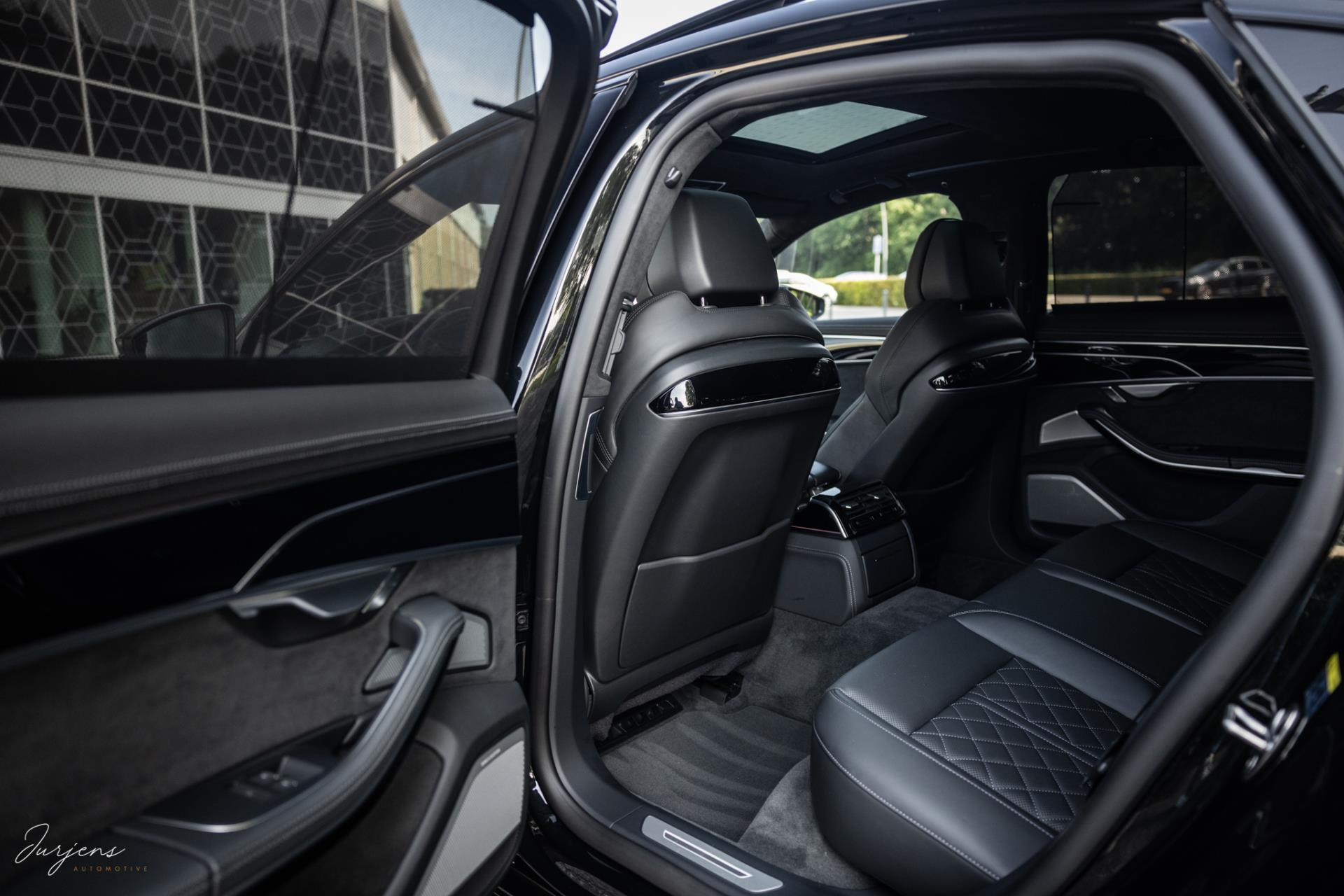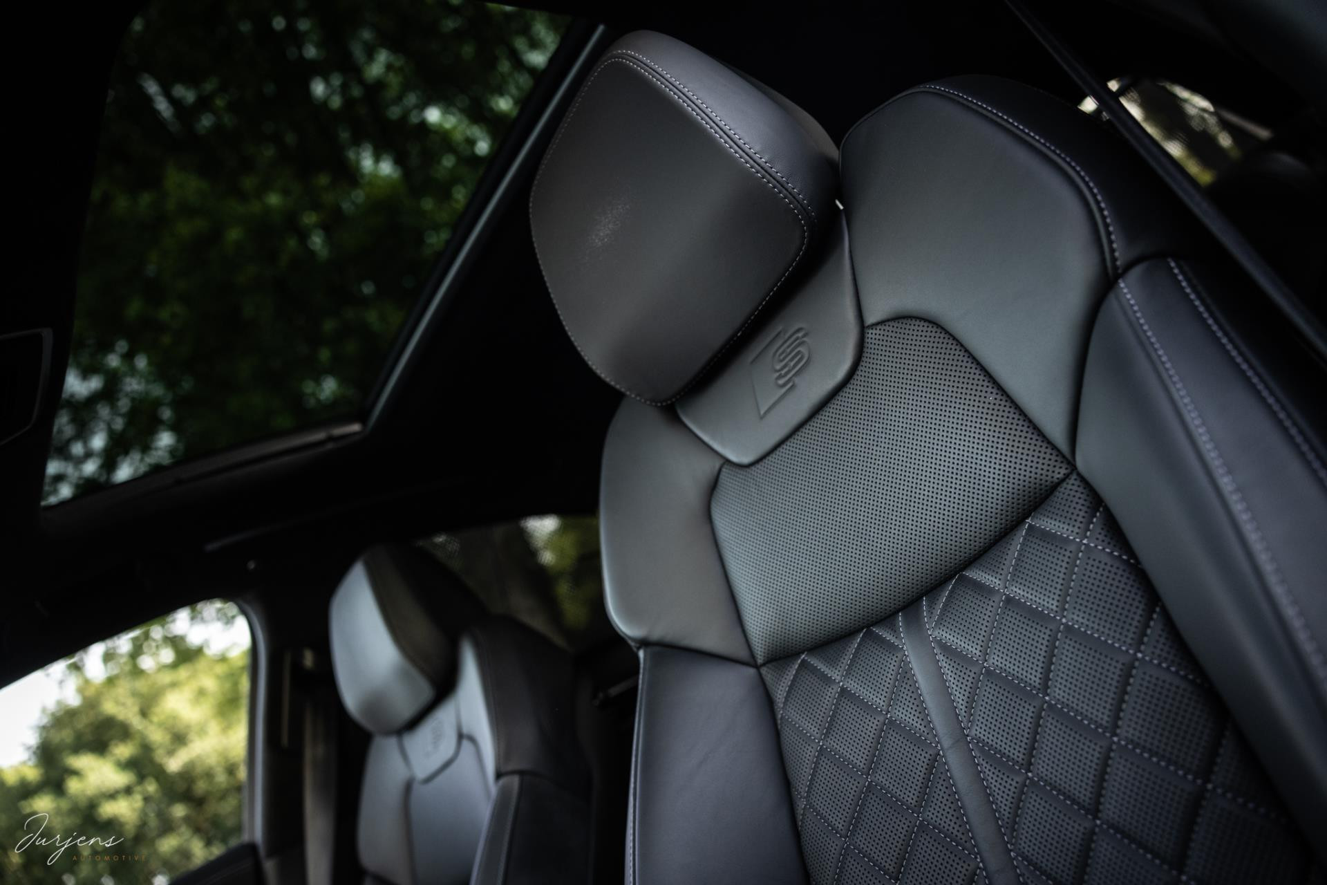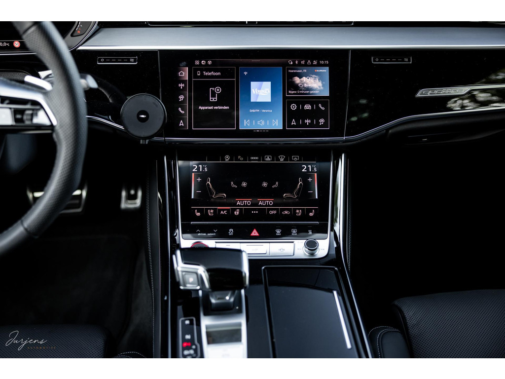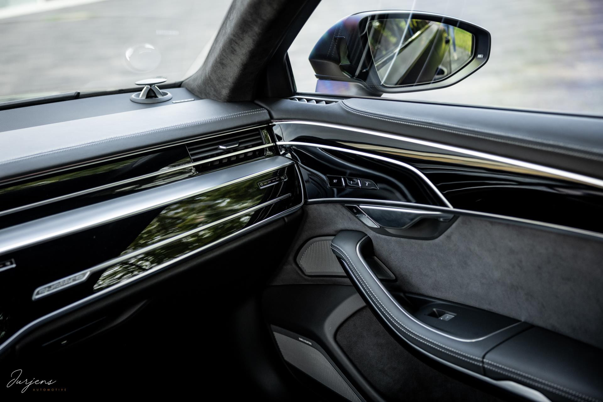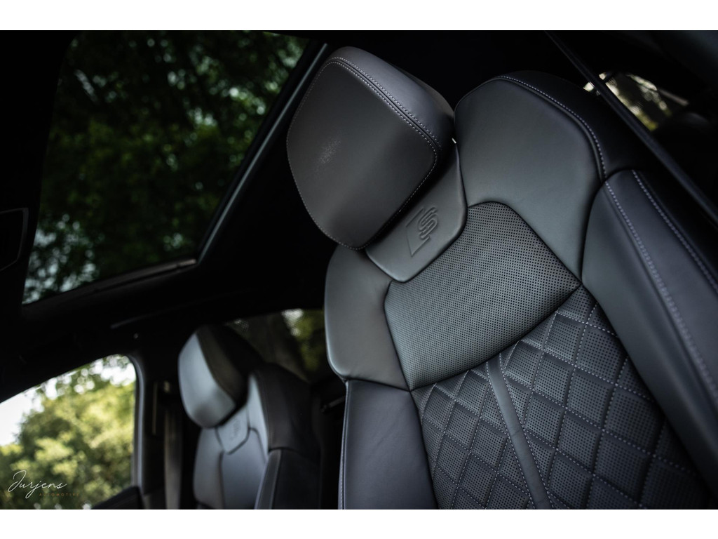 De S8 is af-fabriek reeds prachtig samengesteld met de exterieurkleur – Mythosschwarz metallic – in combinatie met de zwarte accenten van de sierlijsten, spiegels, grill en natuurlijk de gigantische custom made forged 22” velgen. Erachter het broodnodige keramisch remsysteem. Het interieur werd voorzien van zwart Nappa leder met dimanond stitching. De hemelbekleding is uiteraard uitgevoerd in Individual alcantara in antraciet. Qua uitrusting is deze S8 voorzien van vrijwel alles dat mogelijk is. Enkele high lights zijn het keramisch remsysteem dat je zelden ziet op een S8, de vierwielbesturing, alle mogelijke rijassistenten, volledige Nappa leder, stoelmassage en noise cancelling. Niet te vergeten het fenomenale Bang & Olufsen Advanced audiosysteem. Check ook de catalogusprijs van specifiek dit exemplaar. De catalogusprijs is maar liefst EUR 301.877.