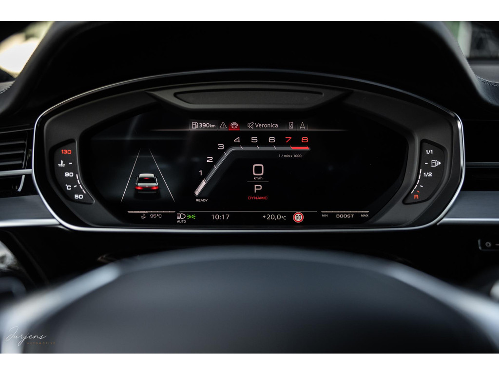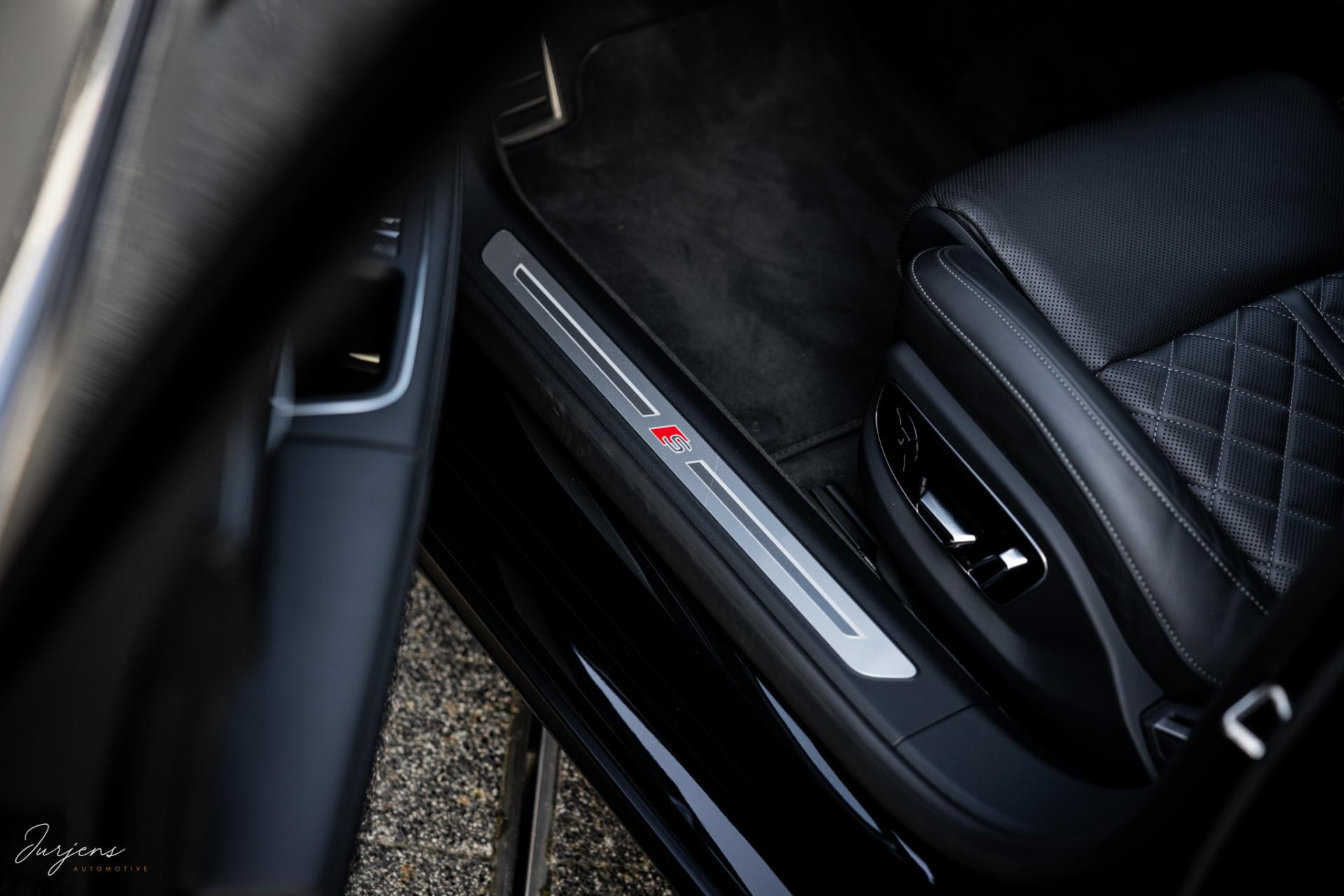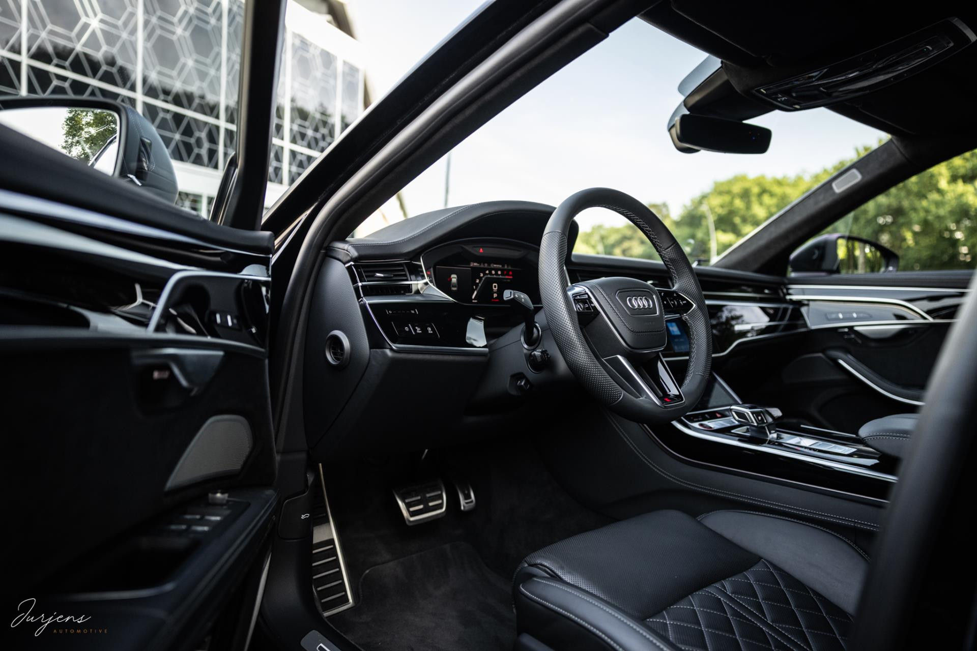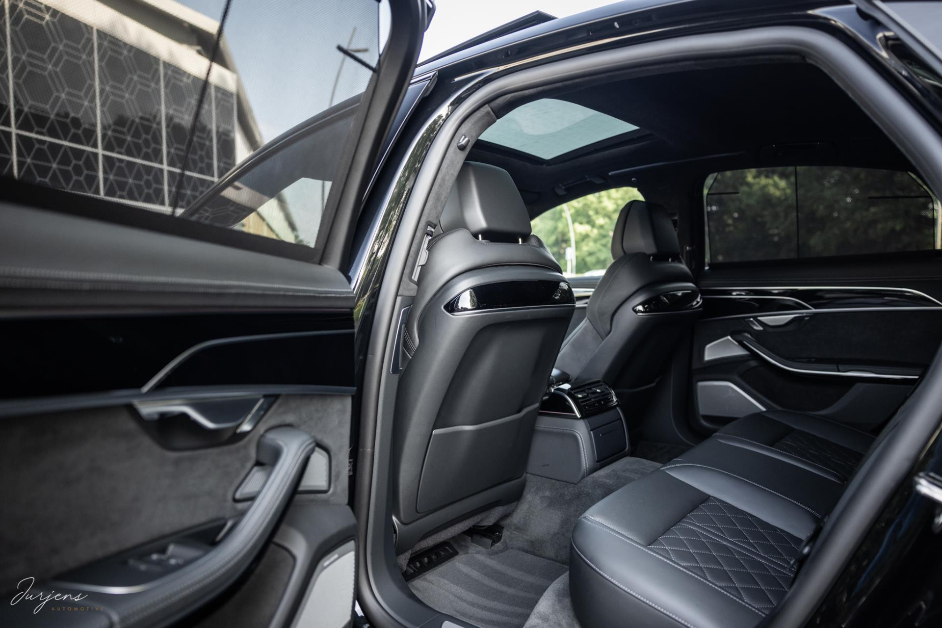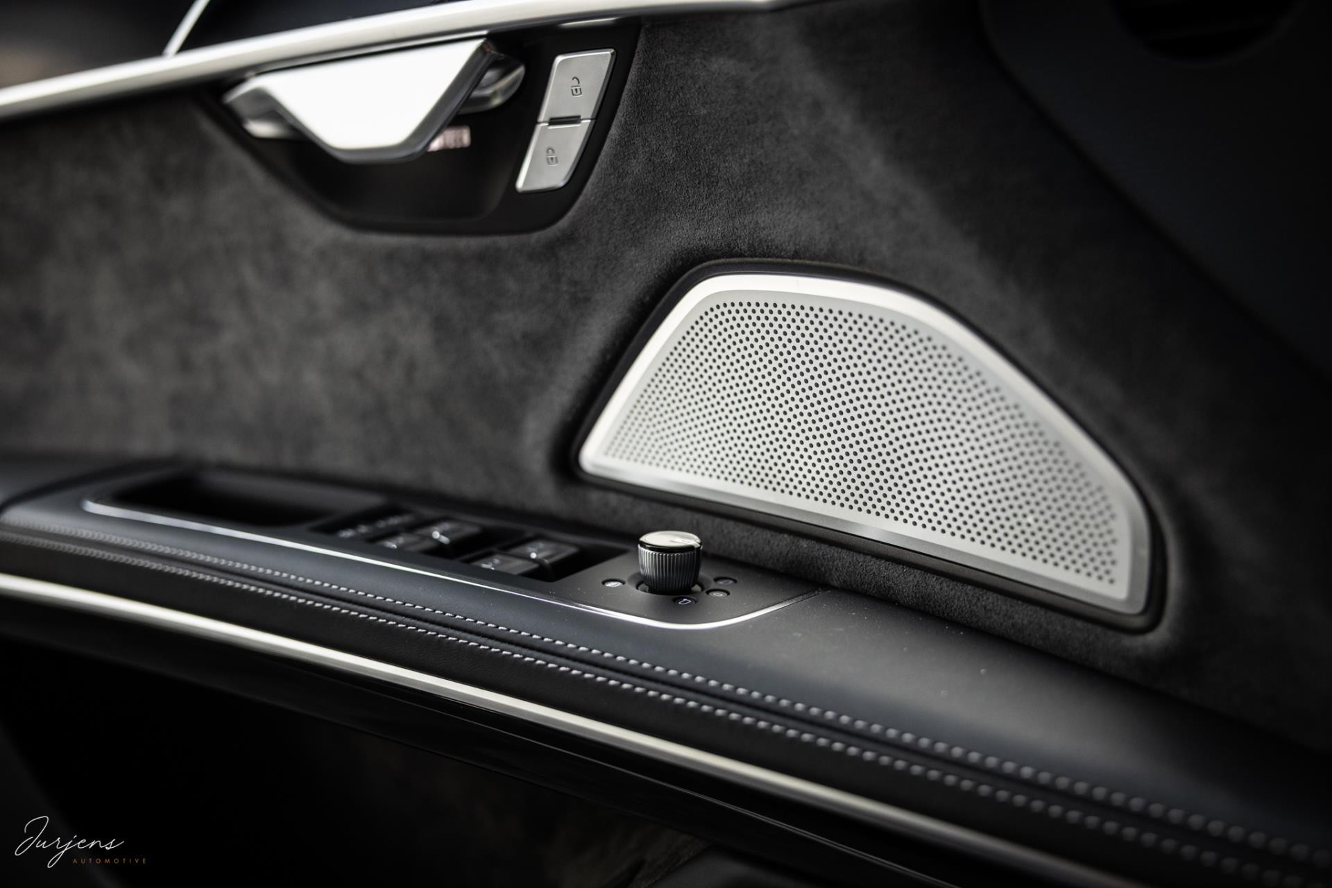 De S8 is af-fabriek reeds prachtig samengesteld met de exterieurkleur – Mythosschwarz metallic – in combinatie met de zwarte accenten van de sierlijsten, spiegels, grill en natuurlijk de gigantische custom made forged 22” velgen. Erachter het broodnodige keramisch remsysteem. Het interieur werd voorzien van zwart Nappa leder met dimanond stitching. De hemelbekleding is uiteraard uitgevoerd in Individual alcantara in antraciet. Qua uitrusting is deze S8 voorzien van vrijwel alles dat mogelijk is. Enkele high lights zijn het keramisch remsysteem dat je zelden ziet op een S8, de vierwielbesturing, alle mogelijke rijassistenten, volledige Nappa leder, stoelmassage en noise cancelling. Niet te vergeten het fenomenale Bang & Olufsen Advanced audiosysteem. Check ook de catalogusprijs van specifiek dit exemplaar. De catalogusprijs is maar liefst EUR 301.877.