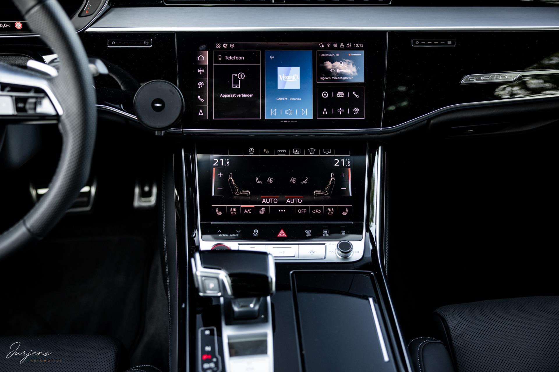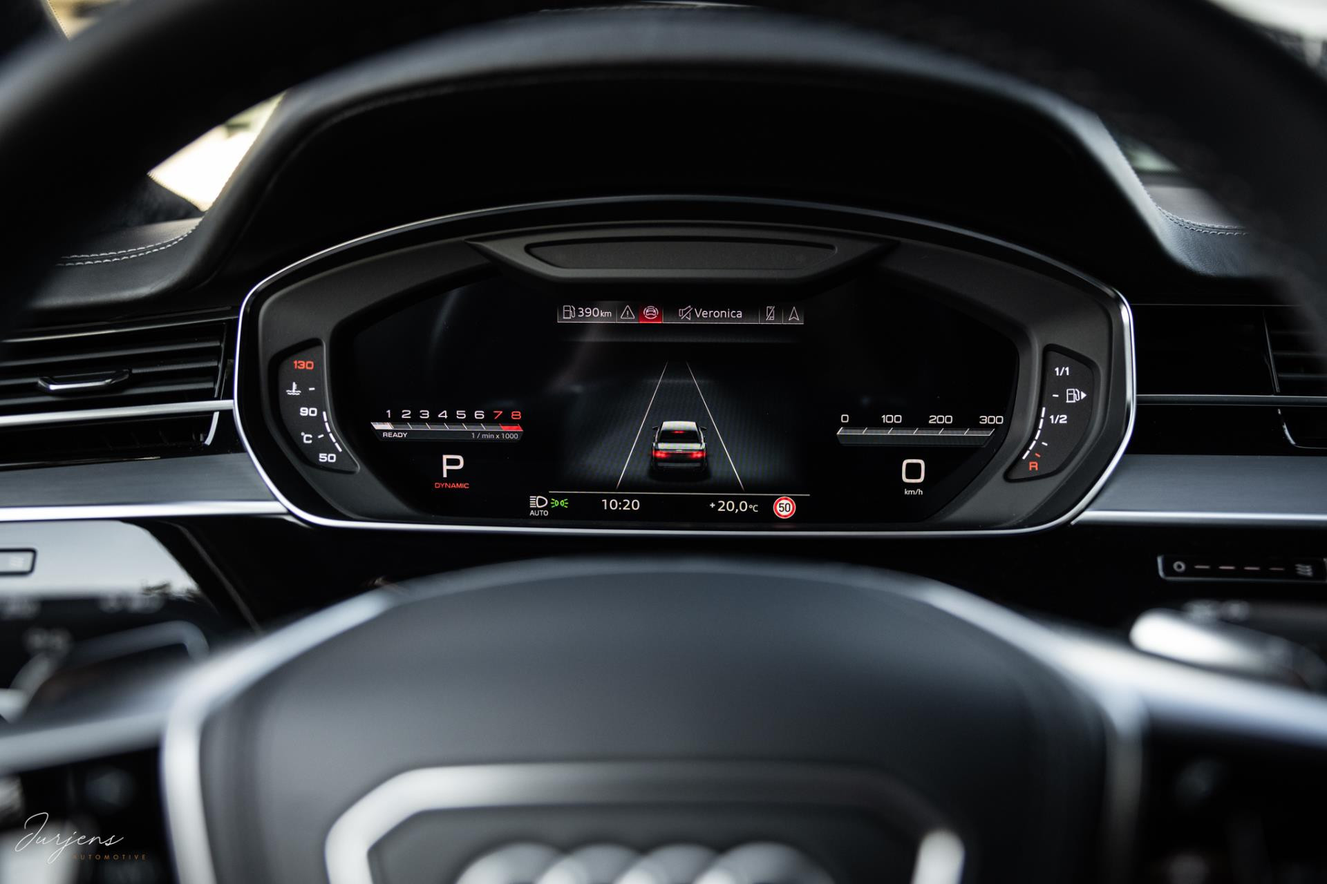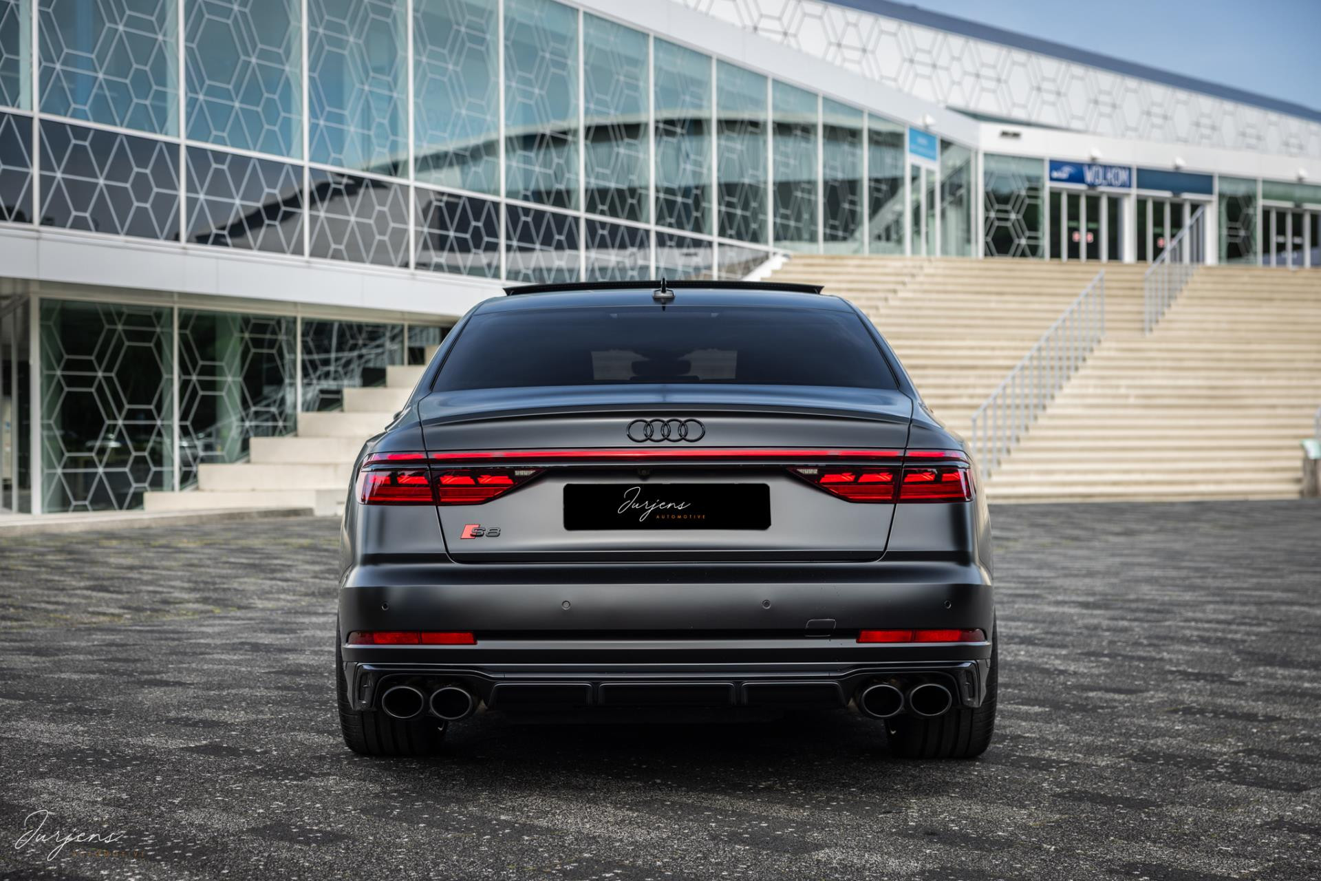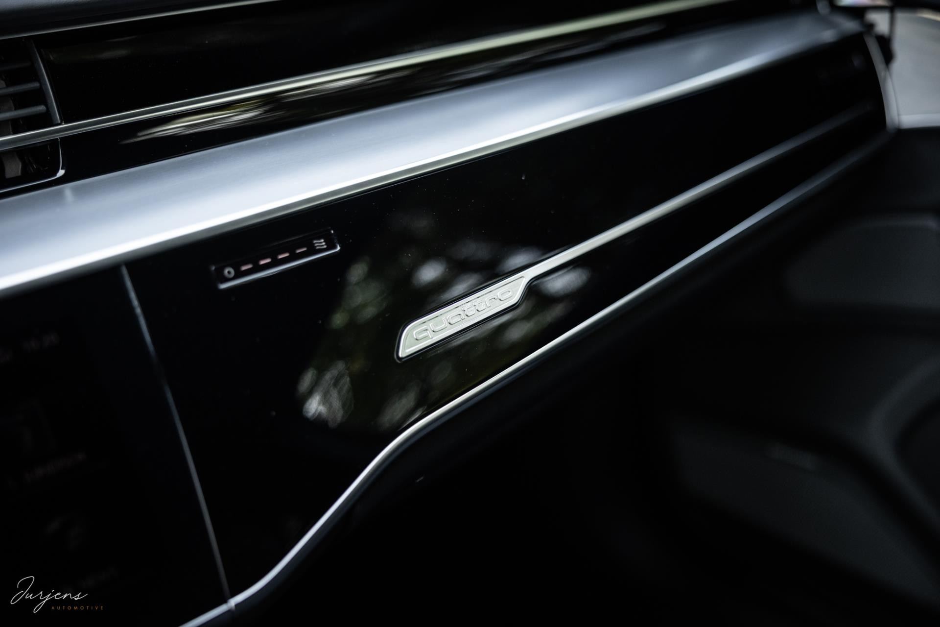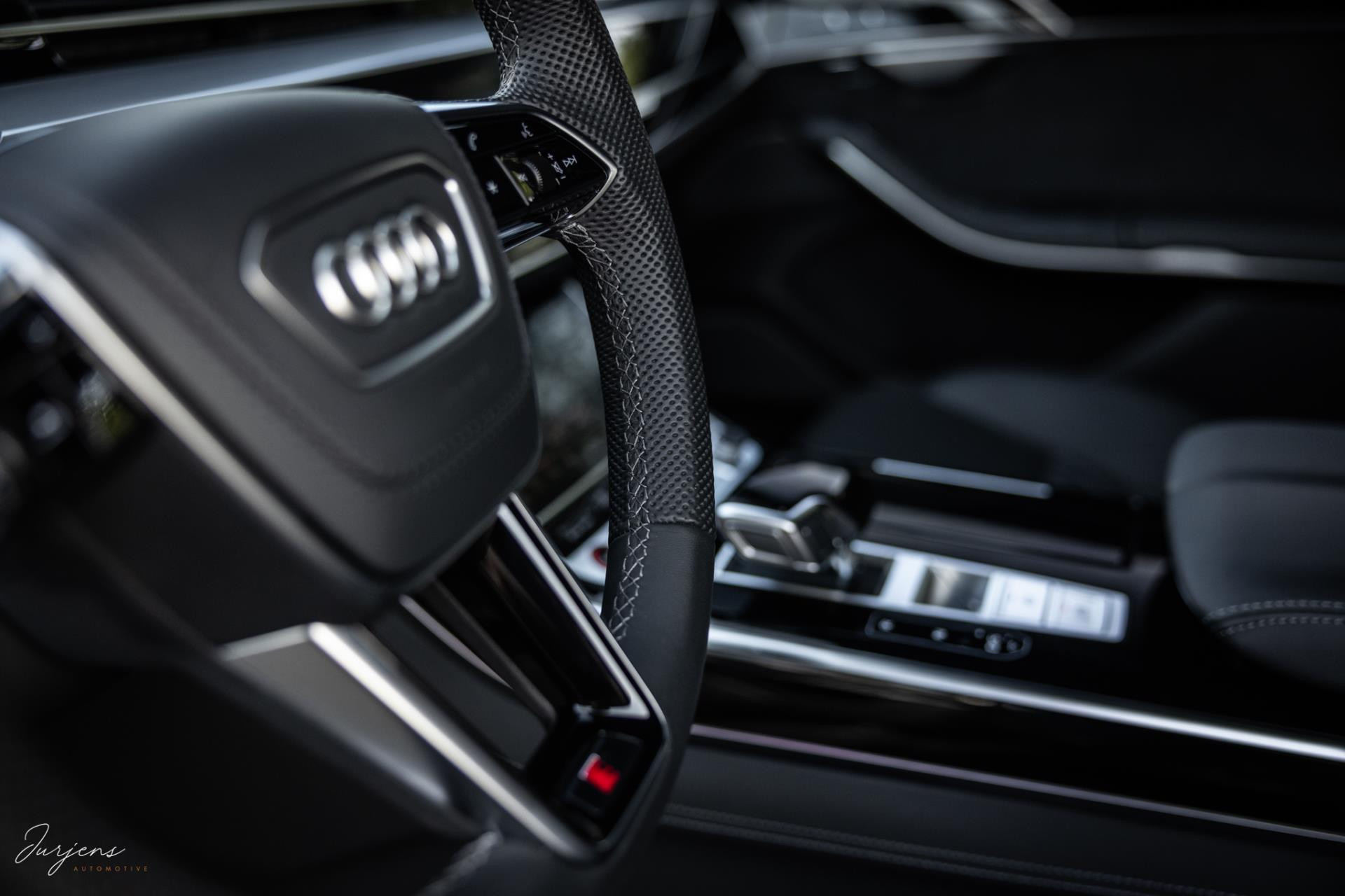 De S8 is af-fabriek reeds prachtig samengesteld met de exterieurkleur – Mythosschwarz metallic – in combinatie met de zwarte accenten van de sierlijsten, spiegels, grill en natuurlijk de gigantische custom made forged 22” velgen. Erachter het broodnodige keramisch remsysteem. Het interieur werd voorzien van zwart Nappa leder met dimanond stitching. De hemelbekleding is uiteraard uitgevoerd in Individual alcantara in antraciet. Qua uitrusting is deze S8 voorzien van vrijwel alles dat mogelijk is. Enkele high lights zijn het keramisch remsysteem dat je zelden ziet op een S8, de vierwielbesturing, alle mogelijke rijassistenten, volledige Nappa leder, stoelmassage en noise cancelling. Niet te vergeten het fenomenale Bang & Olufsen Advanced audiosysteem. Check ook de catalogusprijs van specifiek dit exemplaar. De catalogusprijs is maar liefst EUR 301.877.