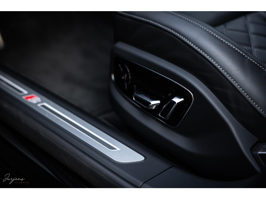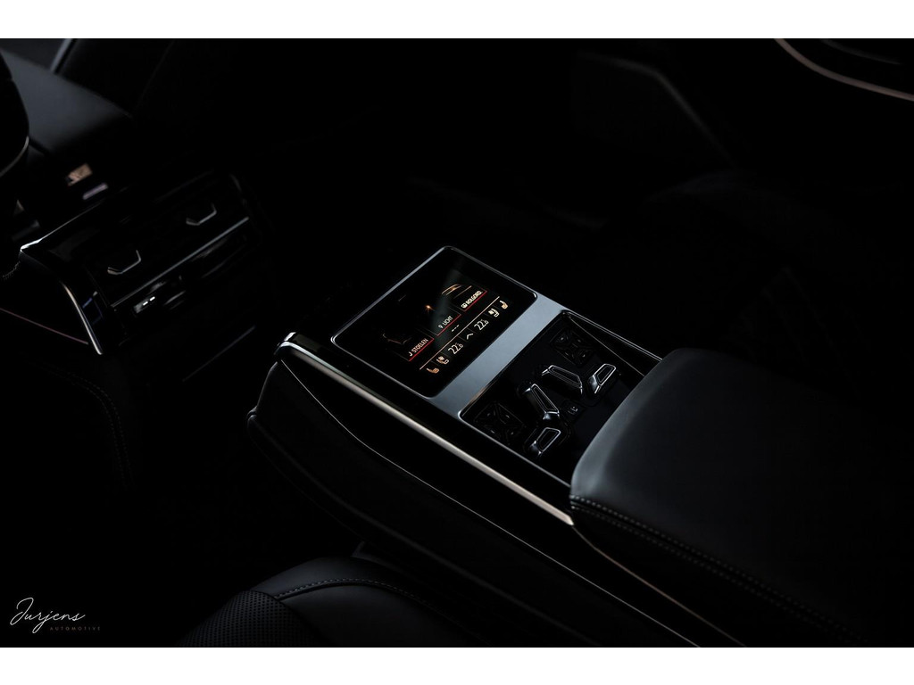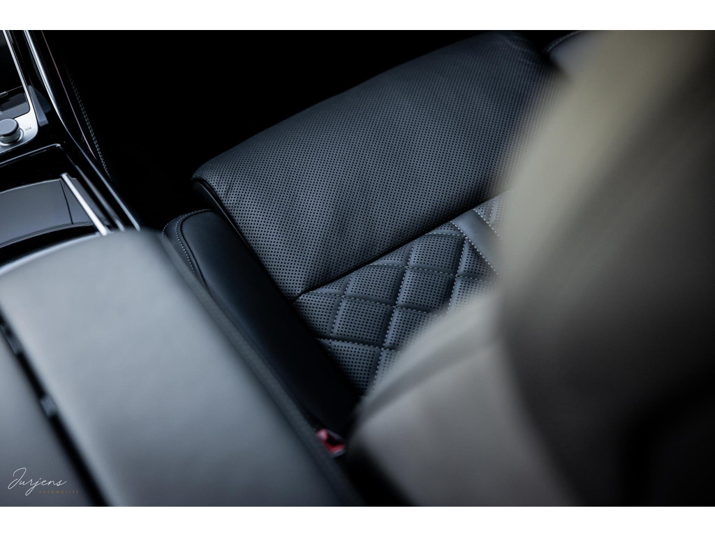 Beginnend bij de achter passagiers. Met de centrale armsteun naar beneden beschik je over een touchscreen met bediening voor zetels, verduisterende gordijnen, verlichtingsinstellingen en nog veel meer. De zetels zijn – ook achterin - elektrisch verstelbaar, voorzien van memorystanden en verwarming en ventilatie. De details van touch ventilatiebediening, alcantara, hoogglans zwarte sierlijsten en fraai Nappa leder onderstrepen het high-end karakter.
