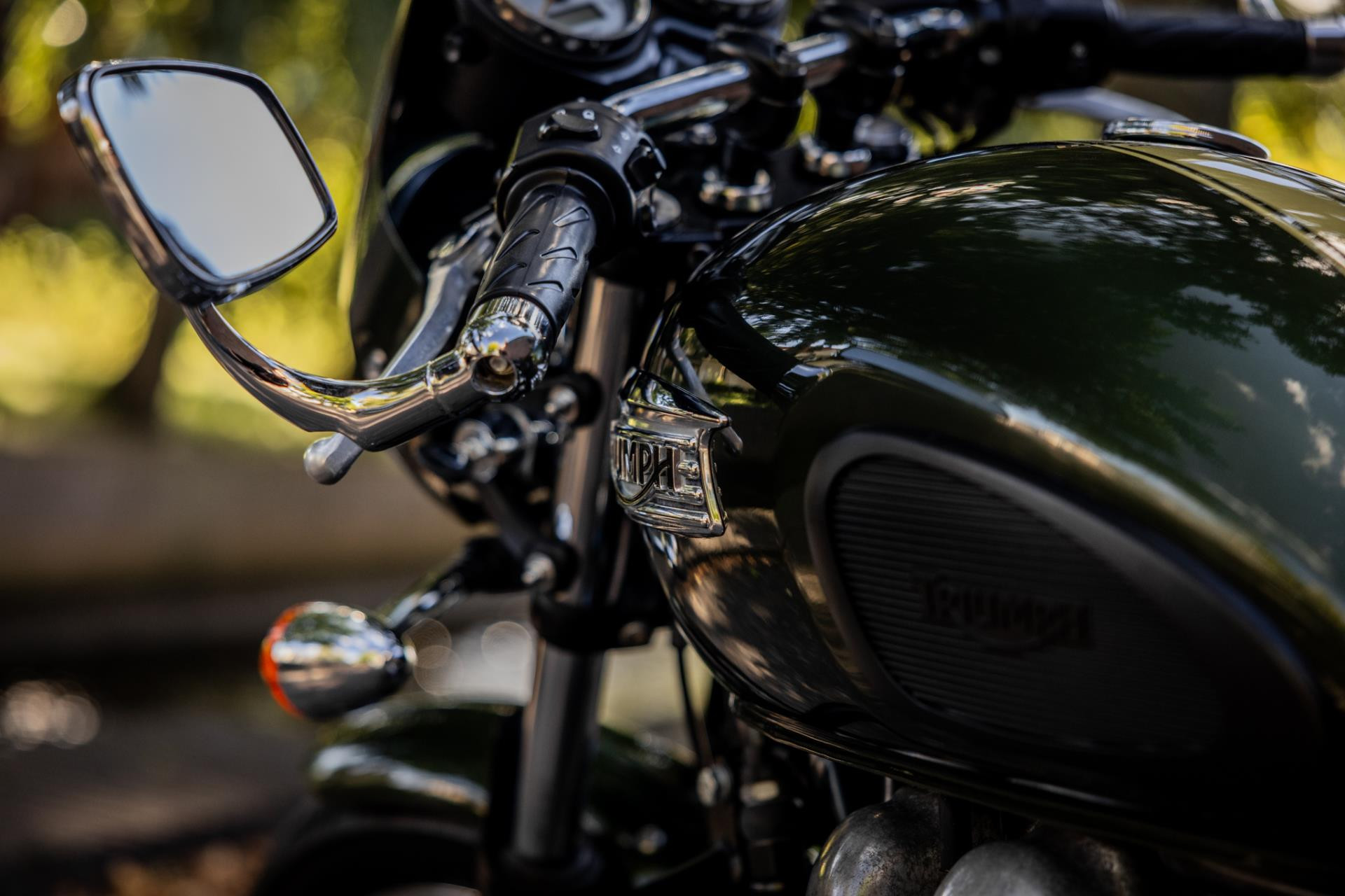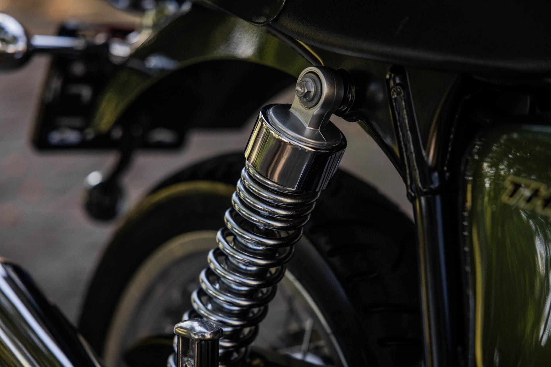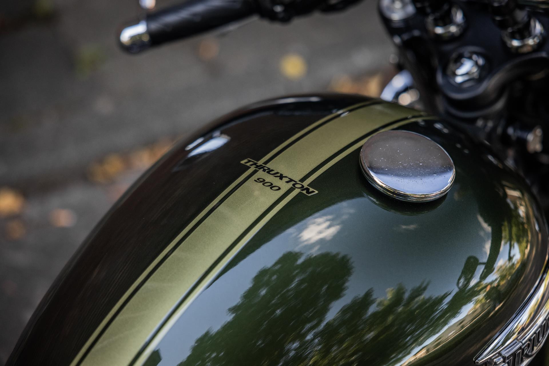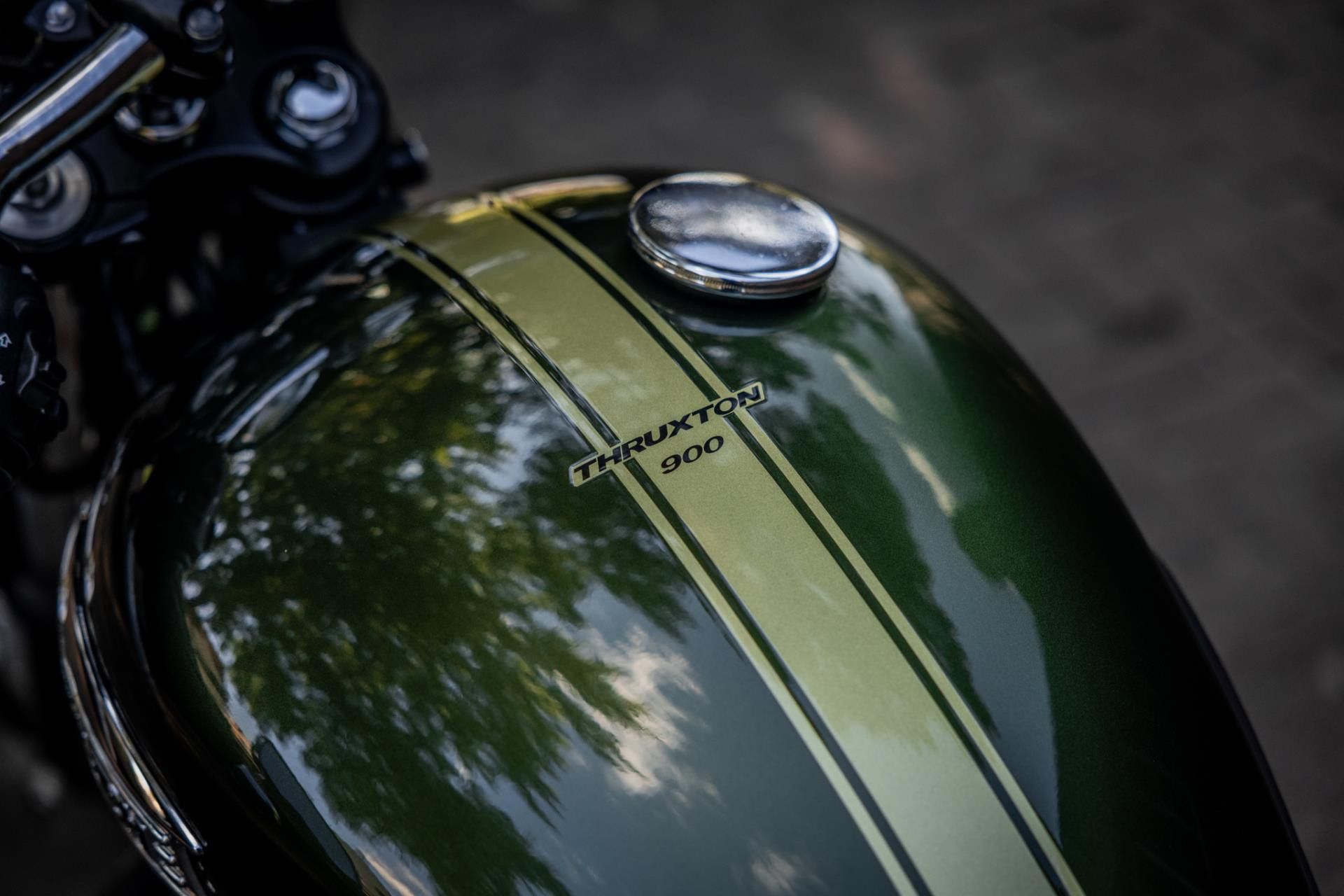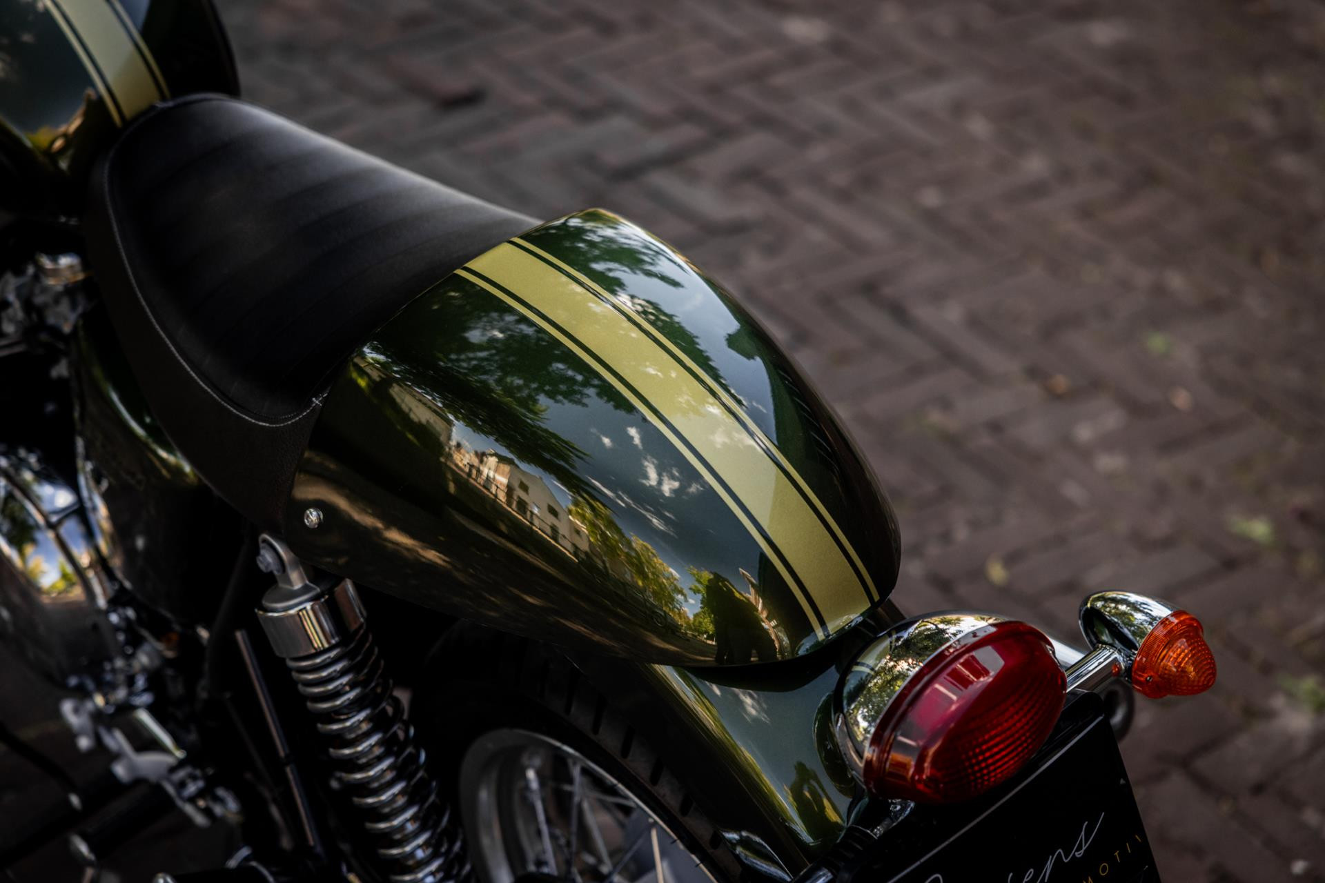 De Thriumph Thruxton is een echte Britse caférace. De geweldige kleur – Brooklands Green – combineert waanzinnig met de stijlvolle Gold striping en de vele chromen accenten. Echt een opvallende verschijning met de klassieke looks, maar moderne techniek.
