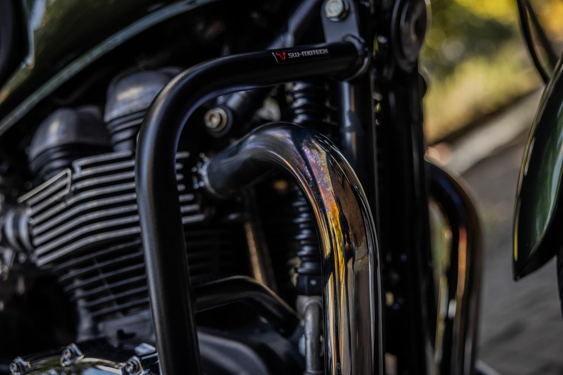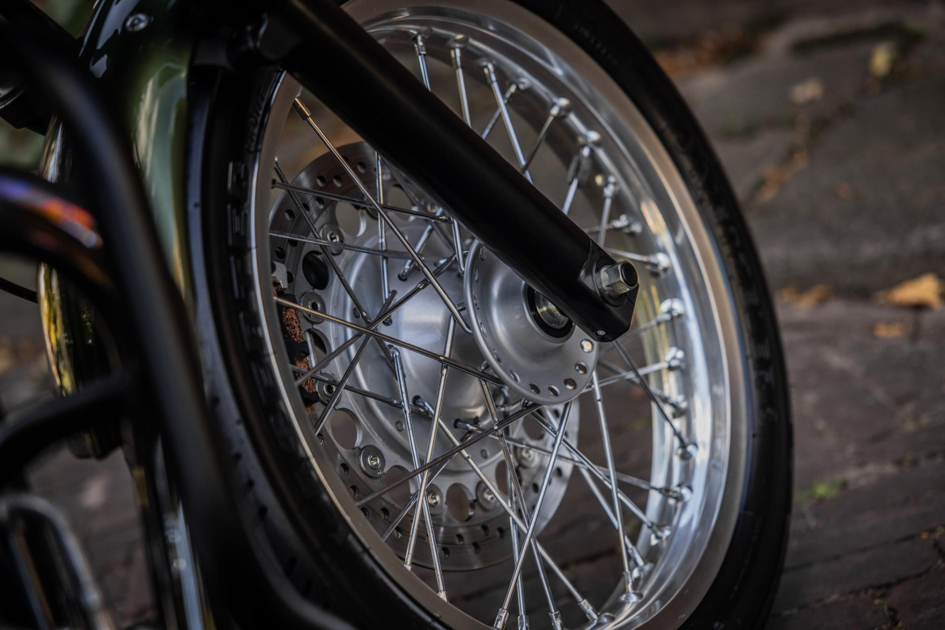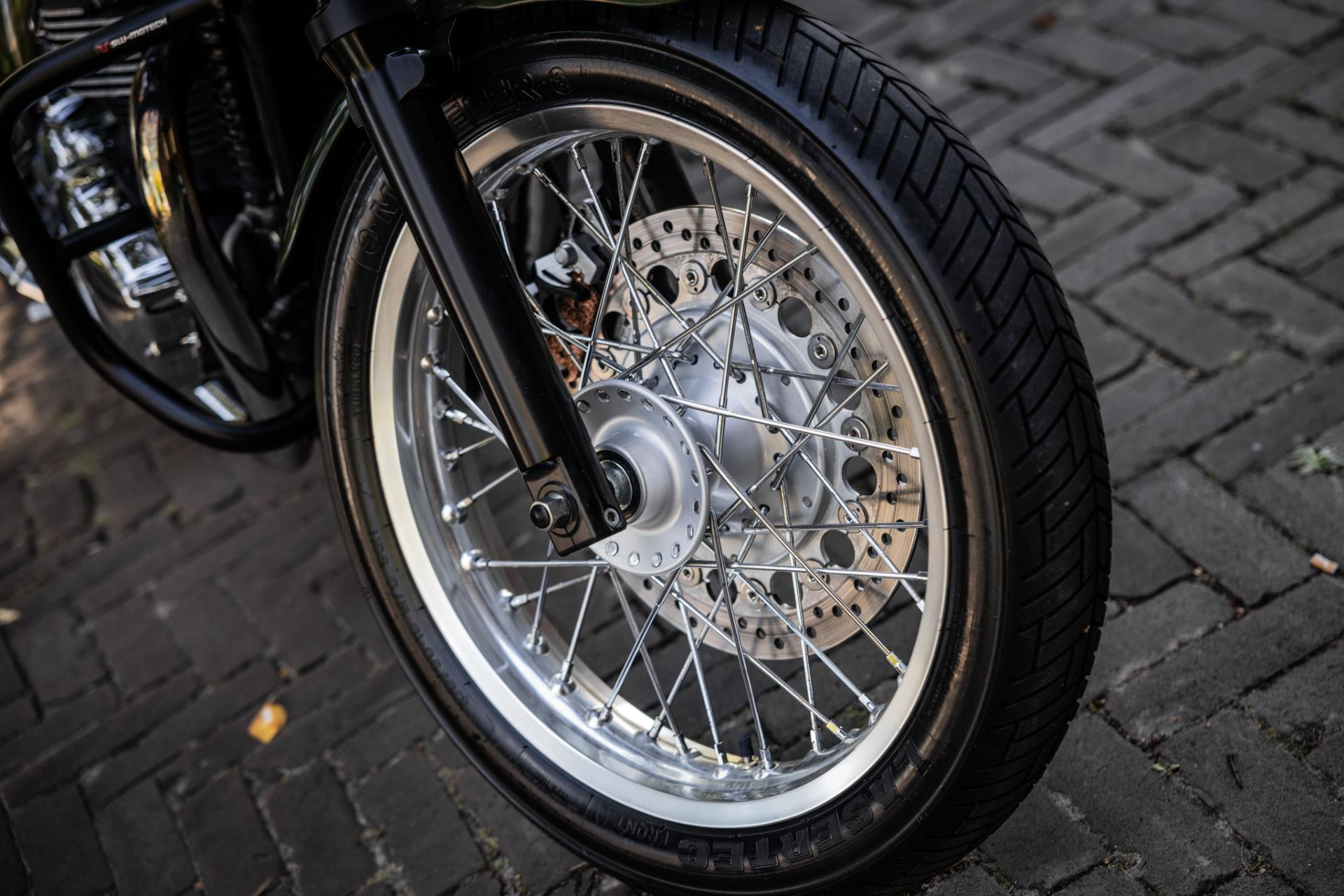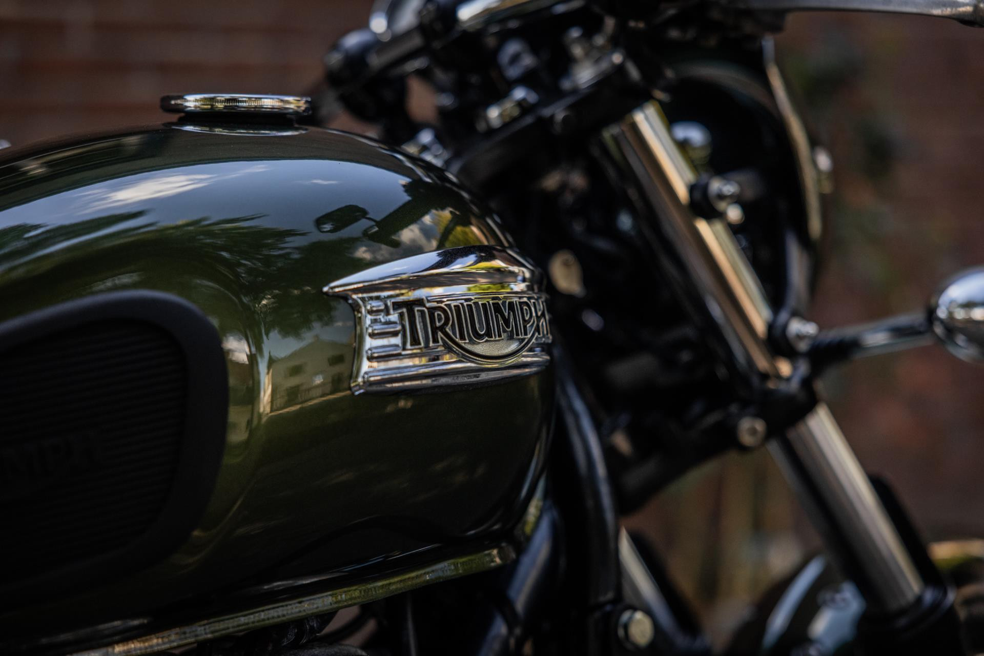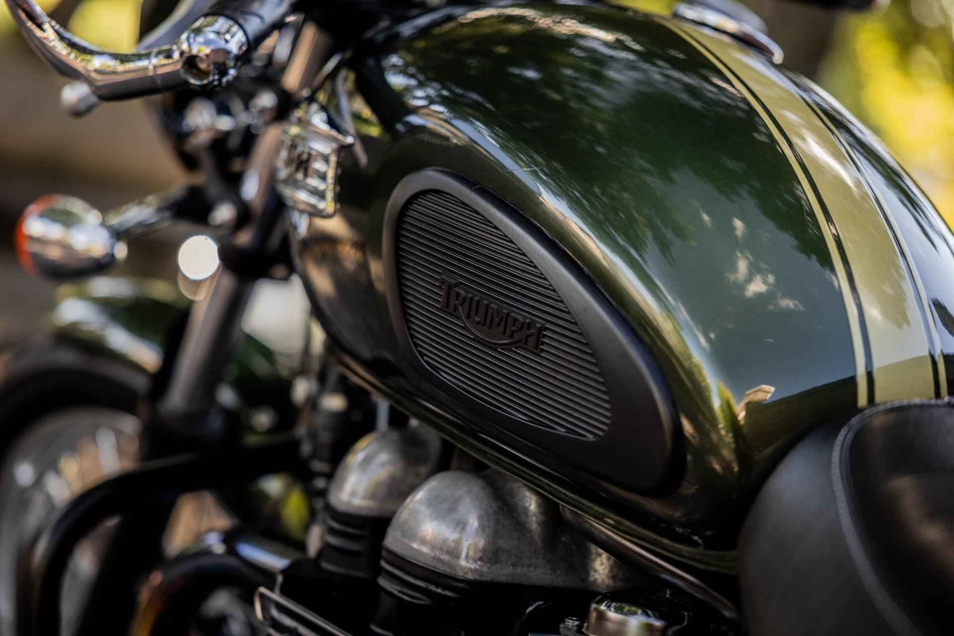 De Thriumph Thruxton is een echte Britse caférace. De geweldige kleur – Brooklands Green – combineert waanzinnig met de stijlvolle Gold striping en de vele chromen accenten. Echt een opvallende verschijning met de klassieke looks, maar moderne techniek.