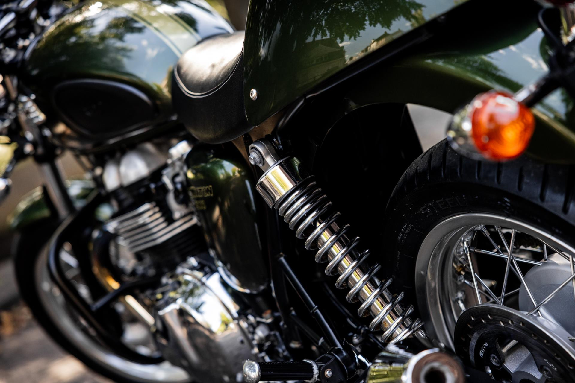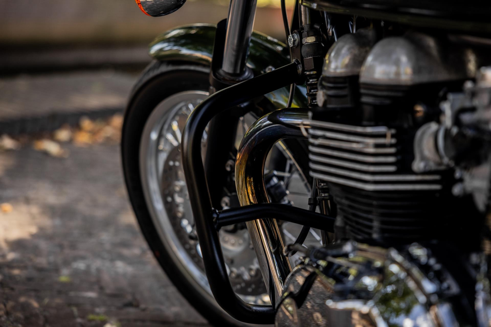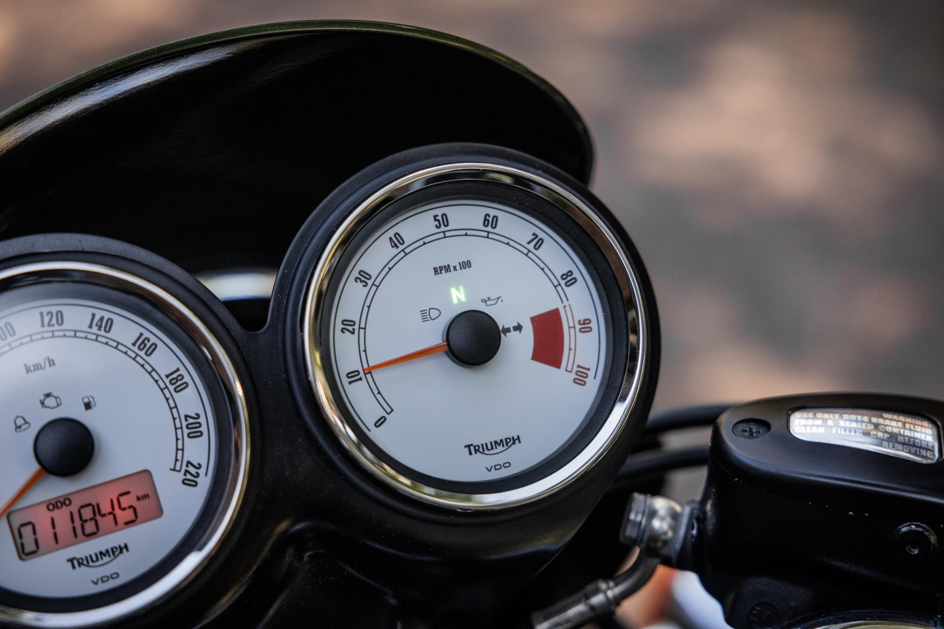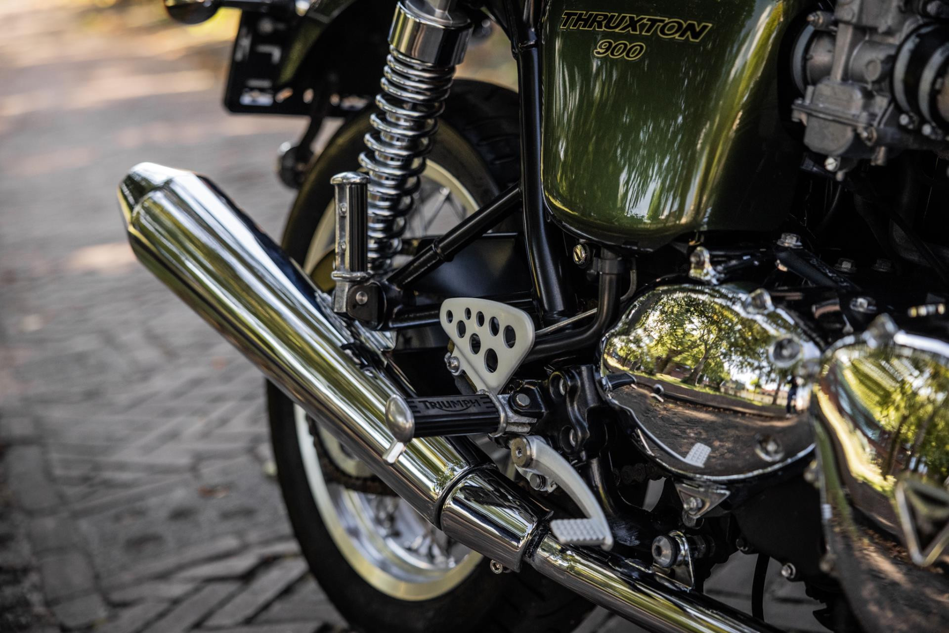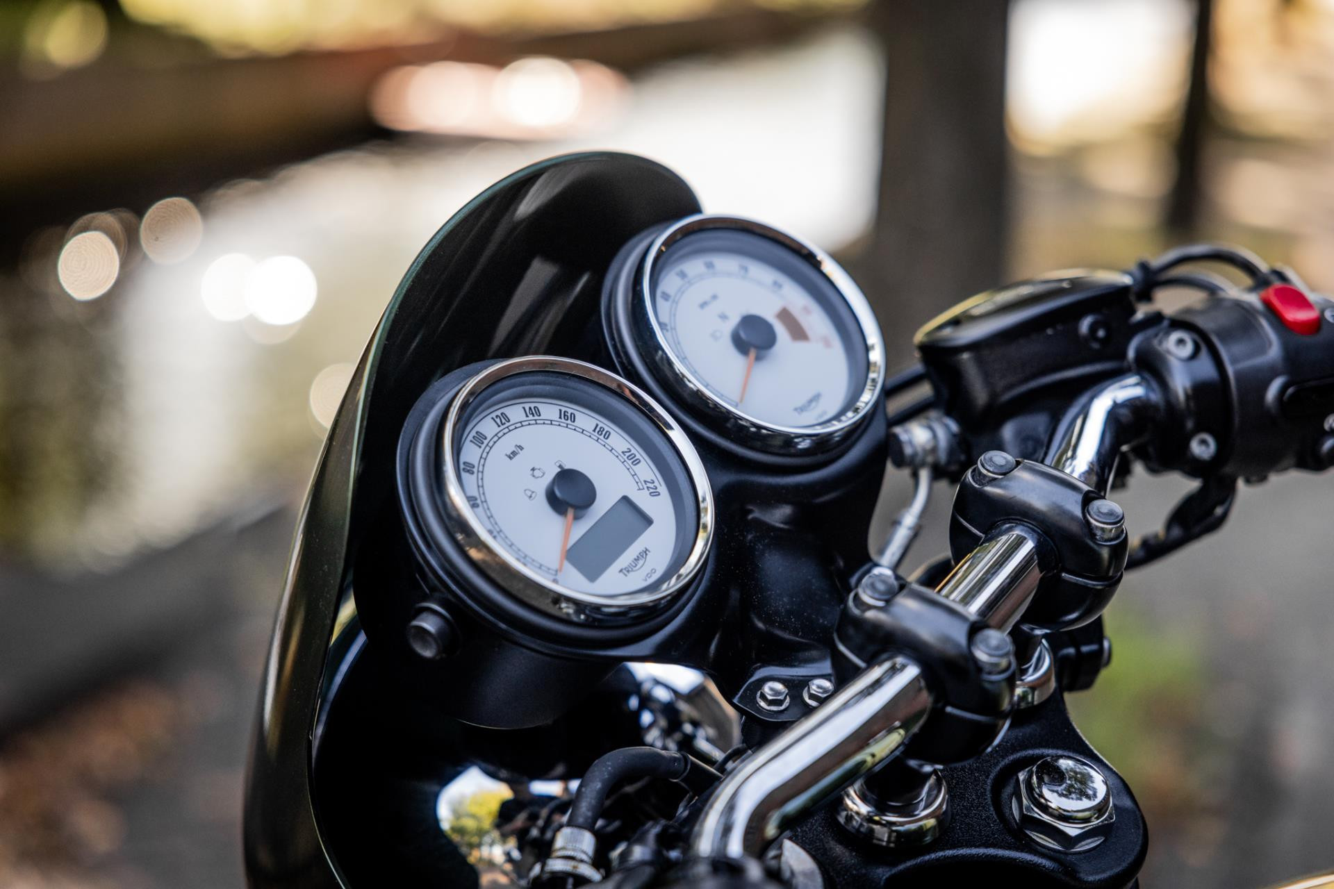 Onder het zadel ligt namelijk een 865cc luchtgekoelde parallel-twin die goed is voor 69 pk. Dankzij het lage gewicht van 219 kg en de korte overbrengingen sprint deze Thruxton in slechts 5 seconden naar de 100 km/u. De rijbeleving is direct, levendig en karaktervol – precies zoals je dat van een echte Triumph mag verwachten. De motor voelt perfect in balans, zowel in de stad als op bochtige dijkwegen.