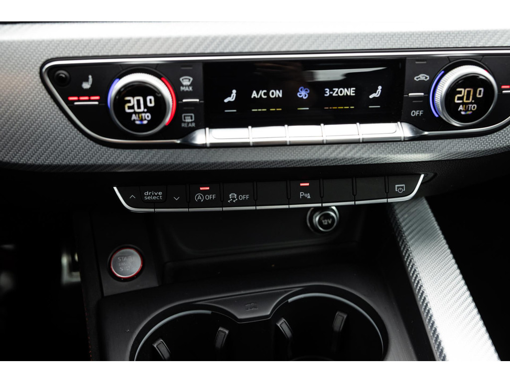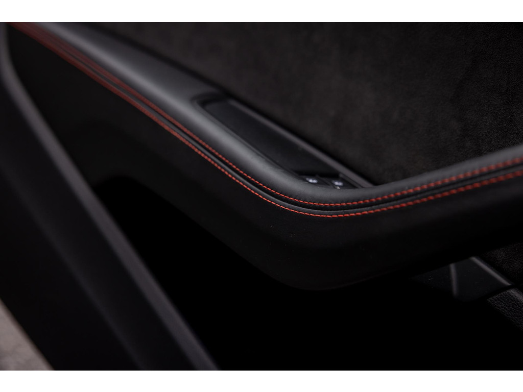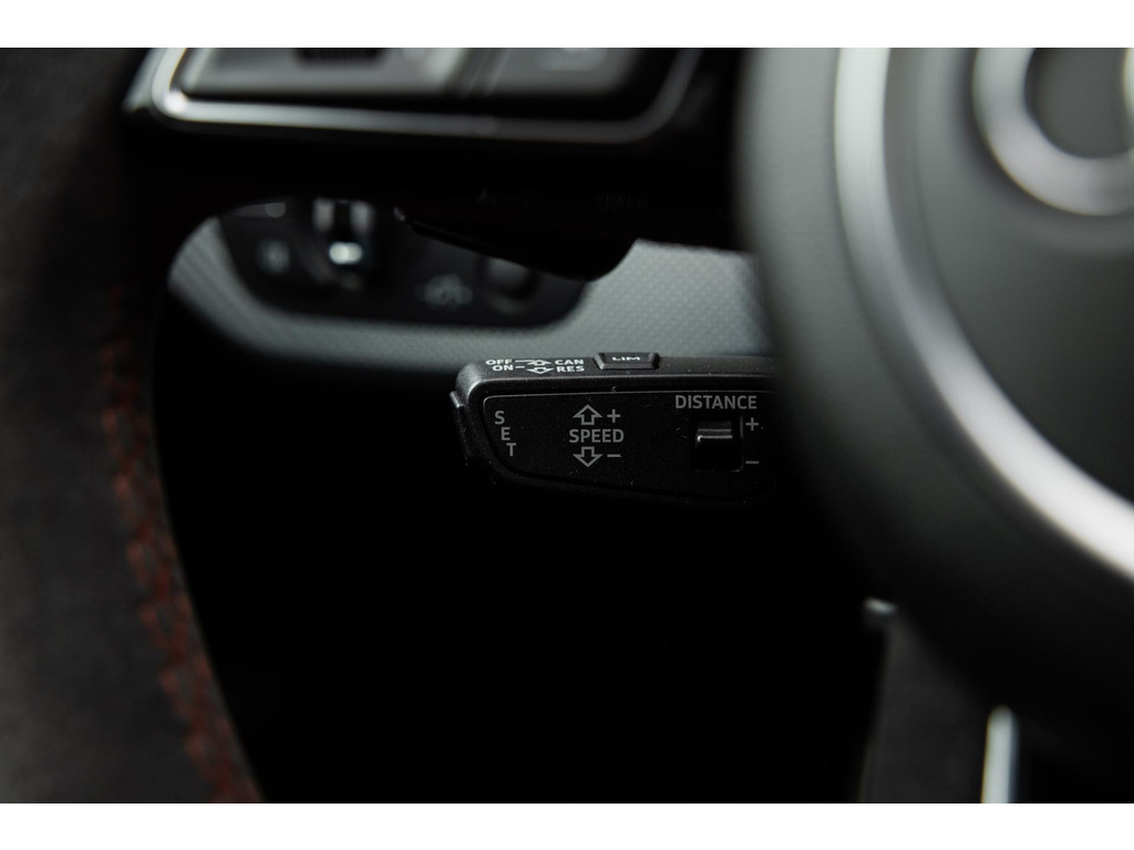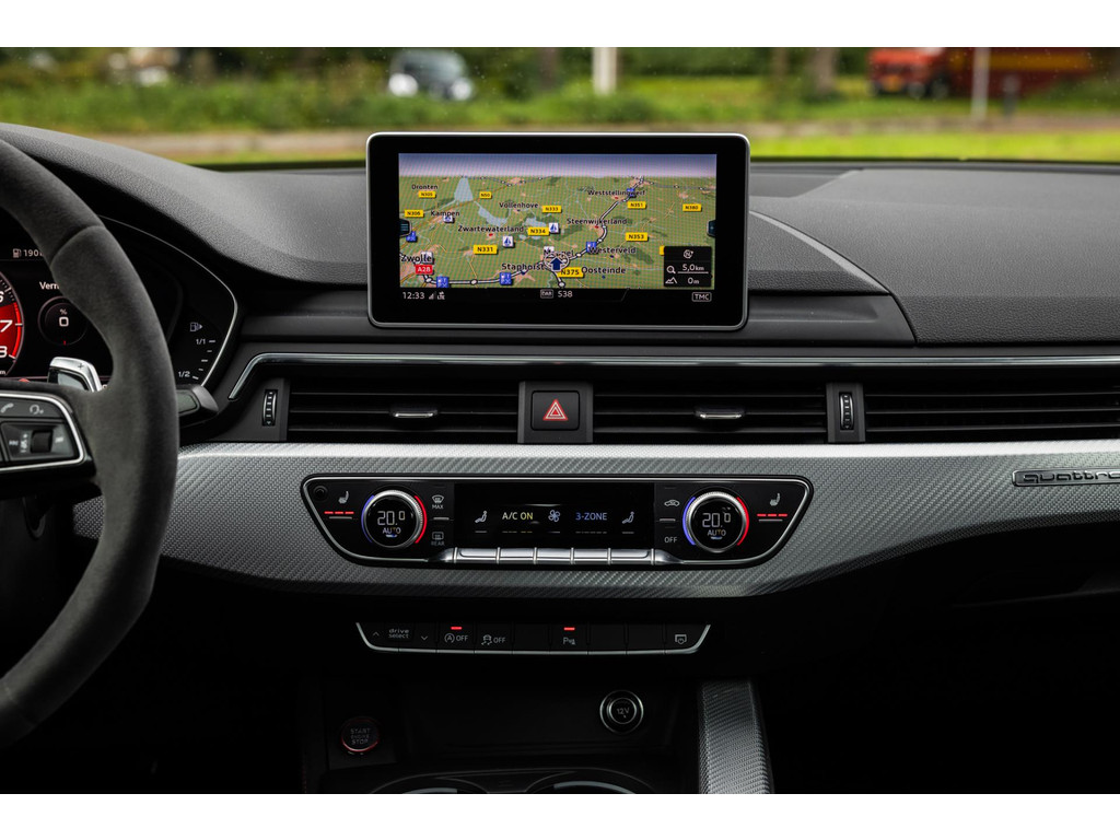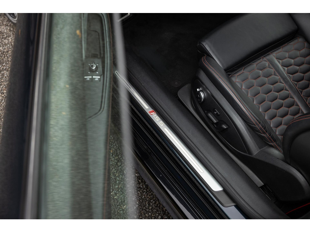 Bij het openen van het portier is het sportiviteit in optima forma, maar ook veel luxe. De dikke sportzetels zijn een lust voor het oog en bieden tegelijk de steun waar van later zal blijken dat we die hard nodig hebben. Het prachtige zwarte Fijn Nappa leder is gestikt met honingraat stiksels in Cresendorot. Het RS stuurwiel is uitgevoerd in alcantara. De zeldzame sierlijsten in – Aluminium Race – geven het interieur de sportieve inborst. De stoelen zijn volledig elektrisch verstelbaar en voorzien van stoelverwarming, memory en zelfs massagefunctie. Voor me het digitale dashboard die naar wens is in te richten. Uiteraard zwarte hemelbekleding. Het MMI Plus Touch multimediaysteem werkt intuïtief en voorziet in navigatie, bluetooth audio en dankzij het fenomenale Bang & Olufsen audiosysteem is de geluidsbeleving waanzinnig.