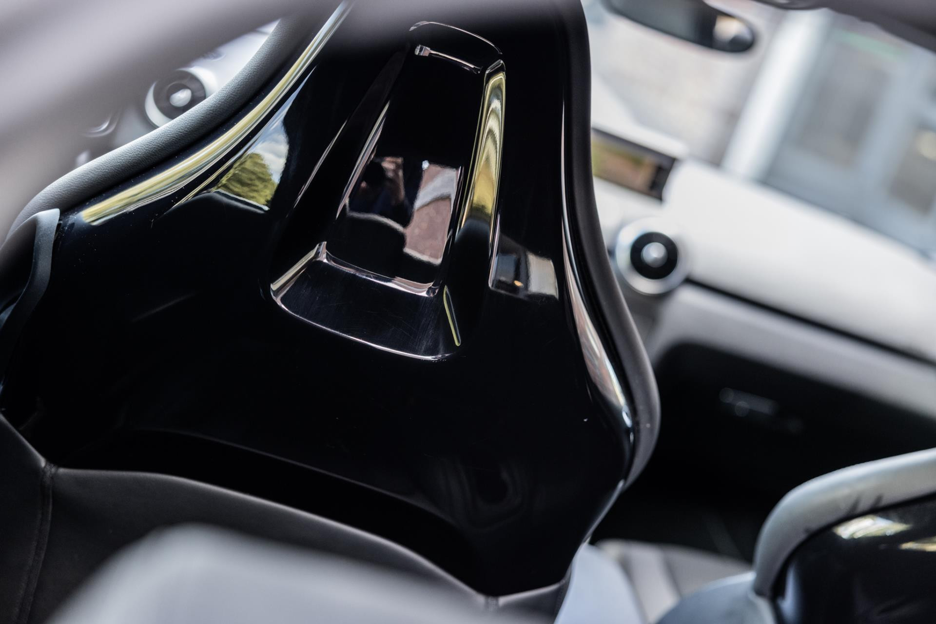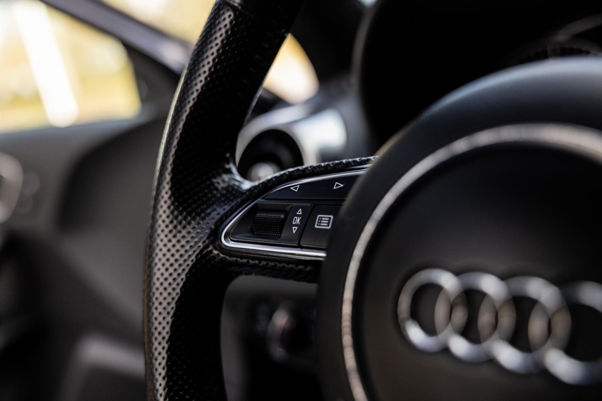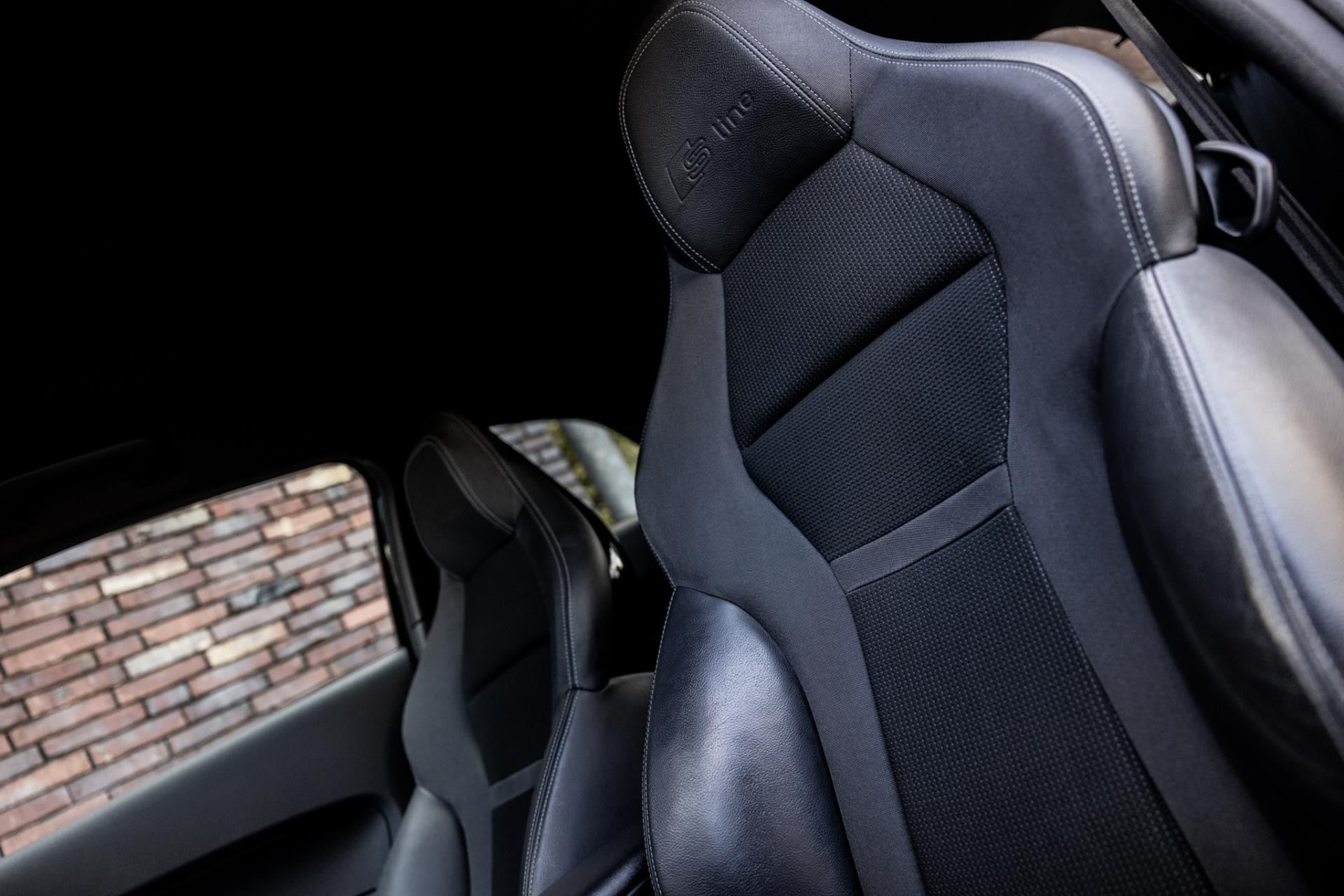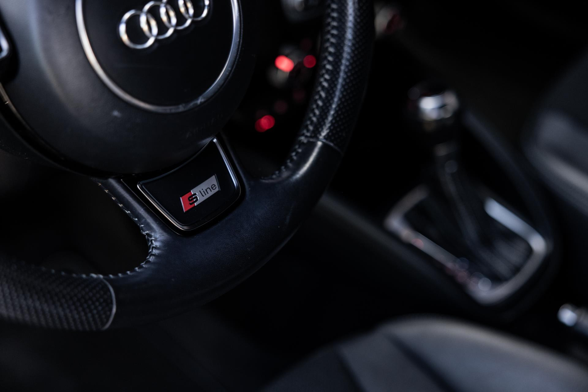 In het interieur gaat het feest door. Direct vallen de zelden gezien S Sportzetels op. Deze zijn veel fraaier dan de standaard S-Line sportstoelen. Deze schaalstoelen zijn bekleed in Leer gecombineerd met Sprint textiel en gave witte stiksel en de achterzijde is gespoten in hoogglans zwart. Het S-Line sportstuurwiel is voorzien van geperforeerd leder en het S-Line embleem. Verder zijn de ventilatieroosters voorzien van het Audi Exclusive aluminium.