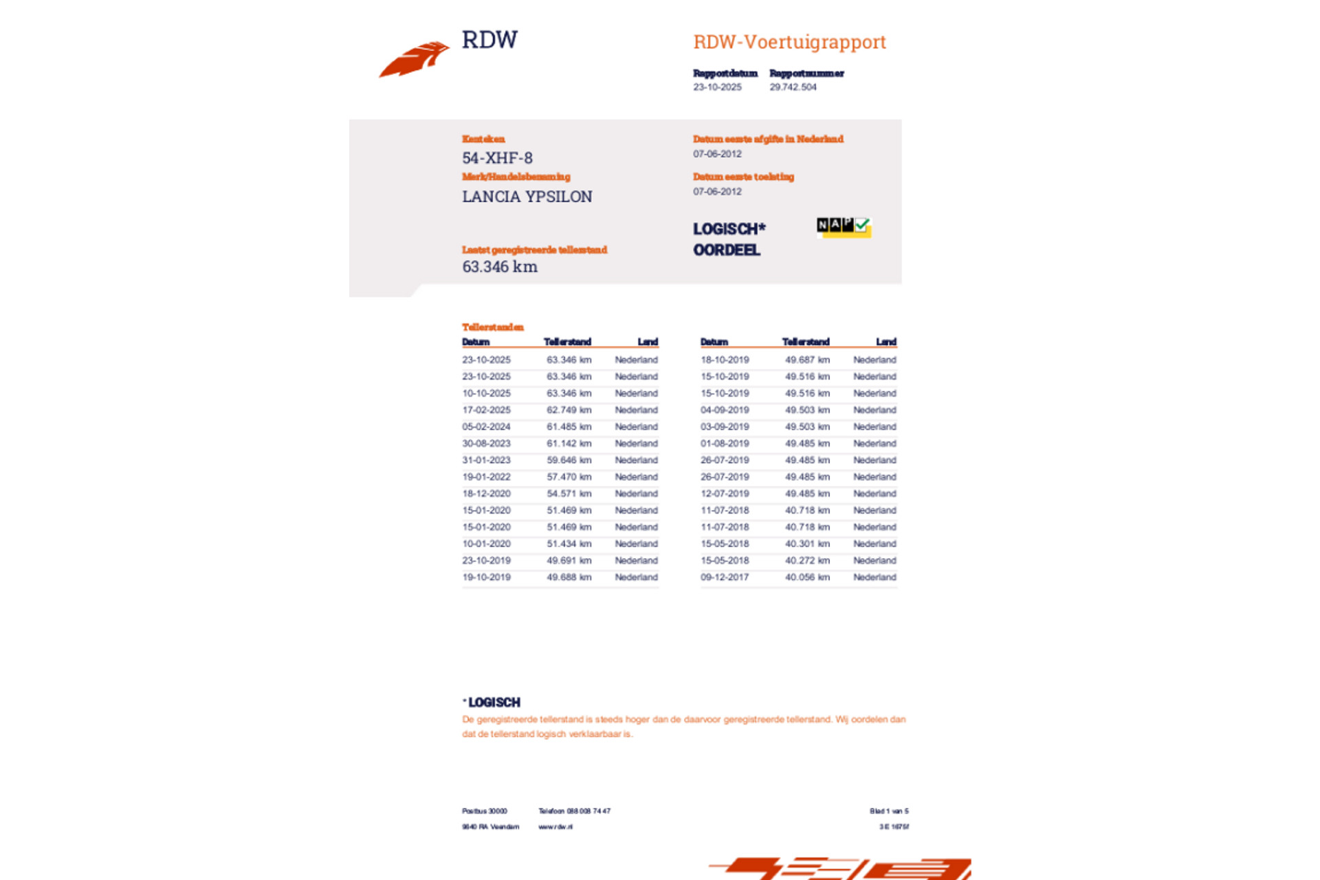 Aan alles is te merken dat de Lancia Ypsilon met zorg en liefde behandeld en bereden is. De staat is netjes en verzorgd. De Ypsilon werd origineel Nederlands geleverd waardoor de lage kilometerstand volledig aantoonbaar is middels een RDW Tellerrapport.