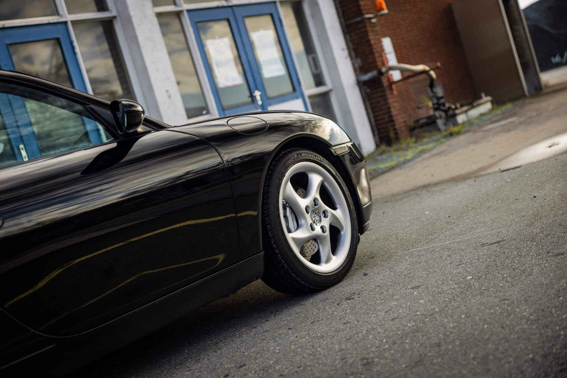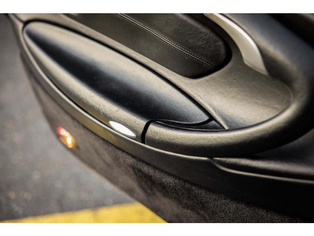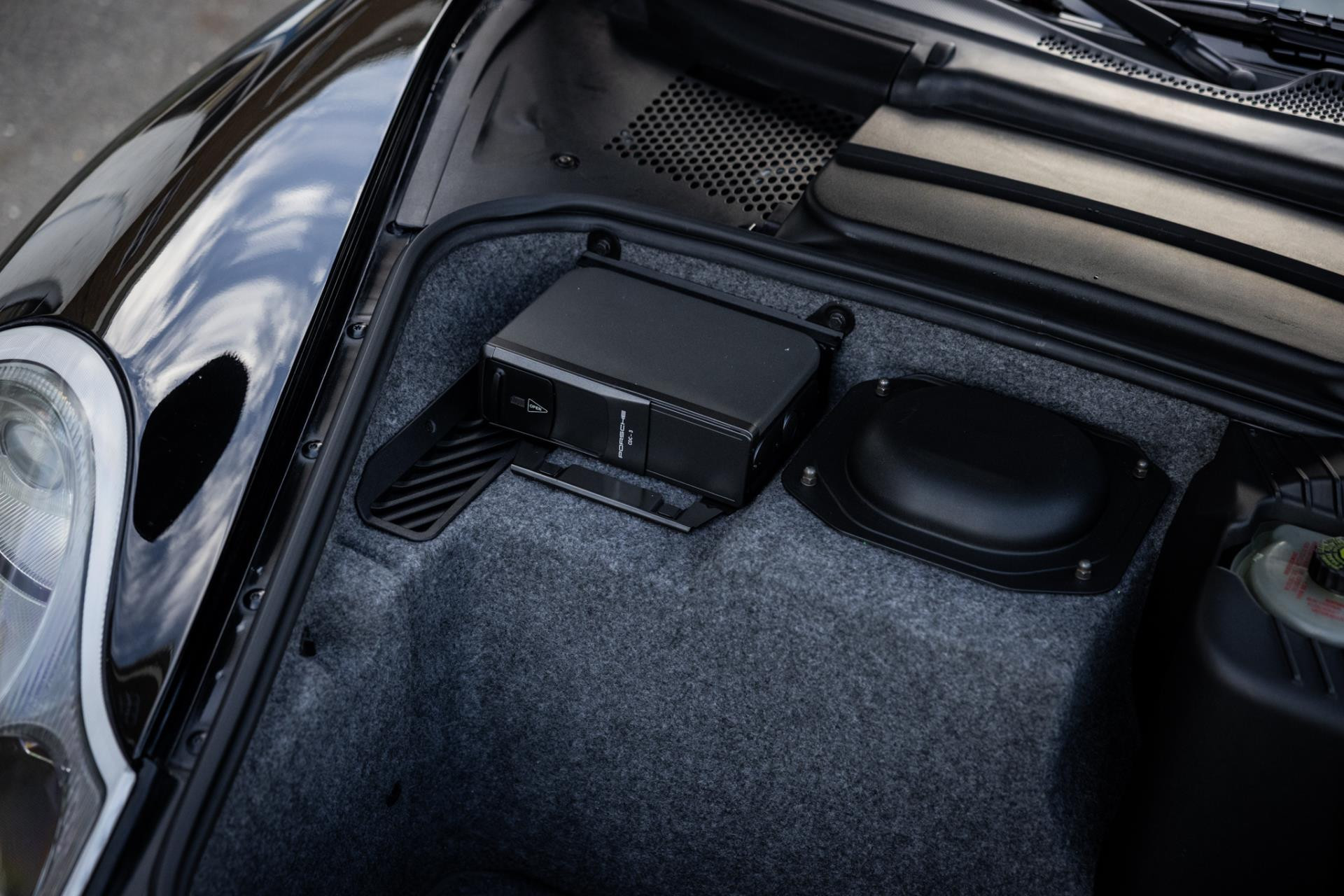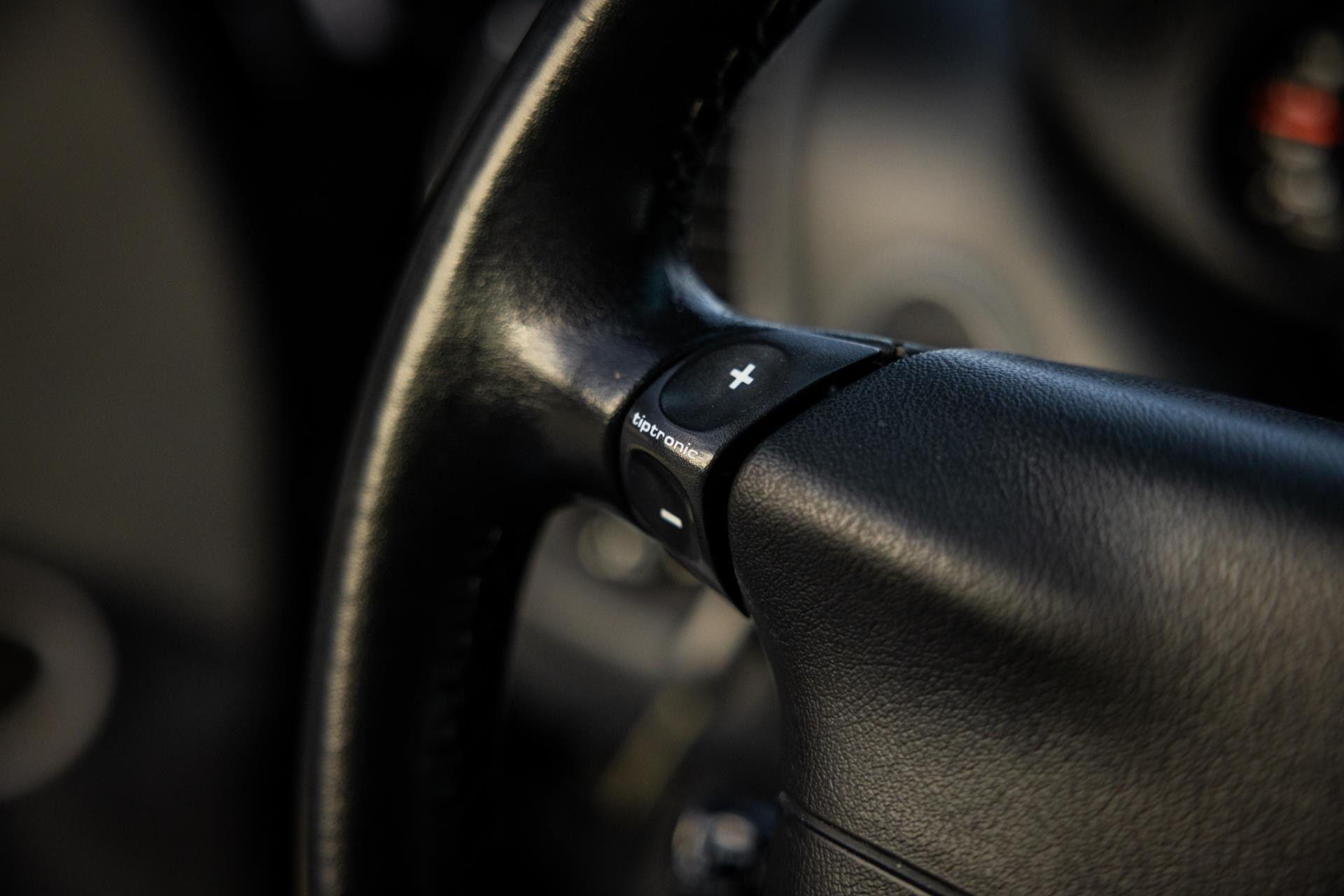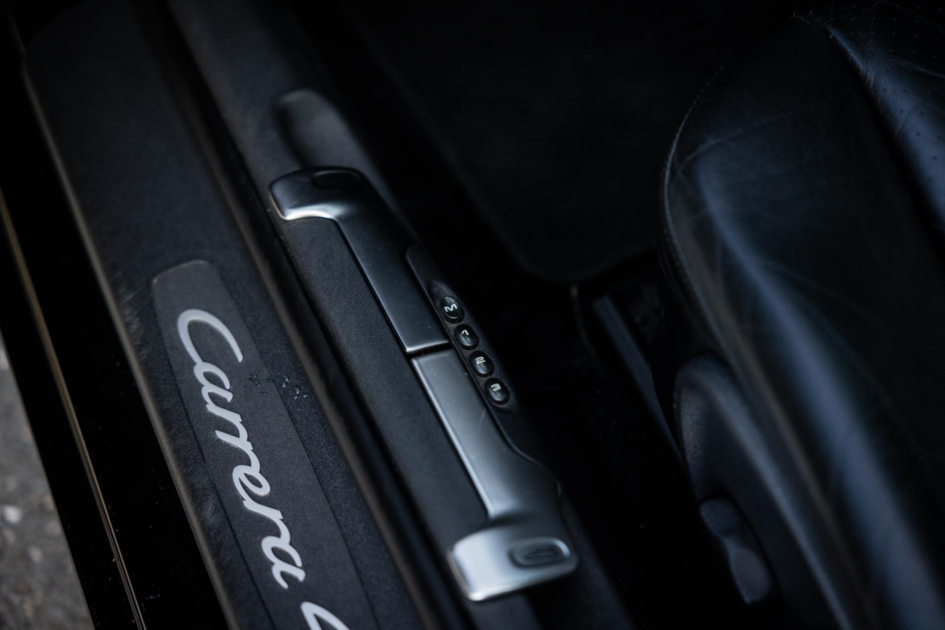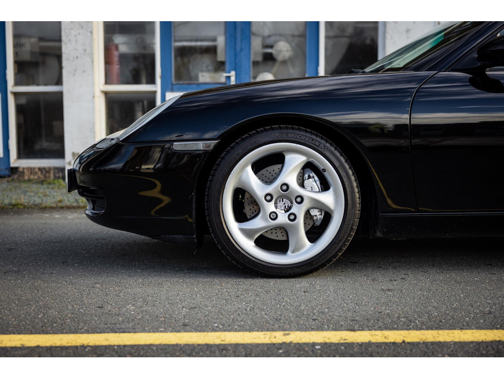 Binnenin zien we veel luxe. Vooral als je de auto plaats in de tijdgeest van eind jaren 90. Deze 996 is voorzien van elektrische verstelbare sportzetels met memory, stoelverwarming en fraai zwart lederen bekleding. De middenconsole behelst het origineel Porsche audiosysteem en de bediening van de automatische airconditioning. De automaat kan handbediend worden door de TipTronic toetsen op het stuurwiel. Hel fijne optie is het schuif-/ kanteldak.