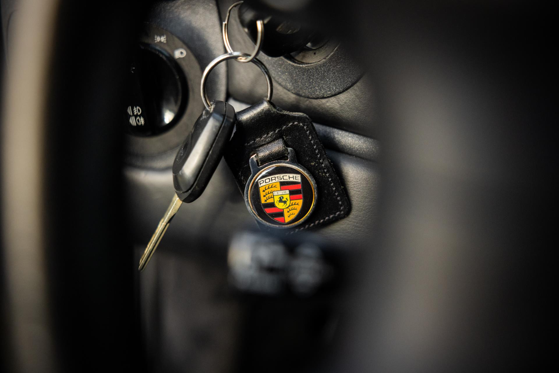 In mijn hand de sleutel met het befaamde Porsche logo. Zoals het een liefhebbersbezit betaamd is deze geringd aan een originele lederen sleutelhanger met eveneens het logo. Het geeft een magisch gevoel de sleutel in mijn hand te hebben. Het biedt namelijk toegang tot datgene dat voor velen een jongensdroom is. Een Porsche 911. In dit geval een 996 Carrera 4.