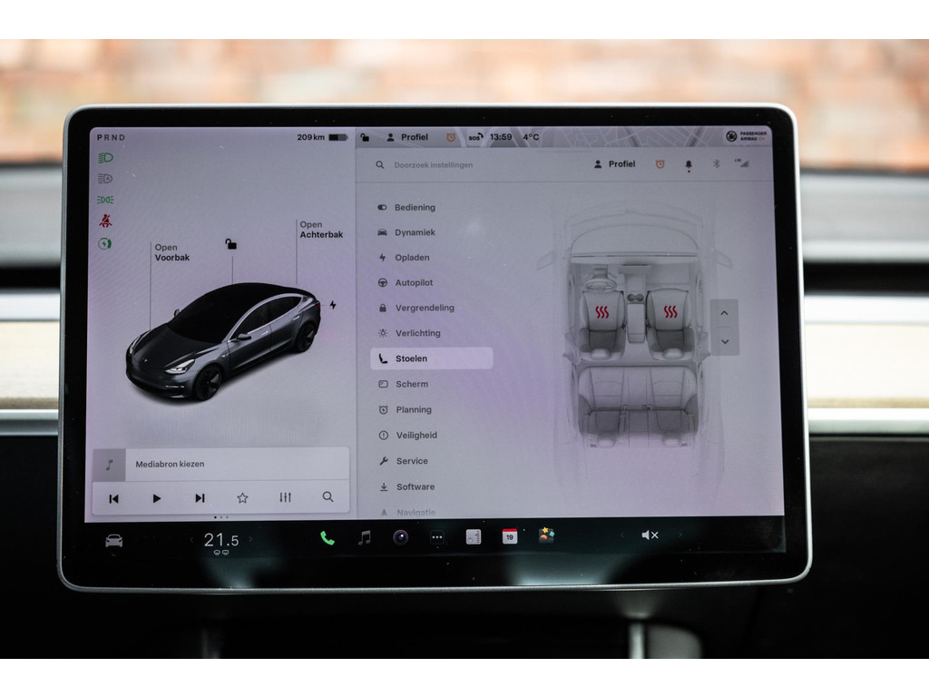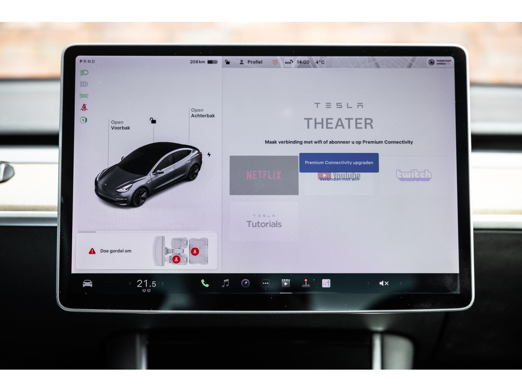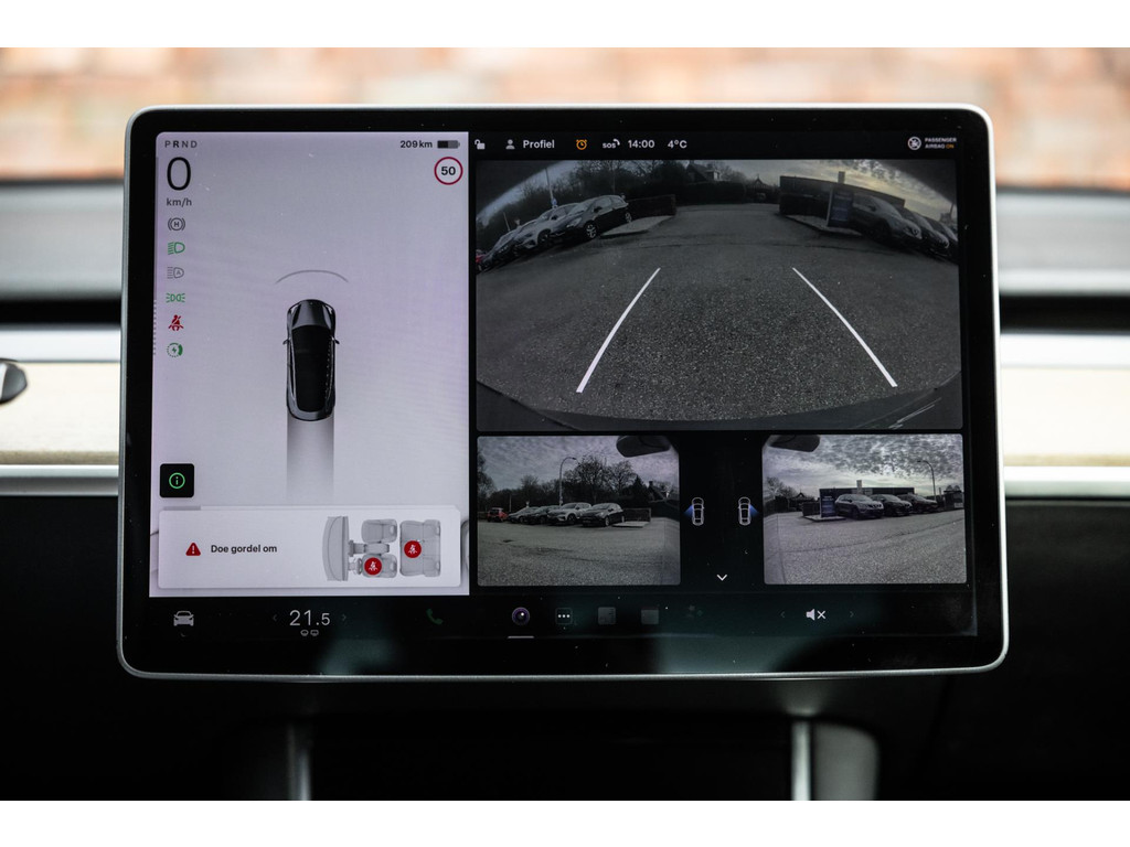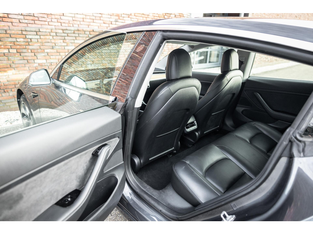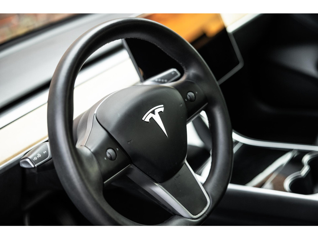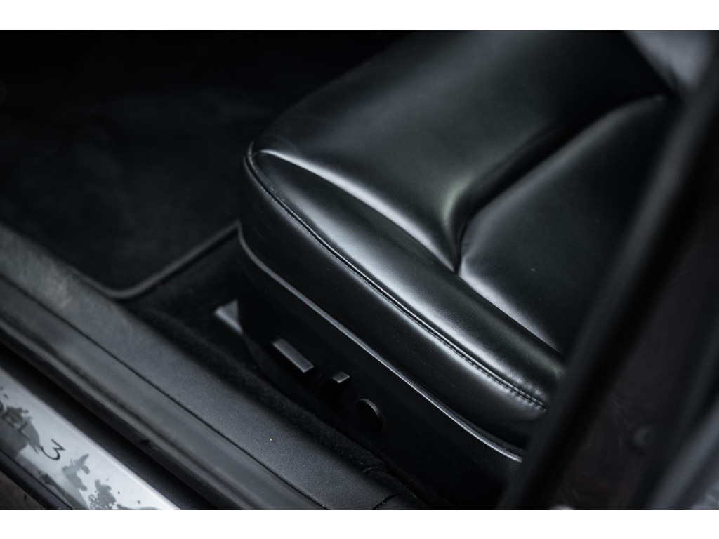Alle models 3 zijn zo’n beetje gelijkwaardig uitgerust en de standaard ligt hoog. Zo is dit exemplaar voorzien van zwart lederen bekleding. De stoelen zijn elektrisch verstelbaar evenals het stuurwiel. Uiteraard zijn de zetels voorzien van stoelverwarming. Daarnaast een gigantisch glazen panoramadak. Alle verlichting is full LED wat een ongekende lichtopbrengst geeft en voorzien van grootlichtassistent. Het centrale scherm is enorm en biedt een keur aan instellingen, mogelijkheden en luxe. Van data, tot navigatie, van audio tot telefonie en van games tot de meest vreemde mogelijkheden, alles bedien je op het scherm. Uiteraard kent deze Model 3 ook het camerasysteem en is het Premium audiosysteem.