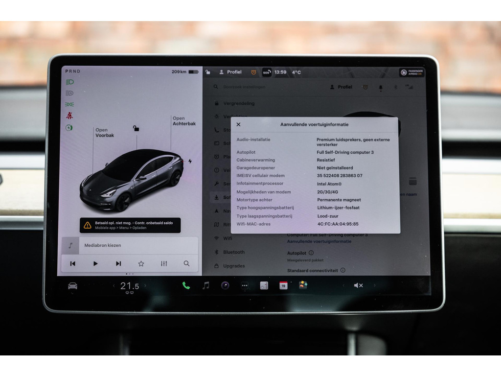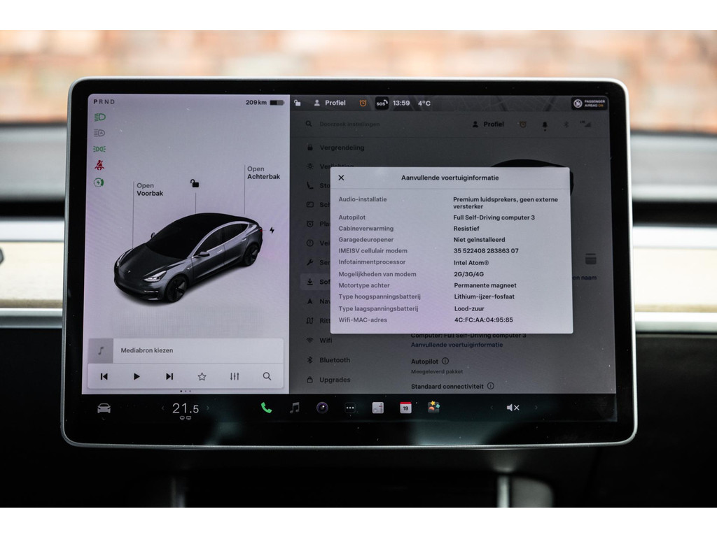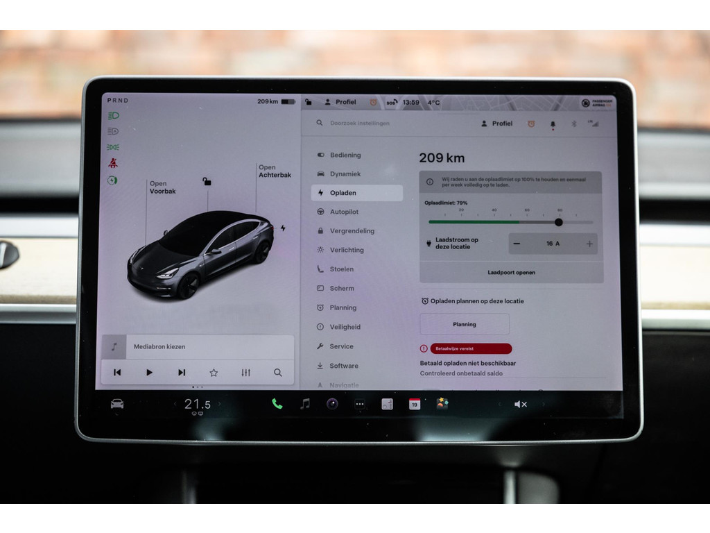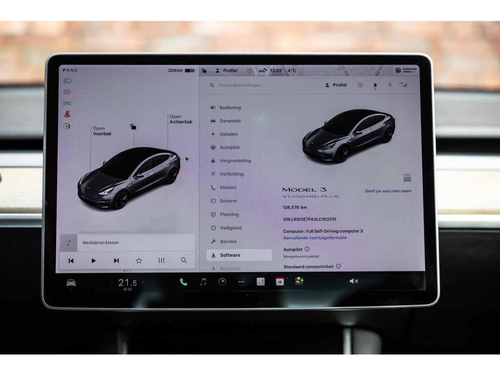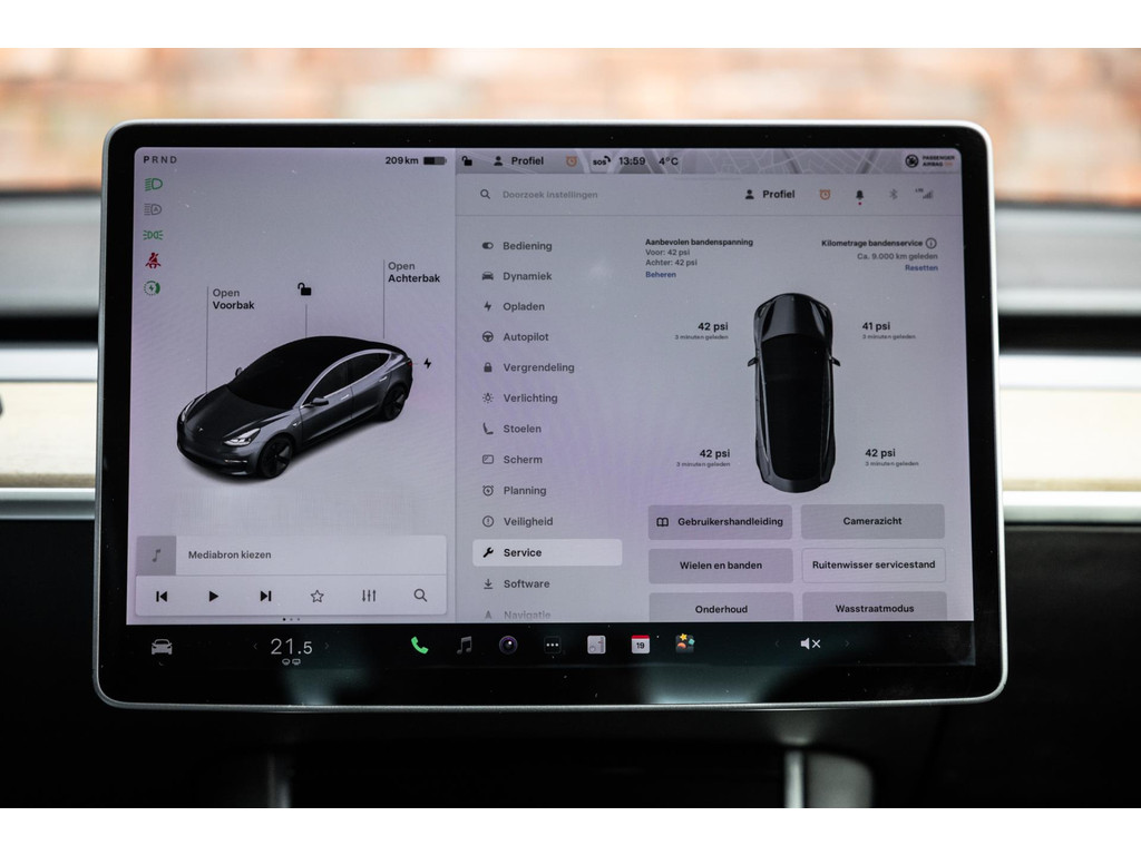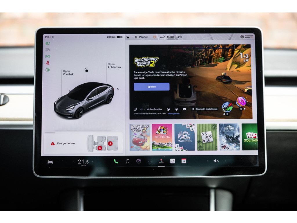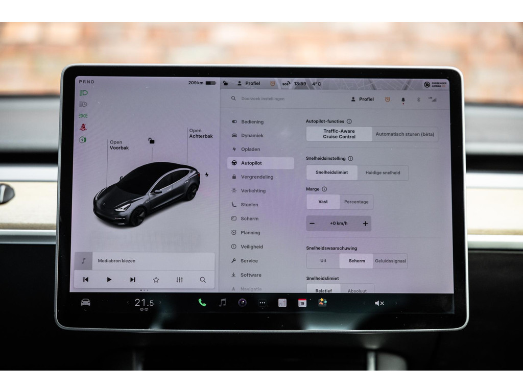 Alle models 3 zijn zo’n beetje gelijkwaardig uitgerust en de standaard ligt hoog. Zo is dit exemplaar voorzien van zwart lederen bekleding. De stoelen zijn elektrisch verstelbaar evenals het stuurwiel. Uiteraard zijn de zetels voorzien van stoelverwarming. Daarnaast een gigantisch glazen panoramadak. Alle verlichting is full LED wat een ongekende lichtopbrengst geeft en voorzien van grootlichtassistent. Het centrale scherm is enorm en biedt een keur aan instellingen, mogelijkheden en luxe. Van data, tot navigatie, van audio tot telefonie en van games tot de meest vreemde mogelijkheden, alles bedien je op het scherm. Uiteraard kent deze Model 3 ook het camerasysteem en is het Premium audiosysteem.