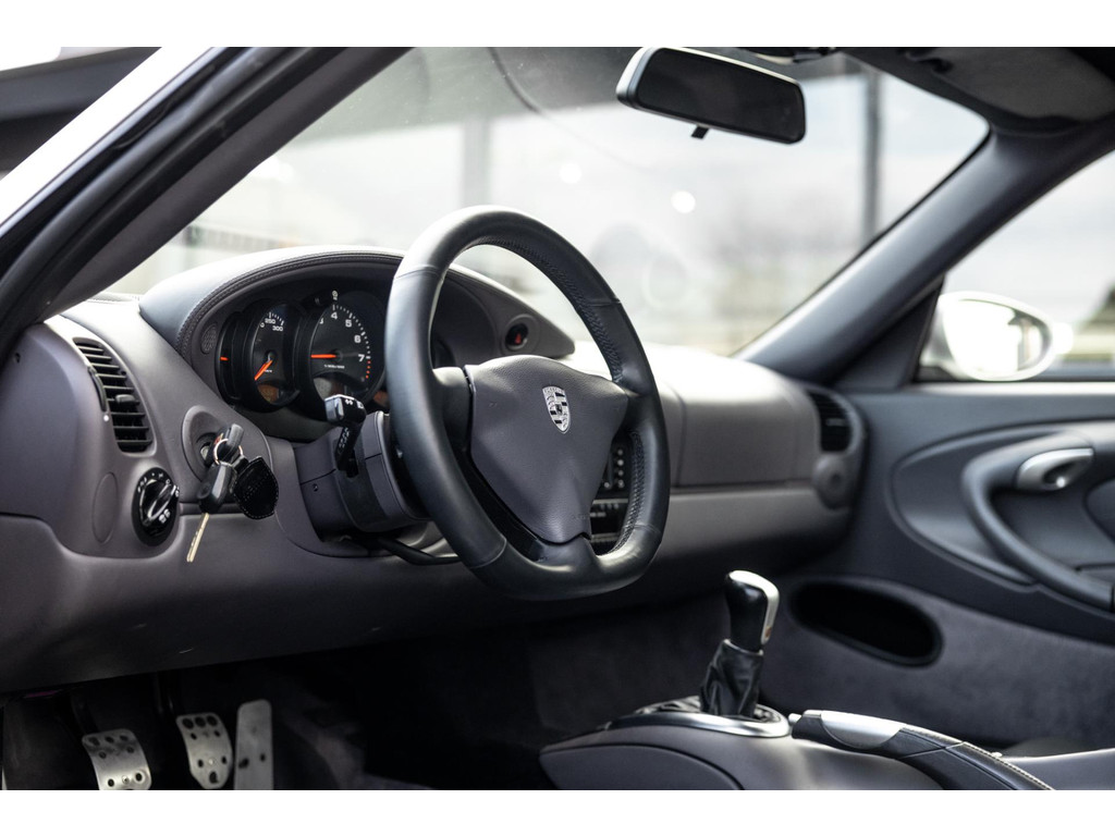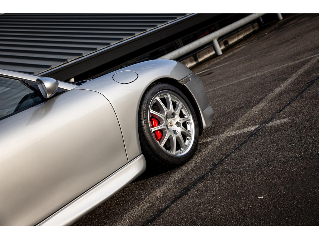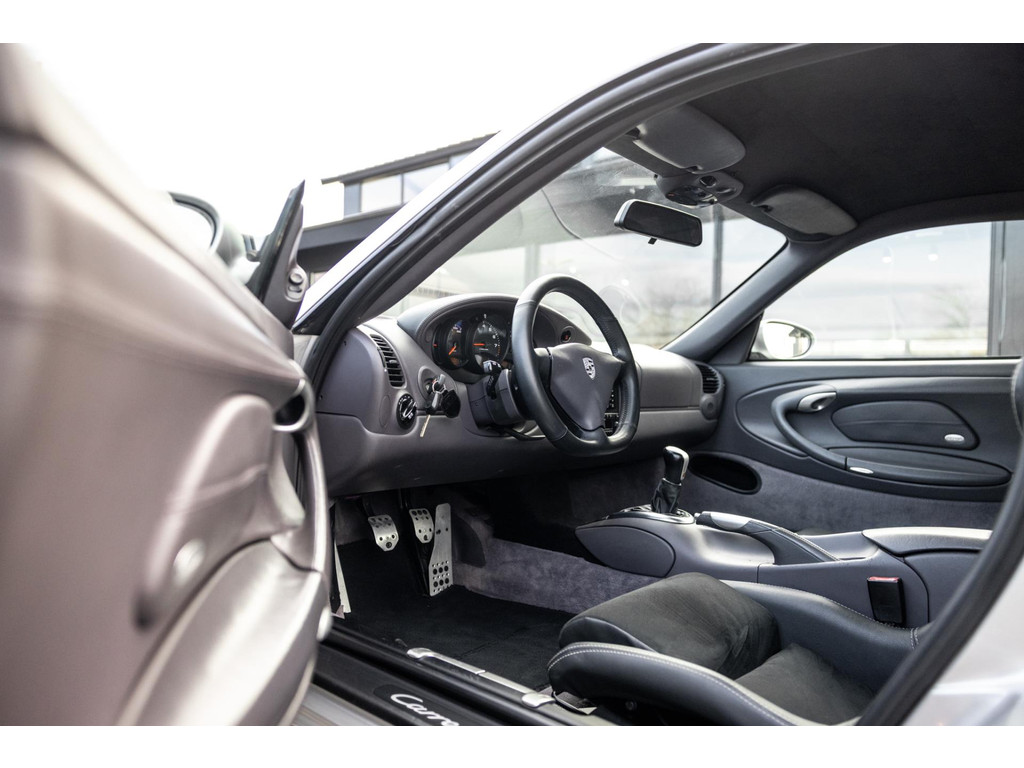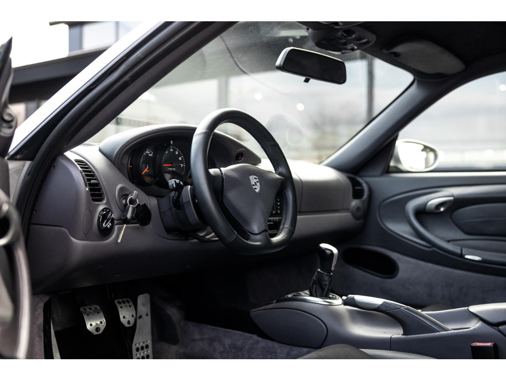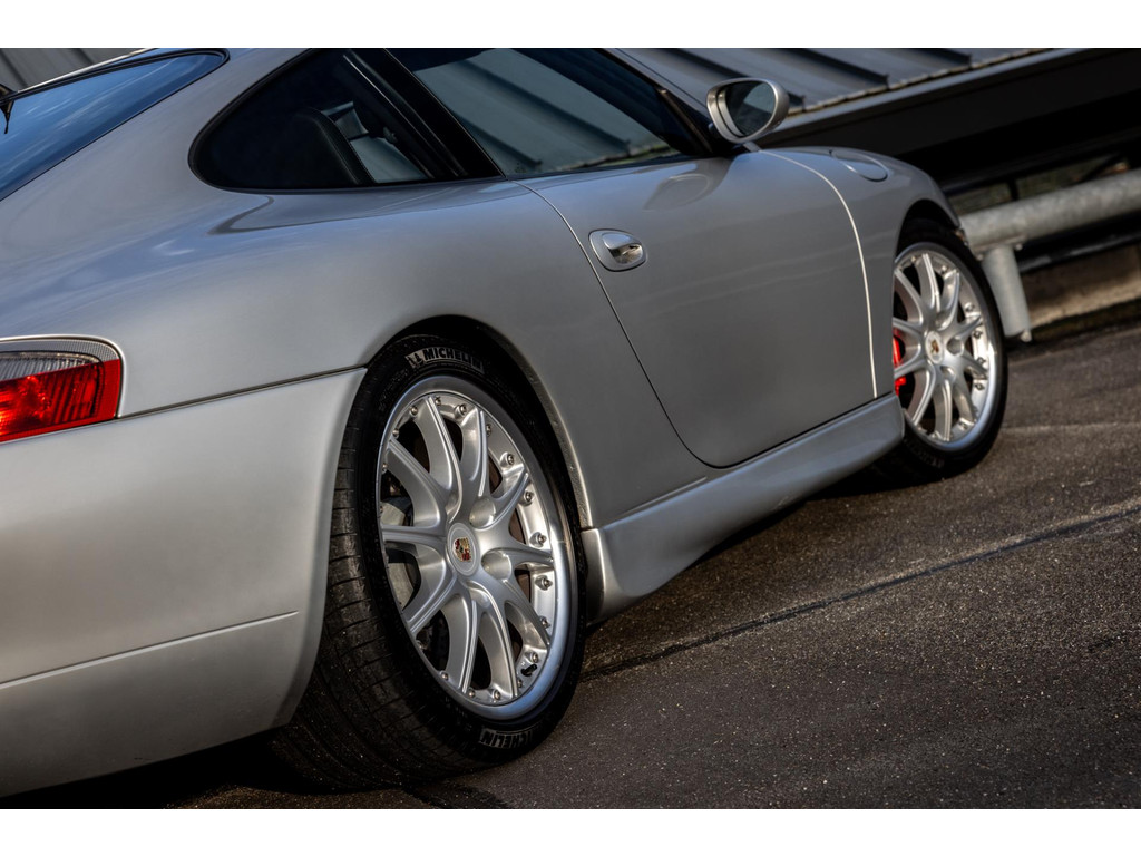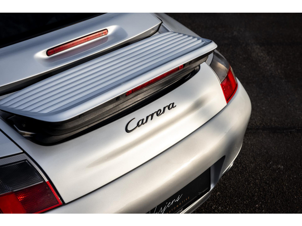 Dit is de 3.4 Coupé Carrera met 300pk. Origineel in Duitsland geleverd in 2000, maar in 2006 naar Nederland gekomen. De Carrera heeft optische wijzigingen van de GT3 gekregen waaronder bumpers, sideskirts, uitlaat, interieur en de originele GT3 velgen. Ook is het onderstel aangepast middels kostbare Öhlins dempers. Alle documentatie en facturen hiervan zijn aanwezig. Aan alles is te merken dat de auto uiterst zorgvuldig onderhouden en bereden is. Het onderhoud is perfect bijgehouden en zeer recent (december 2025) is er nog voor bijna EUR 2.500 aan onderhoud uitgevoerd. De staat is ongekend netjes zonder beschadigingen en duidelijk is dat er zeer veel liefde in de 911 is gestoken. Van alles wijzigingen is het mogelijk om weer terug te gaan naar het origineel omdat alle onderdelen zoals bumper, stoelen, achterbank, etc bewaard zijn gebleven.
