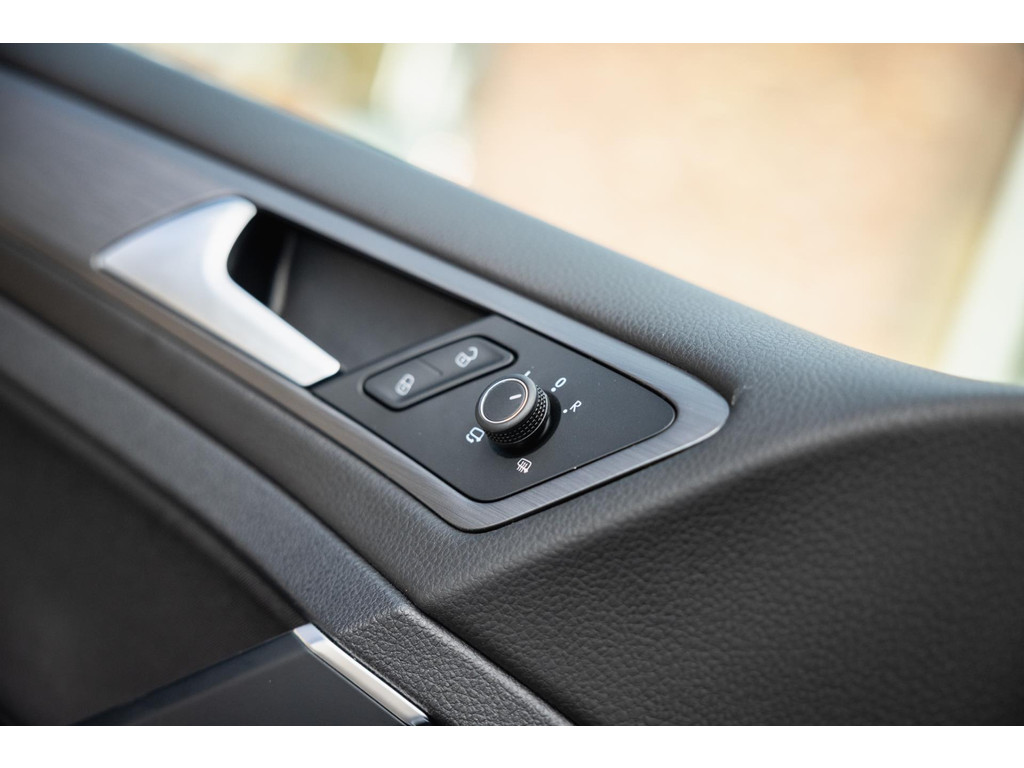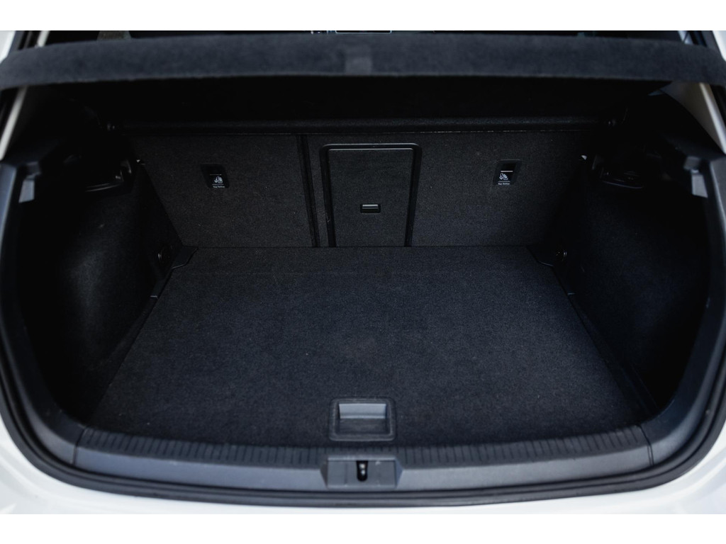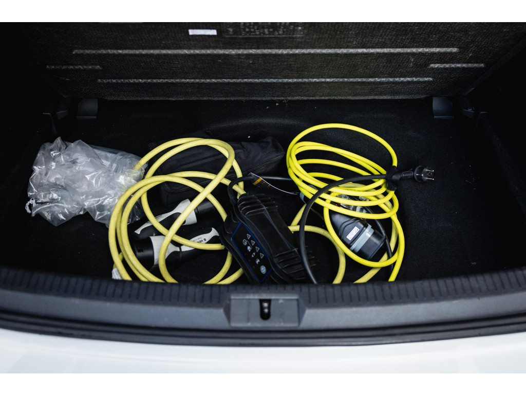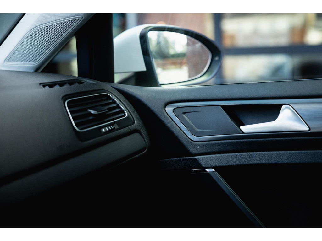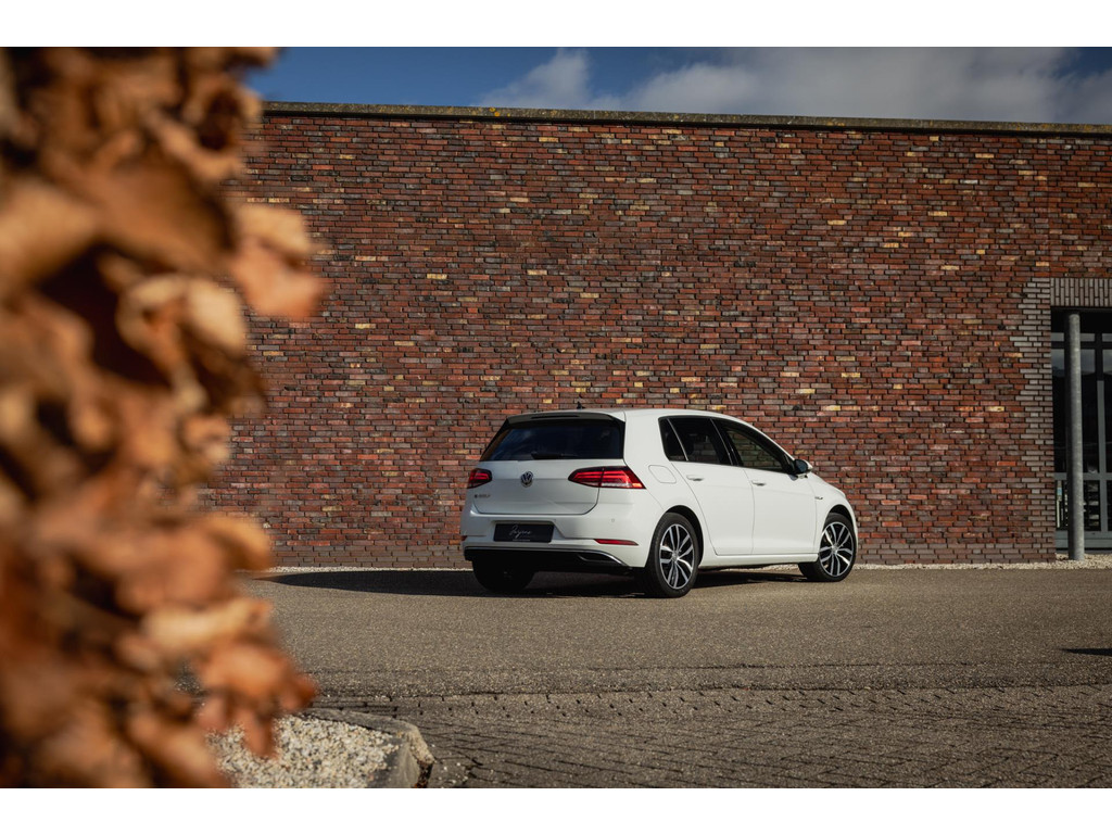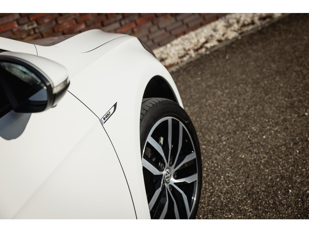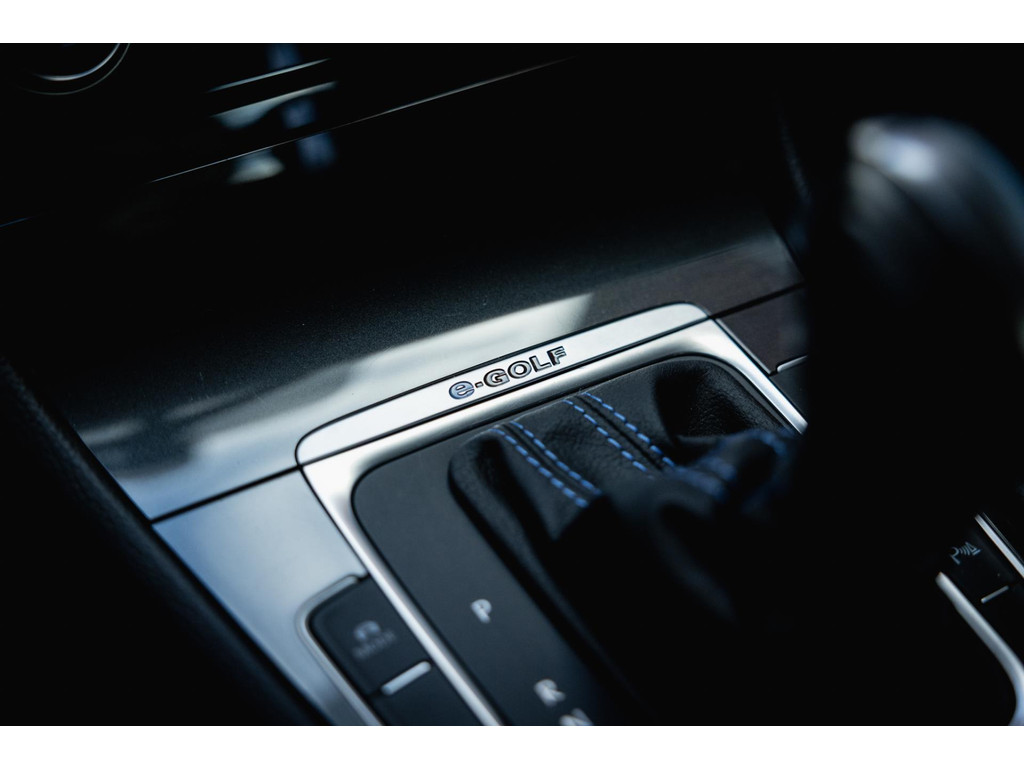 Dat is het mooie aan de Volkswagen e-Golf. Hij oogt als een reguliere Golf, maar onderhuids is het een volledig elektrische auto. Niet de futuristische vormen en design van sommige Aziatische merken, maar gewoon hoe je een auto ziet. Overigens is deze e-Golf verre van standaard, want de LED koplampen en de blauwe elementen, de lichtmetalen velgen en het privacy glas maken dit met recht een Golf met uitstraling. De prachtige witte kleur – Pure White – contrasteert perfect de met de hoogglans zwarte delen.