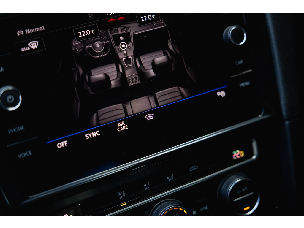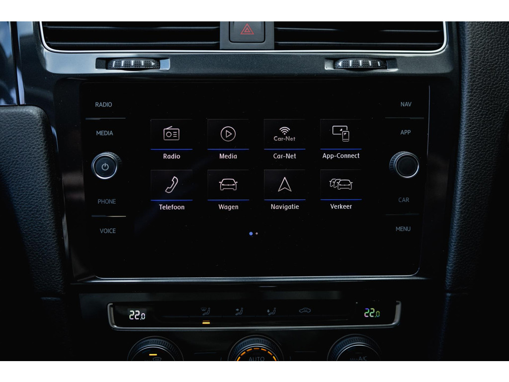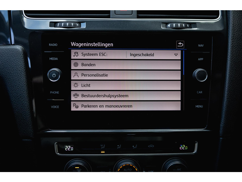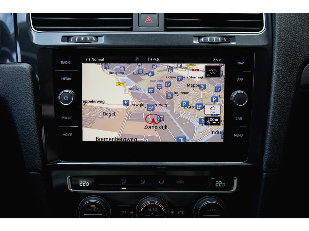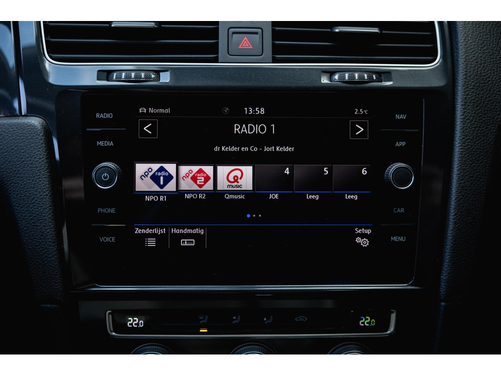 Het comfort is groot. Nauwelijks rijgeluiden, een heerlijke ruime zit in de fijne stoelen en in mijn handen het prachtige met leder beklede stuurwiel vol met knoppen en fraaie blauwe stiknaden. Deze e-Golf is zoals gezegd luxe uitgerust met onder meer alle rijassistenten. Van adaptive cruise control, tot fileassistent en van lane assist tot verkeersbord herkenning. Alles is present. Het grote centrale dipslay is ongekend uitgebreid en behelst onder meer navigatiesysteem, DAB+ digitale radio is present evenals grafische weergave van de parkeersensoren van het parkpilot systeem. In parkeren is een koud kunstje op deze wijze. De verlichting is indrukwekkend. Alles LED uiteraard. De grote LED balken op de onderste hoeken verklappen dat het om een elektrische Golf gaat. Zelfs de dimlichten en grootlicht zijn LED en het grootlicht is volledig automatisch geregeld via camera’s in de voorruit. Verder beschikt de e-Golf over voorruitverwarming en een warmtepomp. Alle informatie omtrent de auto is ook op afstand vanaf de Volkwagen App te verkrijgen.