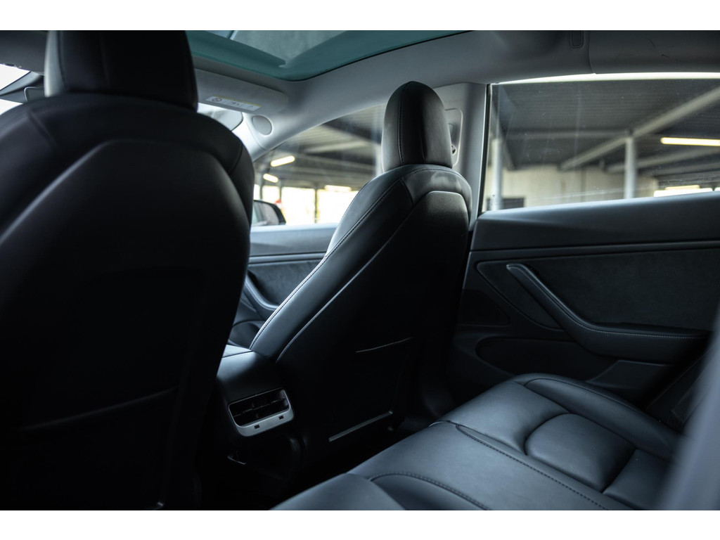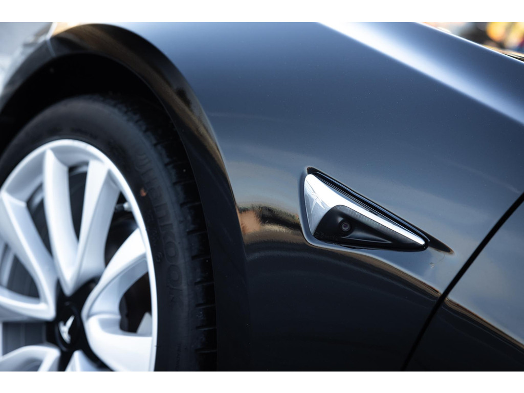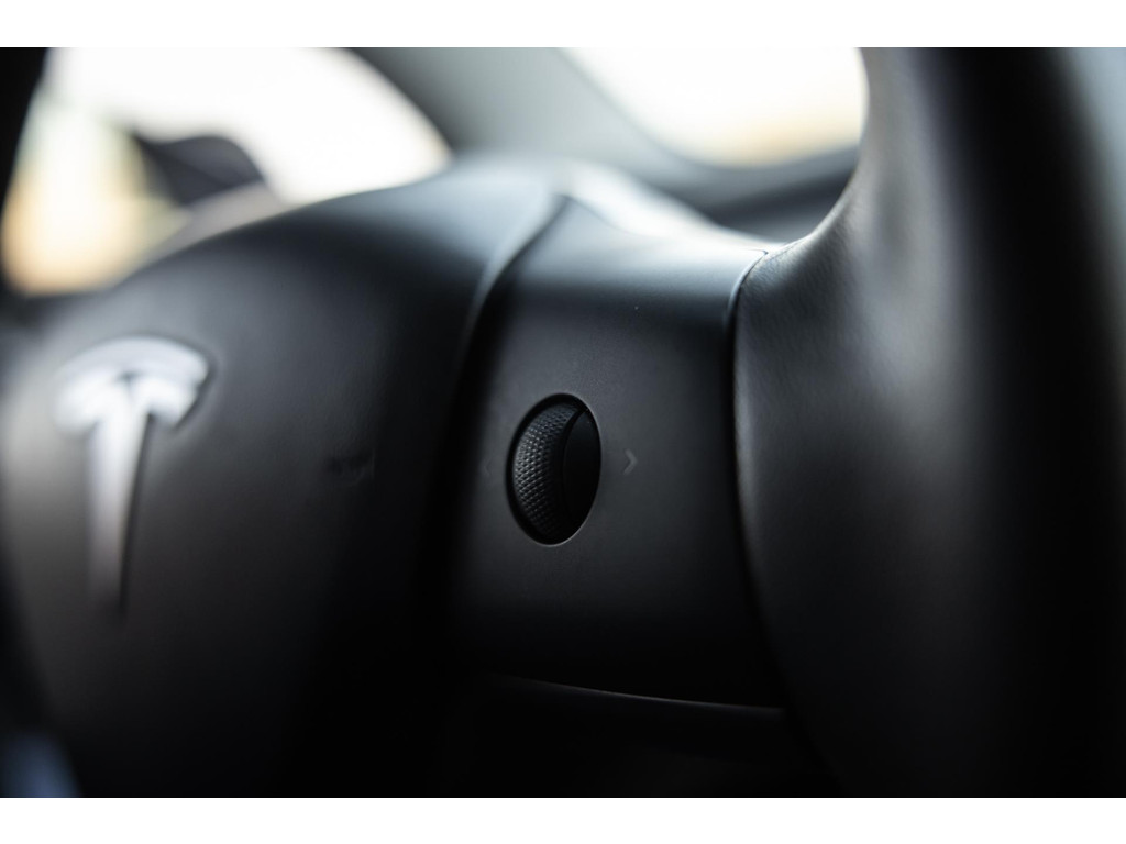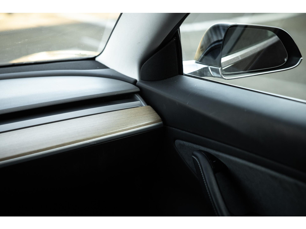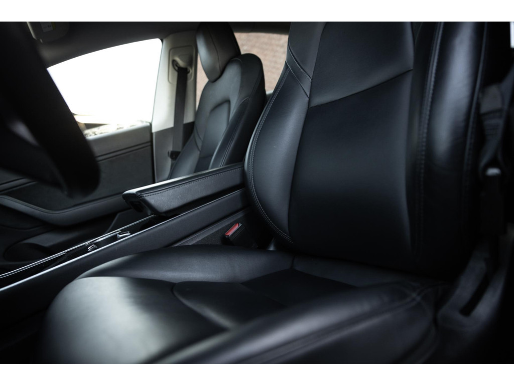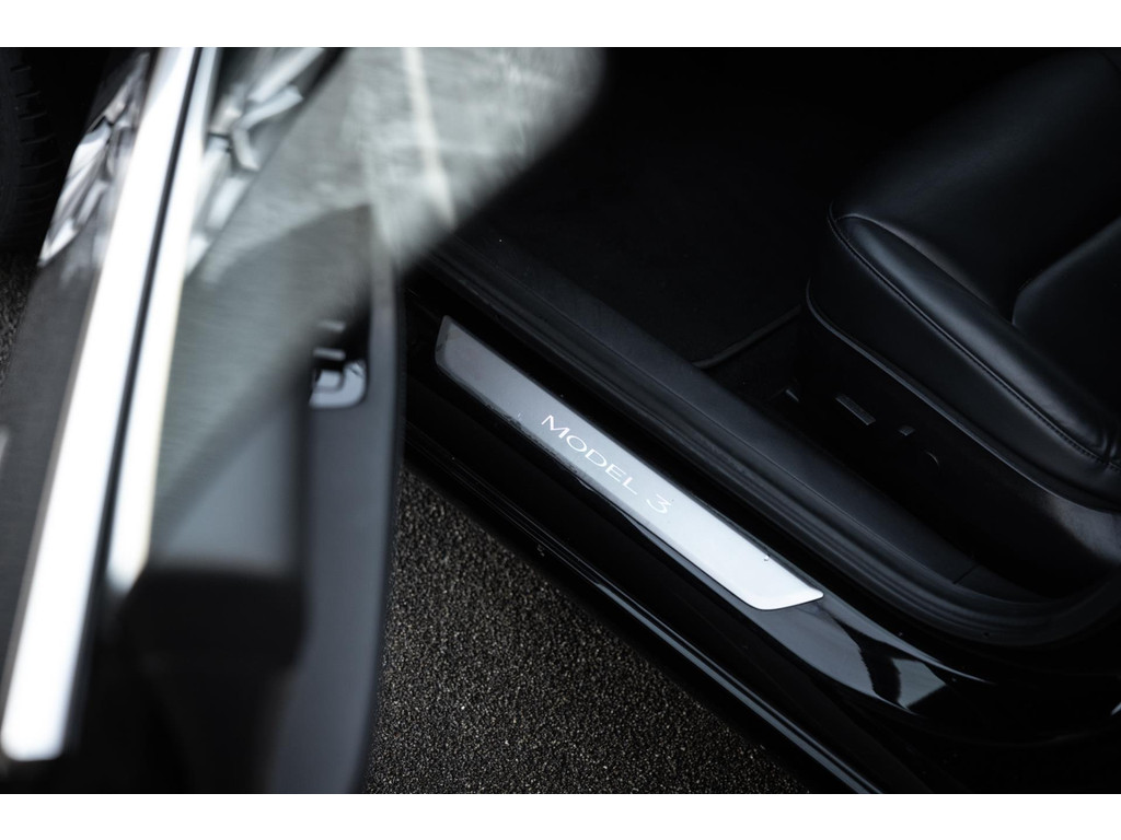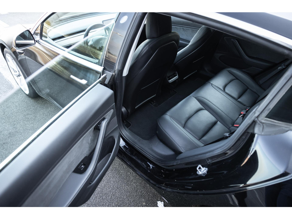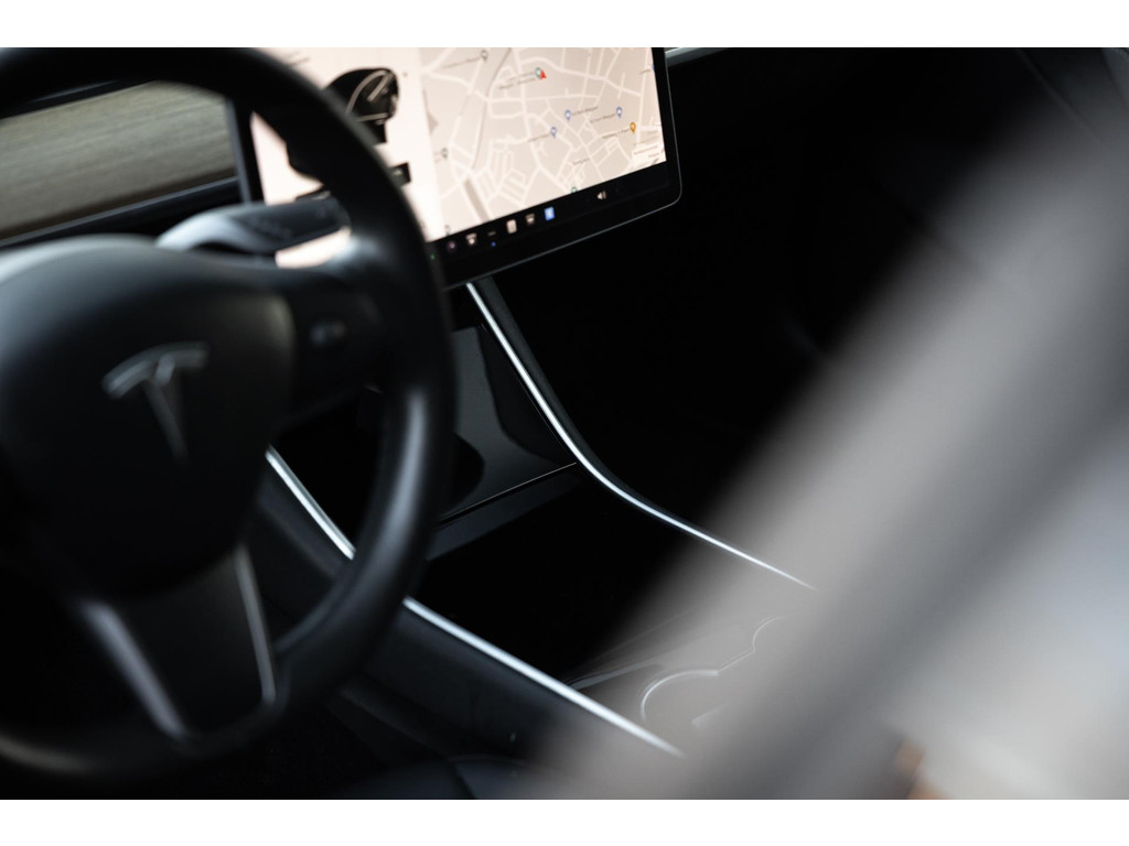 Alle models 3 zijn zo’n beetje gelijkwaardig uitgerust en de standaard ligt hoog. Zo is dit exemplaar voorzien van zwart lederen bekleding. De stoelen zijn elektrisch verstelbaar evenals het stuurwiel. Uiteraard zijn de zetels voorzien van stoelverwarming. Daarnaast een gigantisch glazen panoramadak. Alle verlichting is full LED wat een ongekende lichtopbrengst geeft en voorzien van grootlichtassistent. Het centrale scherm is enorm en biedt een keur aan instellingen, mogelijkheden en luxe. Van data, tot navigatie, van audio tot telefonie en van games tot de meest vreemde mogelijkheden, alles bedien je op het scherm. Uiteraard kent deze Model 3 ook het camerasysteem en is het Premium audiosysteem gekozen. Hel fraai zijn de originele Performance velgen. Niet vaak gezien, maar wel besteld op deze Tesla is de afneembare trekhaak.