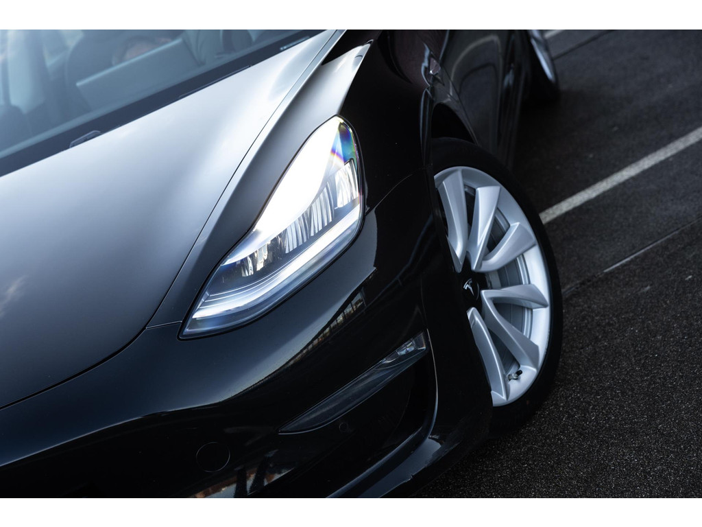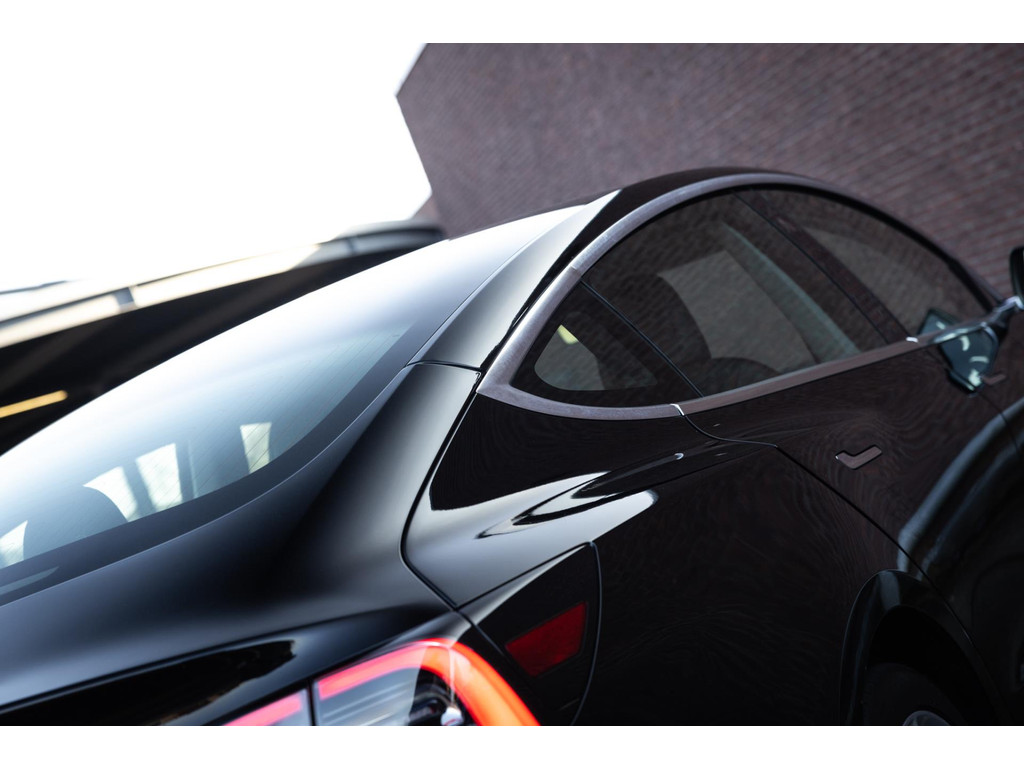 De Model 3 is geleverd in de chique kleur – Solid Black. Gecombineerd met het zwart lederen interieur, het zwarte dak van het panoramadak en de LED verlichting een zeer fraaie verschijning.