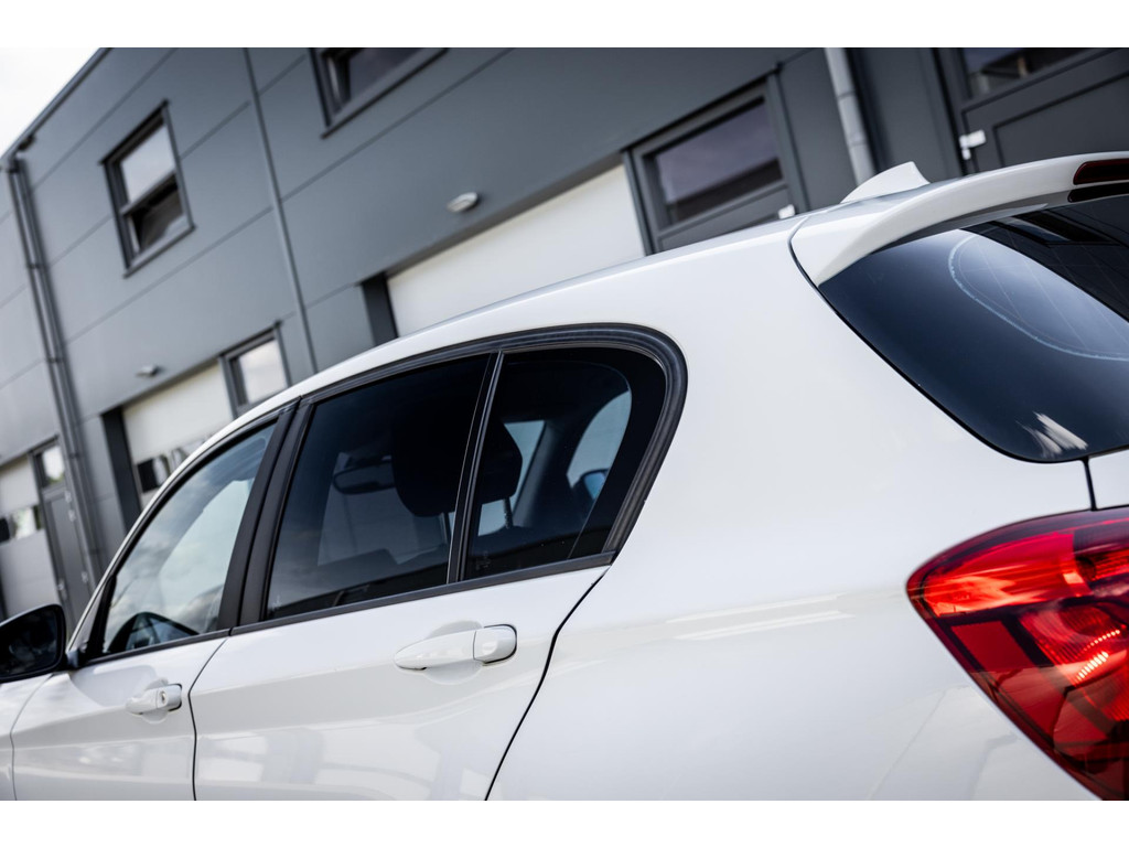 Deze BMW 1-serie oogt strak, sportief en verzorgd in het tijdloze Alpinweiß III – een kleur die het lijnenspel van dit model perfect accentueert. De zwarte lichtmetalen velgen geven de auto net dat extra sportieve randje. Met zijn compacte formaat en moderne design is dit een ideale auto voor wie stijlvol en praktisch wil rijden.