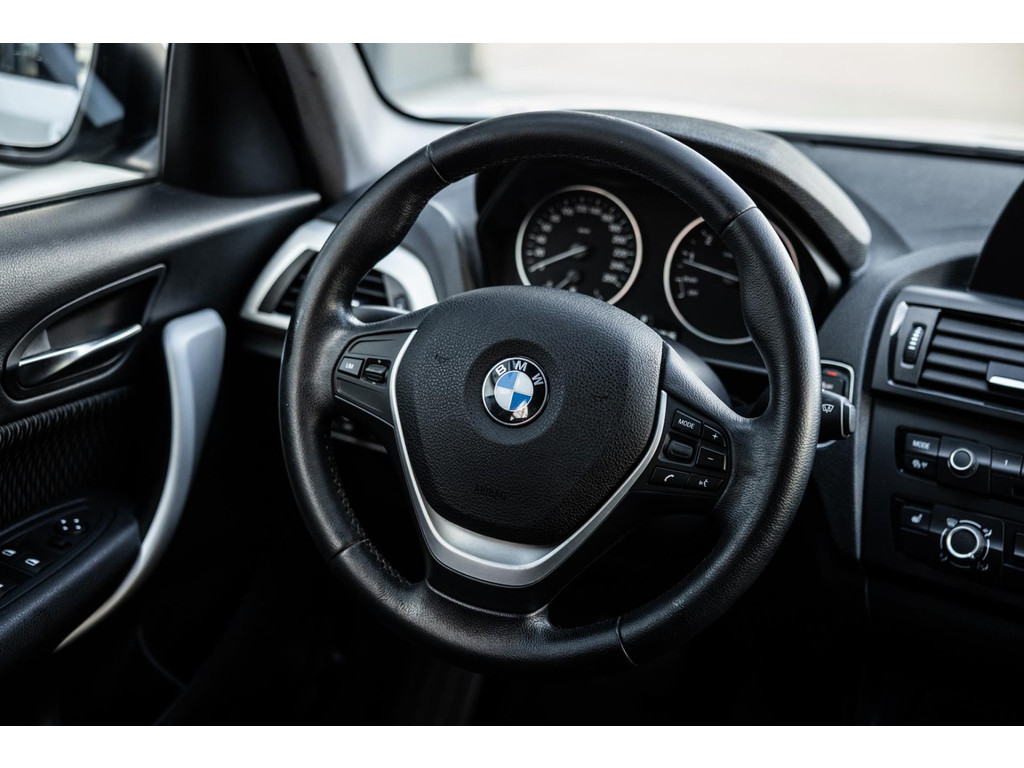 Qua uitrusting is deze 1-serie bijzonder compleet. Zo beschik je over een navigatiesysteem Business, Bluetooth handsfree + USB-audio, stoelverwarming, licht- en regensensoren, automatische airco, en Park Distance Control (PDC). Verder vind je aan boord een leren sportstuur met multifunctionele bediening, een dimautomatische binnenspiegel, en verwarmbare buitenspiegels en sproeiers – ideaal voor de winter.