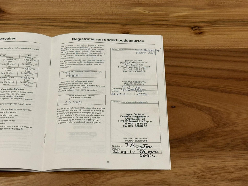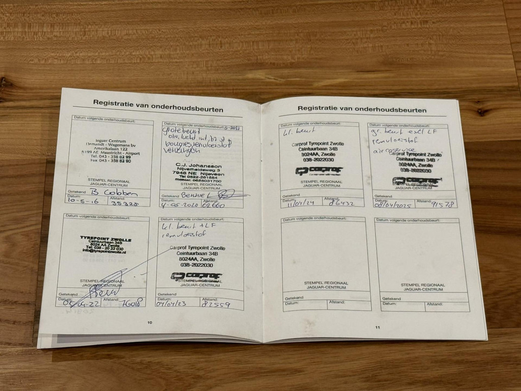 De volgende servicemomenten zijn bekend: