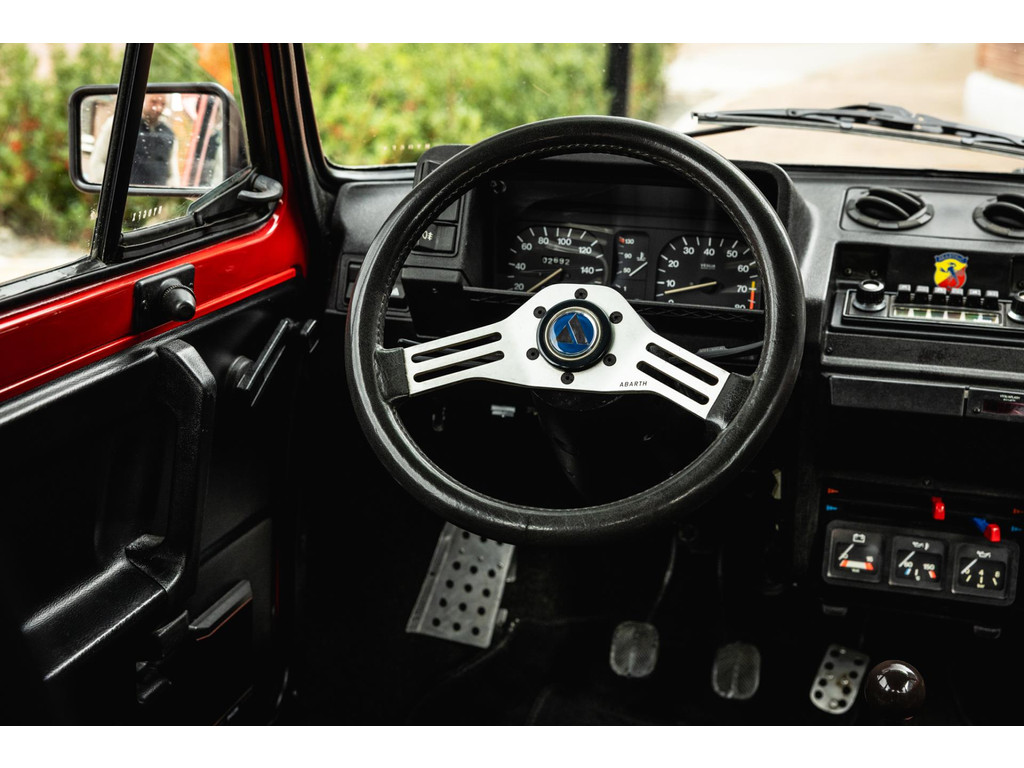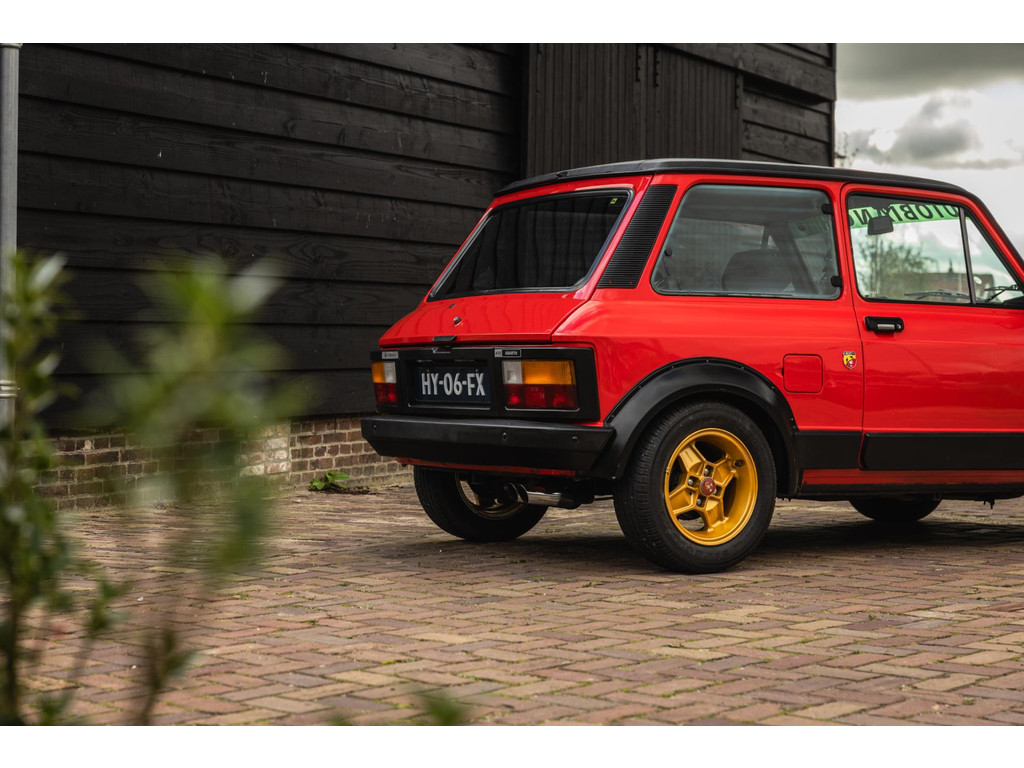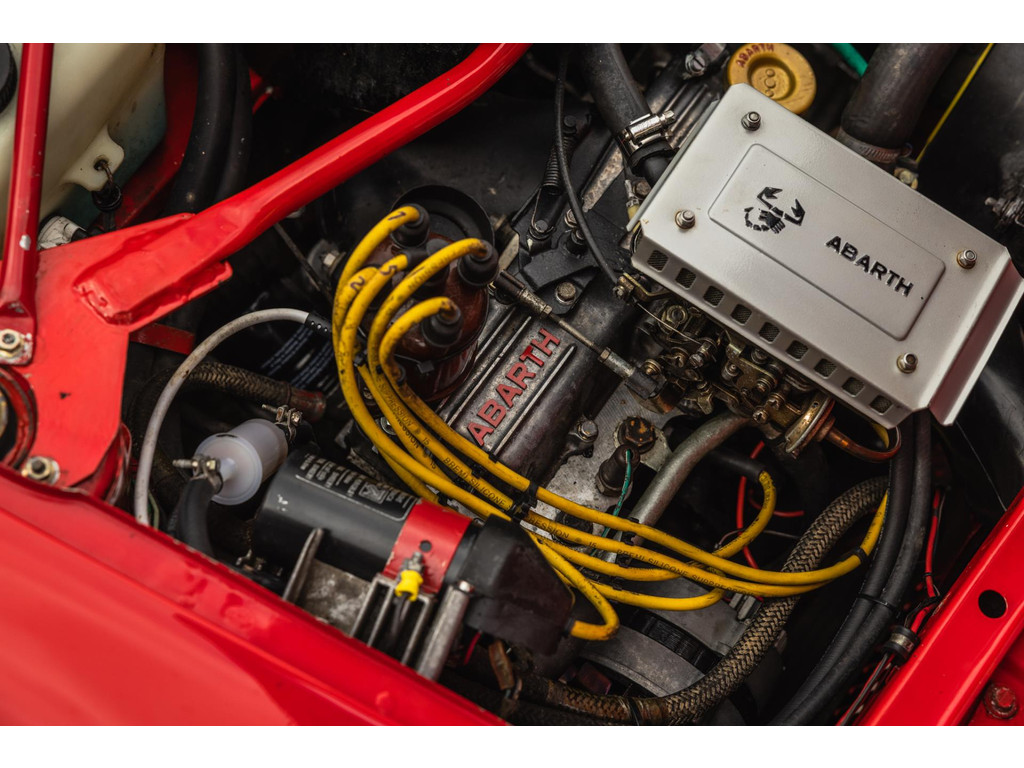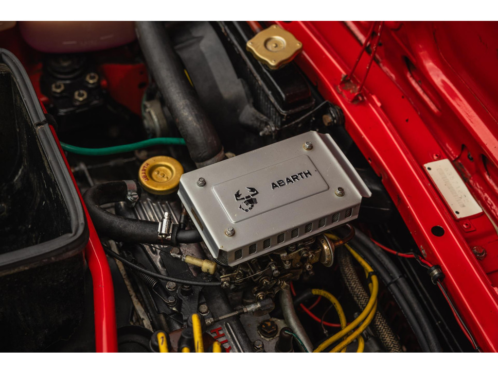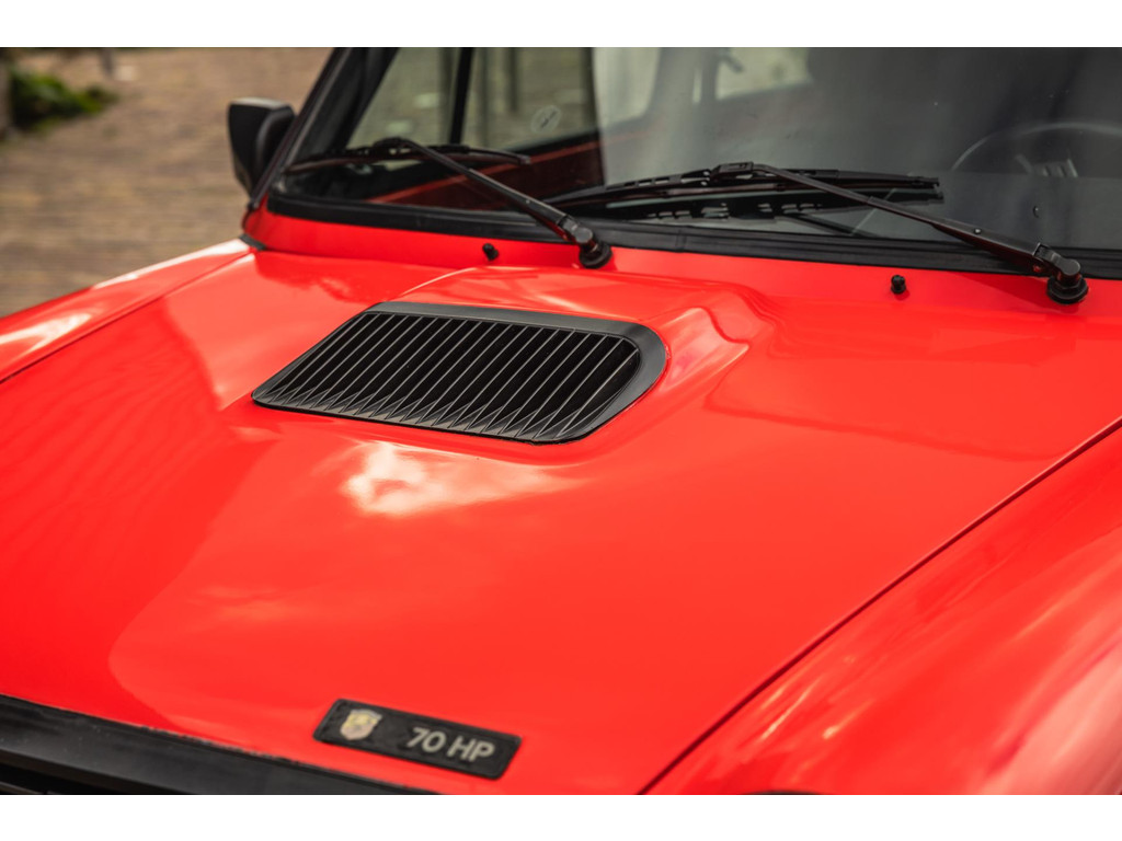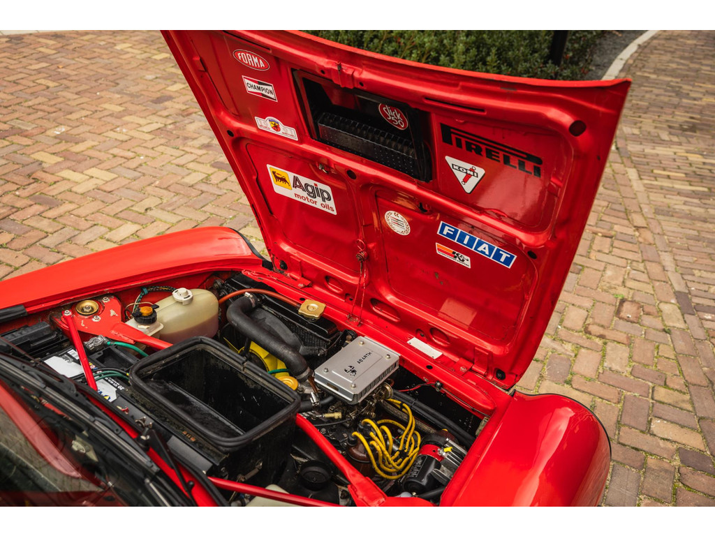 Specifiek dit exemplaar werd origineel Nederlands geleverd in 1982. Die zie je nog zelden en de exemplaren zullen op één hand te tellen zijn. In het vooronder de 1.049cc metende Abarth motor. De prestaties waren indrukwekkend, zeker wanneer je het in het tijdperk bijna 50 jaar geleden plaatst. Tezamen met de prestaties een indrukwekkend stuurkarakter. Snaarstrak en direct.