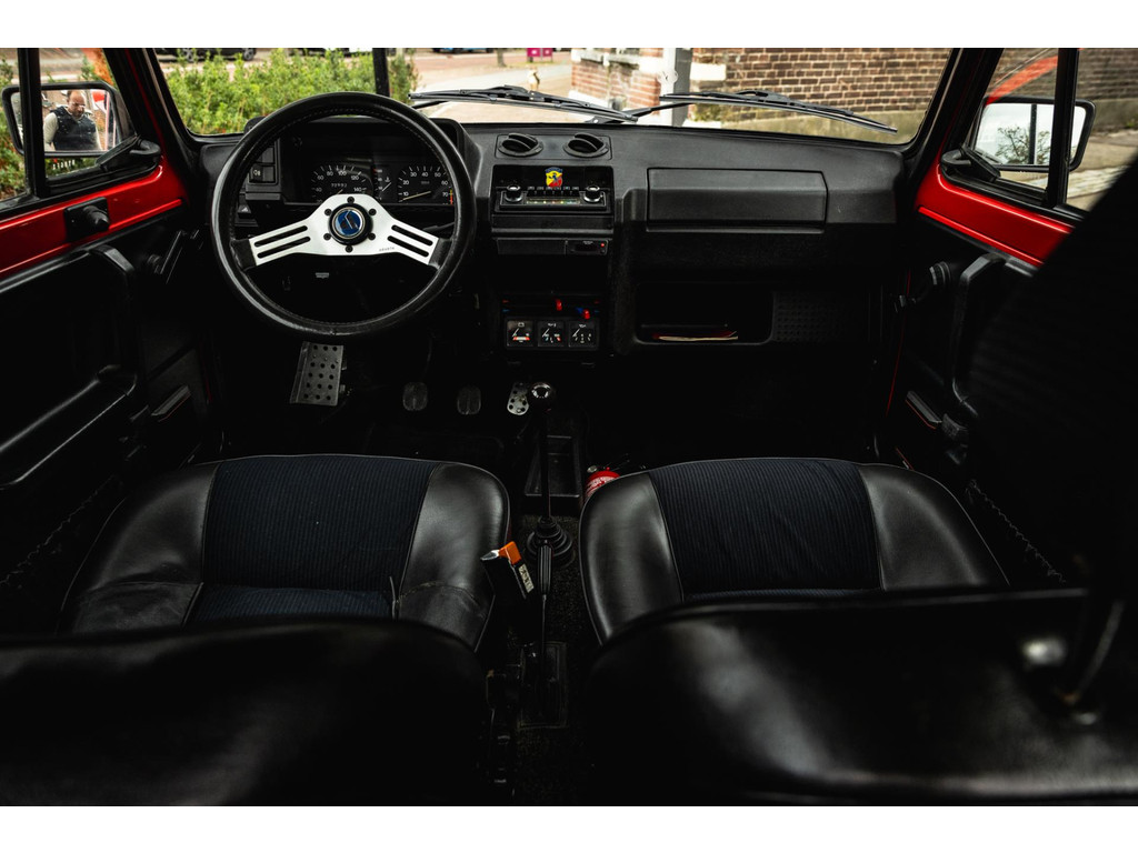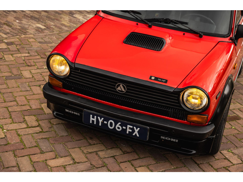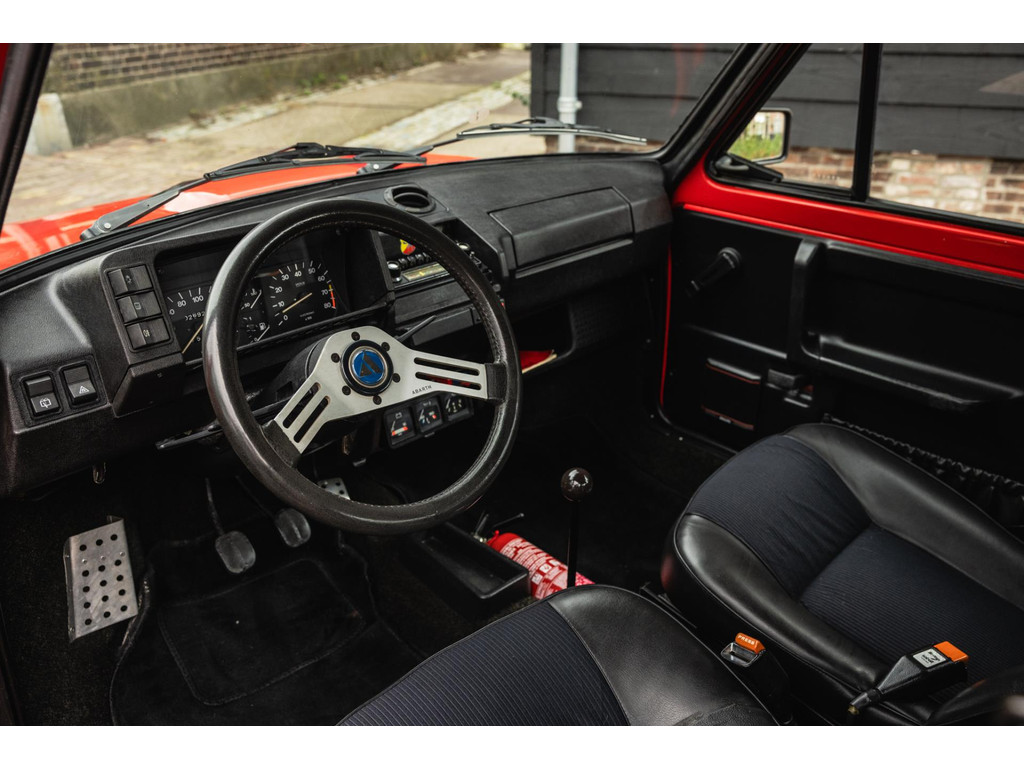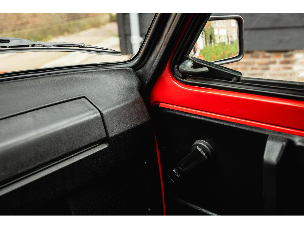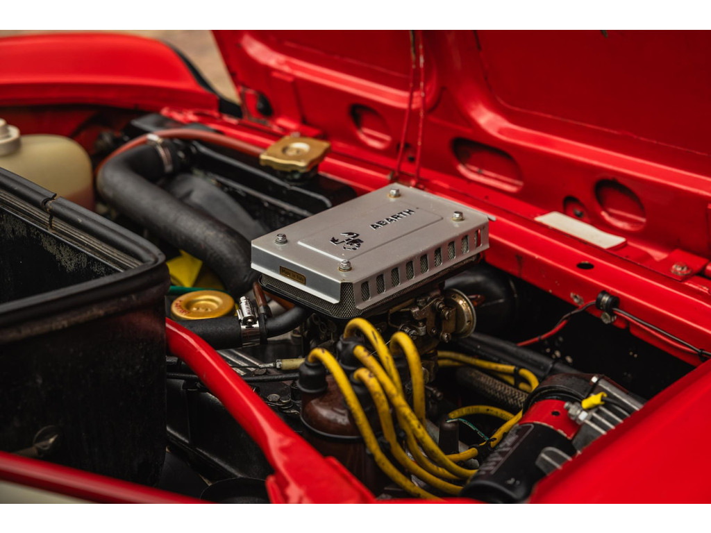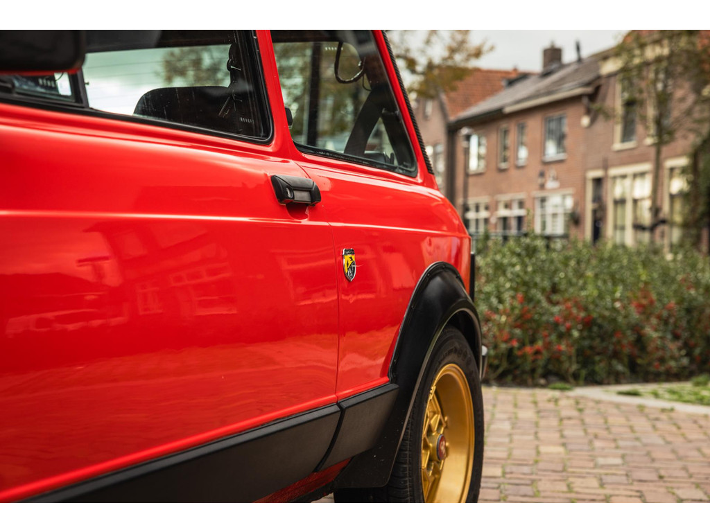 Specifiek dit exemplaar werd origineel Nederlands geleverd in 1982. Die zie je nog zelden en de exemplaren zullen op één hand te tellen zijn. In het vooronder de 1.049cc metende Abarth motor. De prestaties waren indrukwekkend, zeker wanneer je het in het tijdperk bijna 50 jaar geleden plaatst. Tezamen met de prestaties een indrukwekkend stuurkarakter. Snaarstrak en direct.
