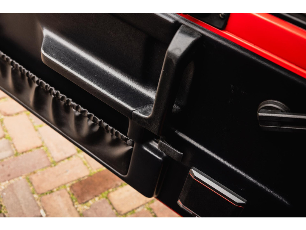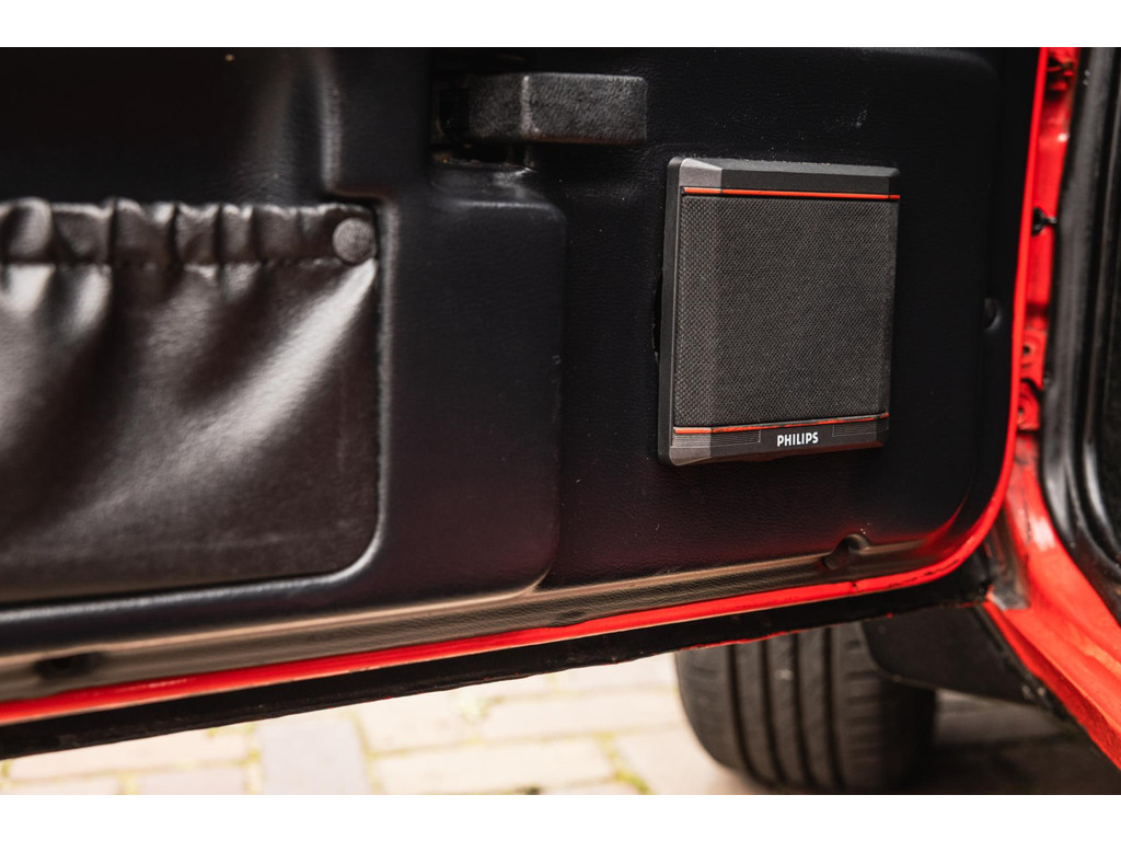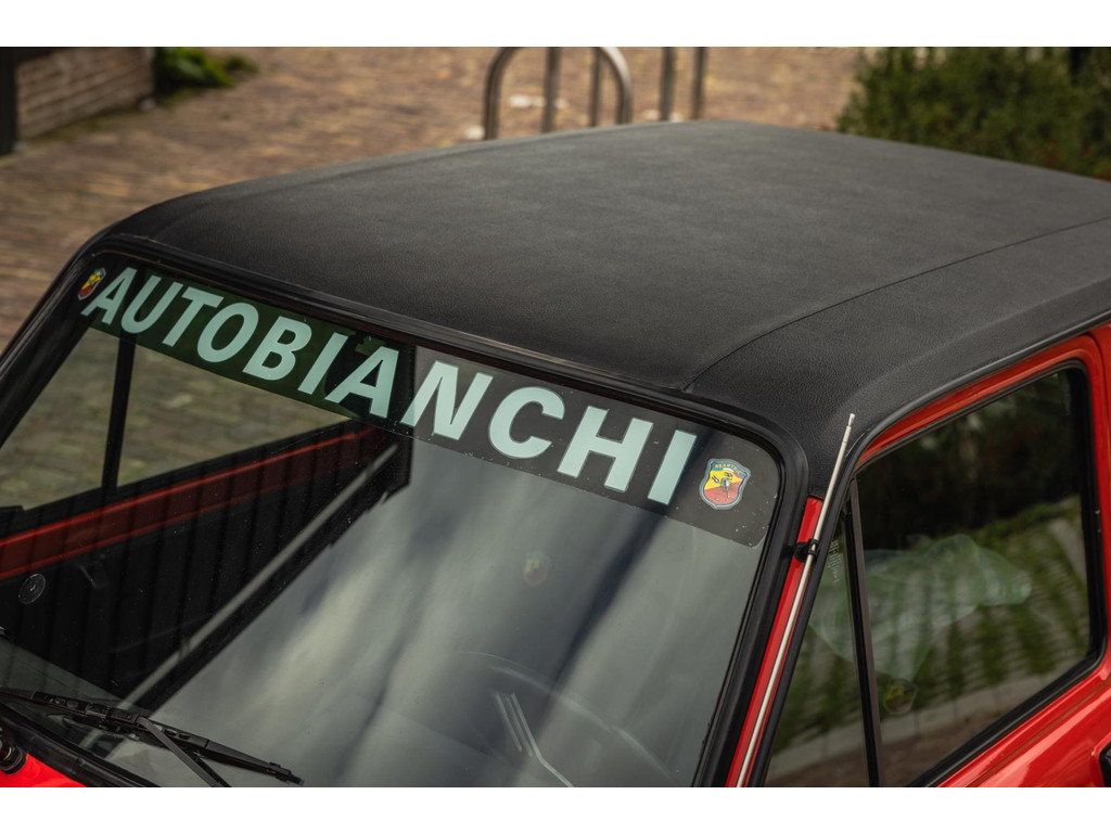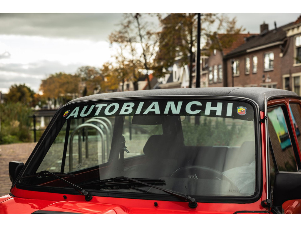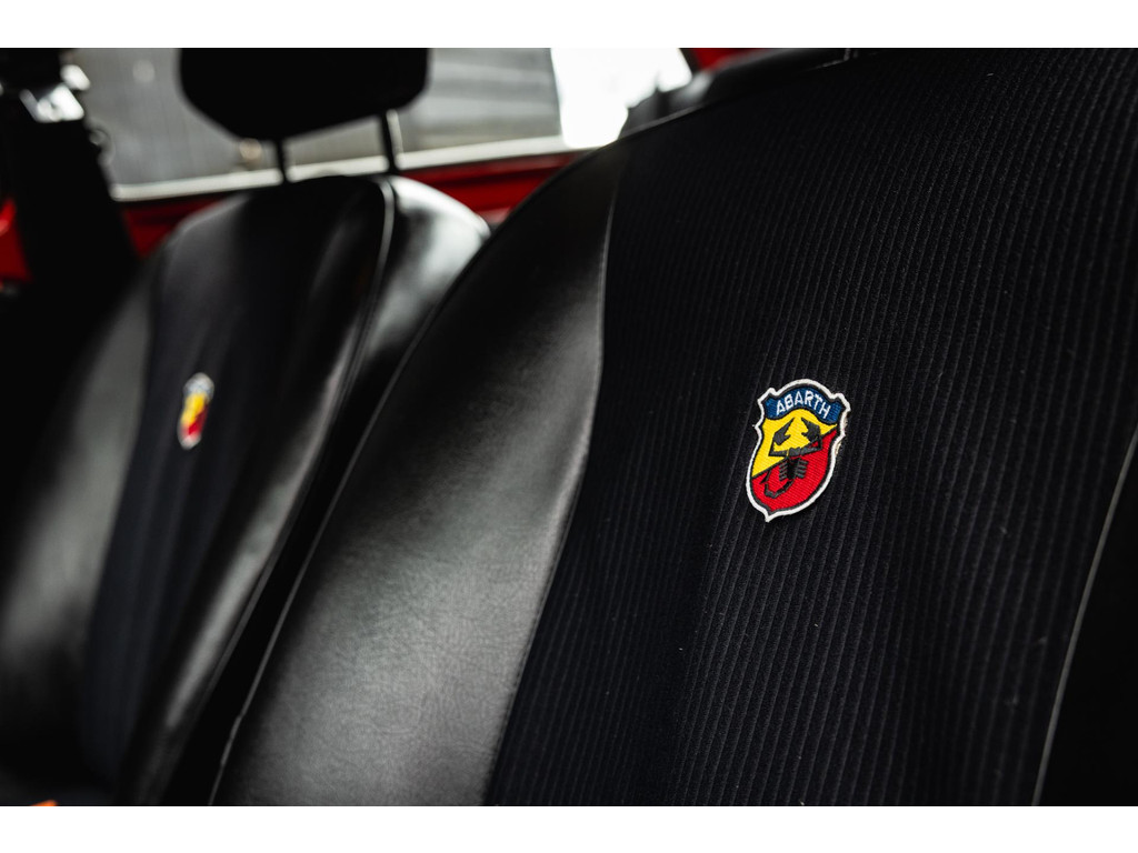 De Autobianchi die we hier aanbieden is een kleine 10 jaar geleden volledig aangepakt. Het onderstel is behandeld tegen roestvorming en de koets is gespoten. De staat is erg goed en de uitvoering smaakvol. De rode lak contrasteert prachtig met de iconisch goudkleurige velgen en de zwarte kunststof spatbordverbreders. Het interieur is zwart met bekleding in zwart leder en textiel in diep donkerblauw en uiteraard de prachtige logo’s in de rugleuning van de stolen. Verder het originele Abartg twee-spaaks sportstuurwiel en de befaamde klokjes voor oliedruk, olietemperatuut en accuspanning. Uiteraard voorziet de Abarth ook in een toerenteller. Mooi details is de originele Philips radio uit die tijd.