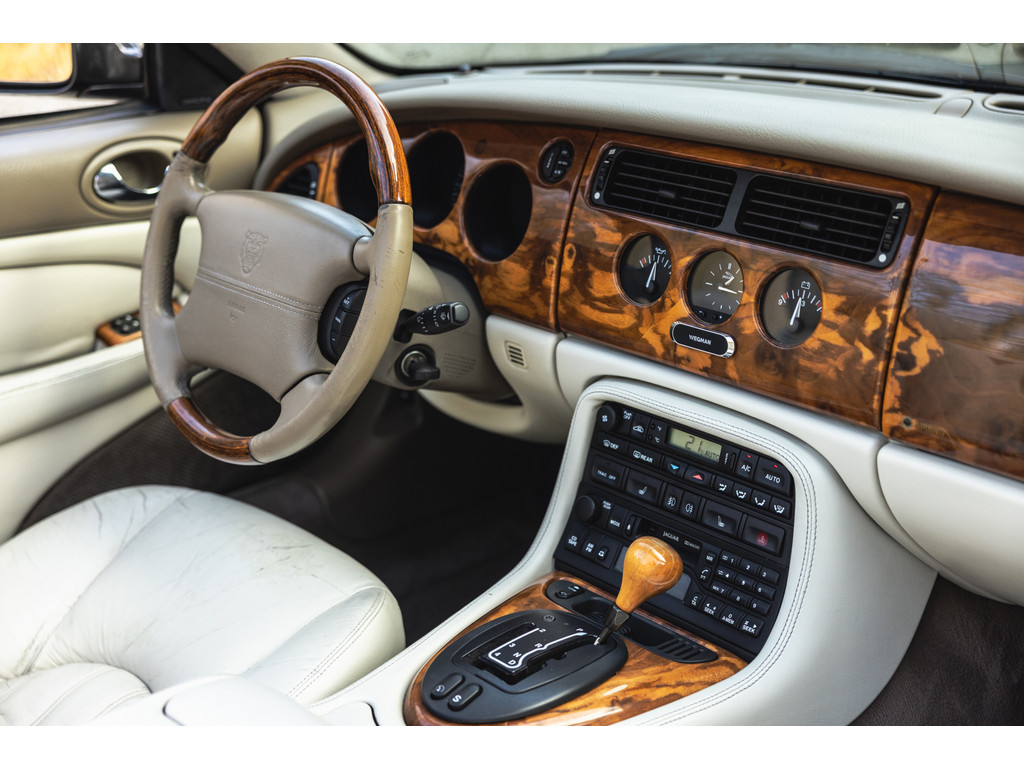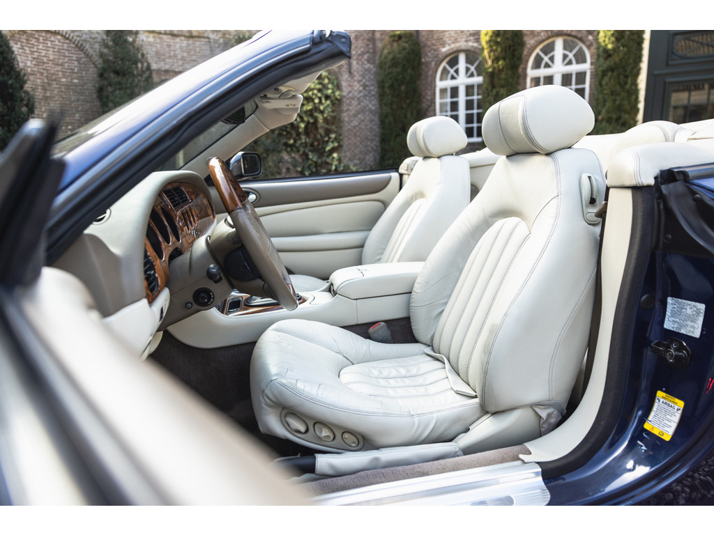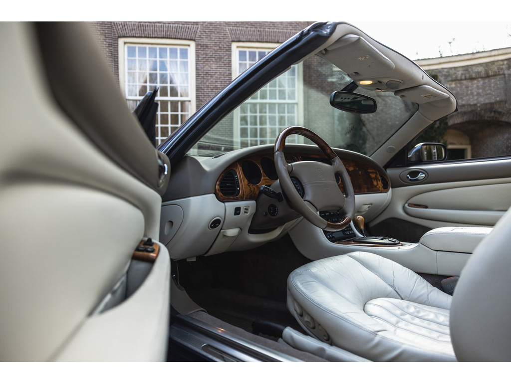 | Recent veel kostbaar onderhoud | Lederen bekleding Ivory | Elektrische stoelverstelling + memory | Stoelverwarming | Automatische Airconditioning | Cruise Control | Elektrisch bediende softtop | Origineel Jaguar audiosysteem | Alpine High-End audio | Stuurwielbediening | Originele lichtmetalen velgen | Automatische transmissie | Tonneau Ivory | Valet functie | Recent automaat revisie | Youngtimer | 2000 | 86.033 mls | EUR 14.900 |