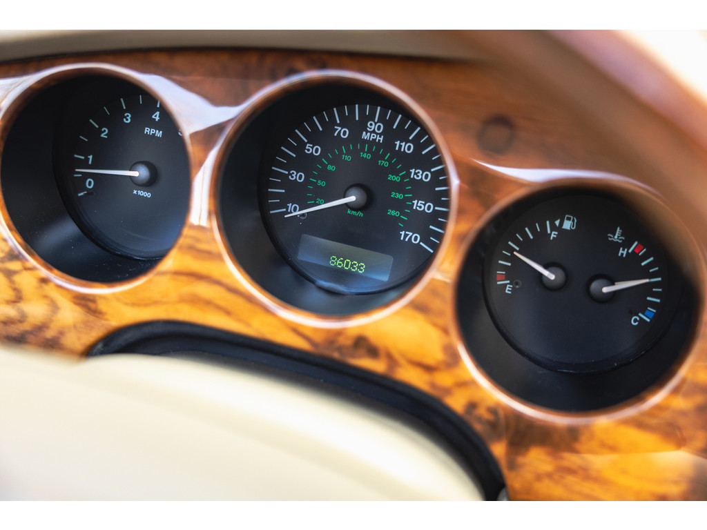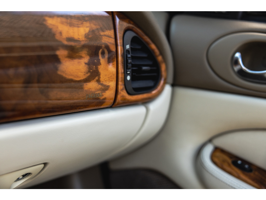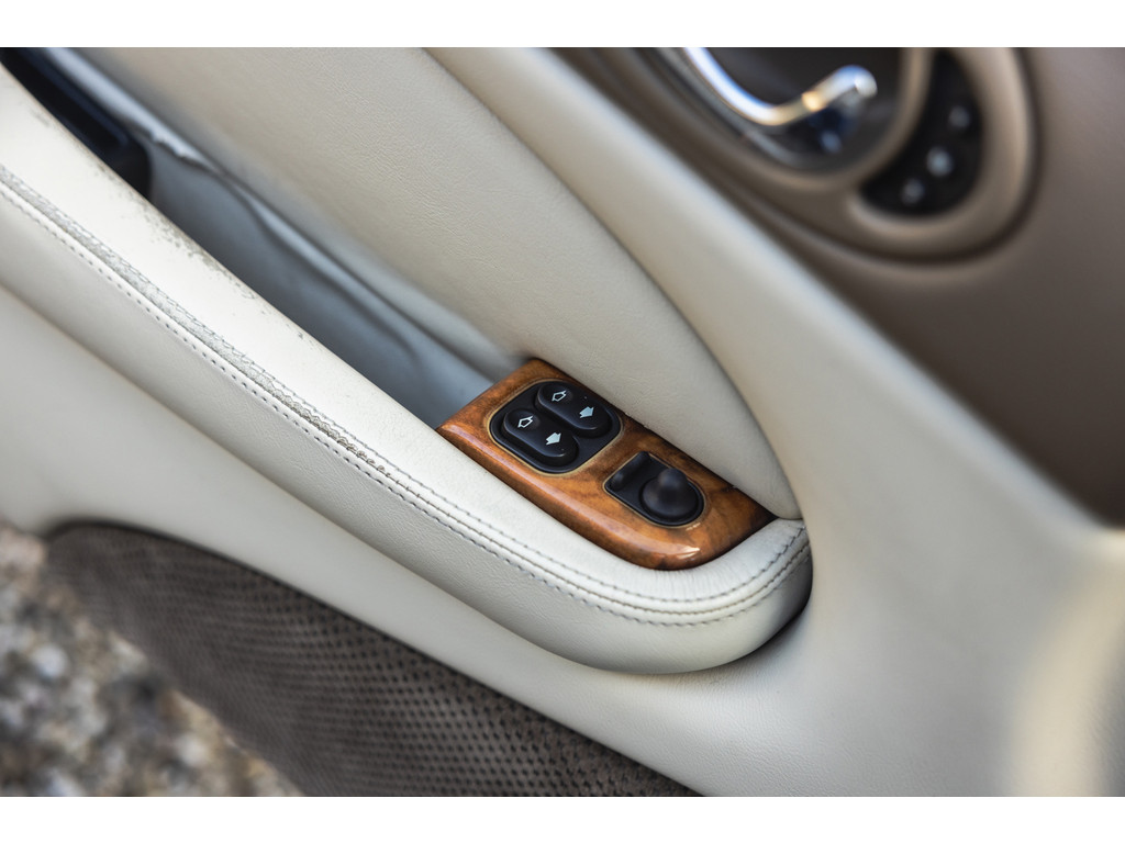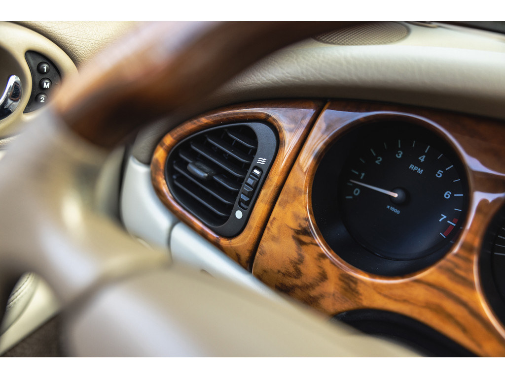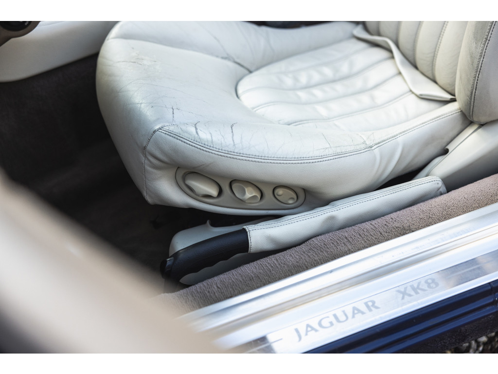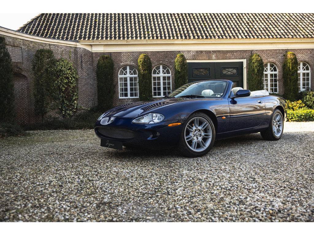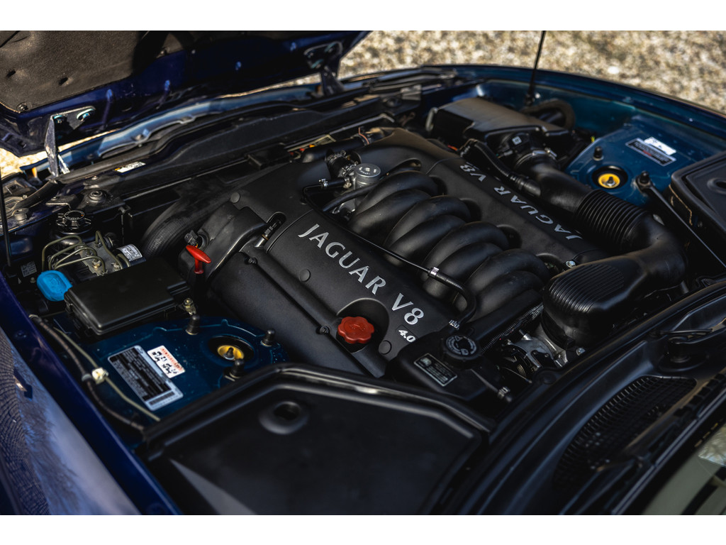 Dit is de Jaguar XK8 Convertible met de prachtige 4.0 V8 in het vooronder. Een exemplaar waar recentelijk heel veel onderhoud aan is uitgevoerd. Vrijwel het gehele onderstel qua draagarmen, stuurkogels, fuseekogels en wiellagers zijn vervangen. Tevens nieuwe motorsteunen, remblokken, remvloeistof en dergelijke. Ook blijkt de kettingspanner modificatie te zijn uitgevoerd. Afgelopen januari is voor meer dan EUR 5.500 de automaatbak nog gereviseerd bij Jaguar specialist Werkman in Kolham. Al dit recente onderhoud is keurig gedocumenteerd en gebundeld in een map. Zelf hebben we de kleppendekselpakkingen nog vervangen voordat we de auto in verkoop namen. Optisch verkeert de XK Convertible in een goede toestand. Het interieur is netjes, maar het leder op de bestuurderstoel kent wat ouderdom verschijnselen. De houten sierlijsten zijn nog mooi diep donker van kleur. De softtop verkeert in een uistekende toestand en de elektrische werking is perfect.